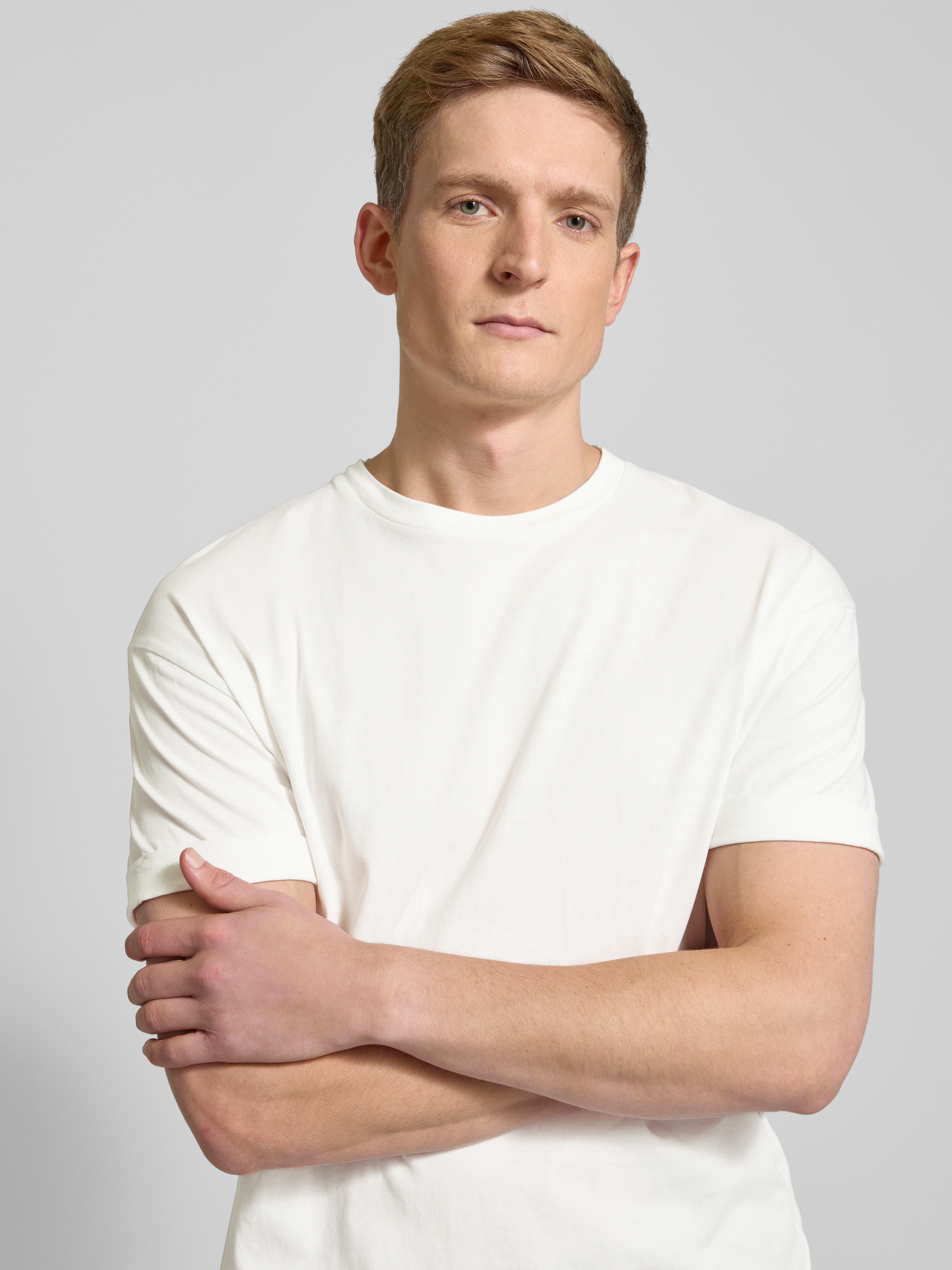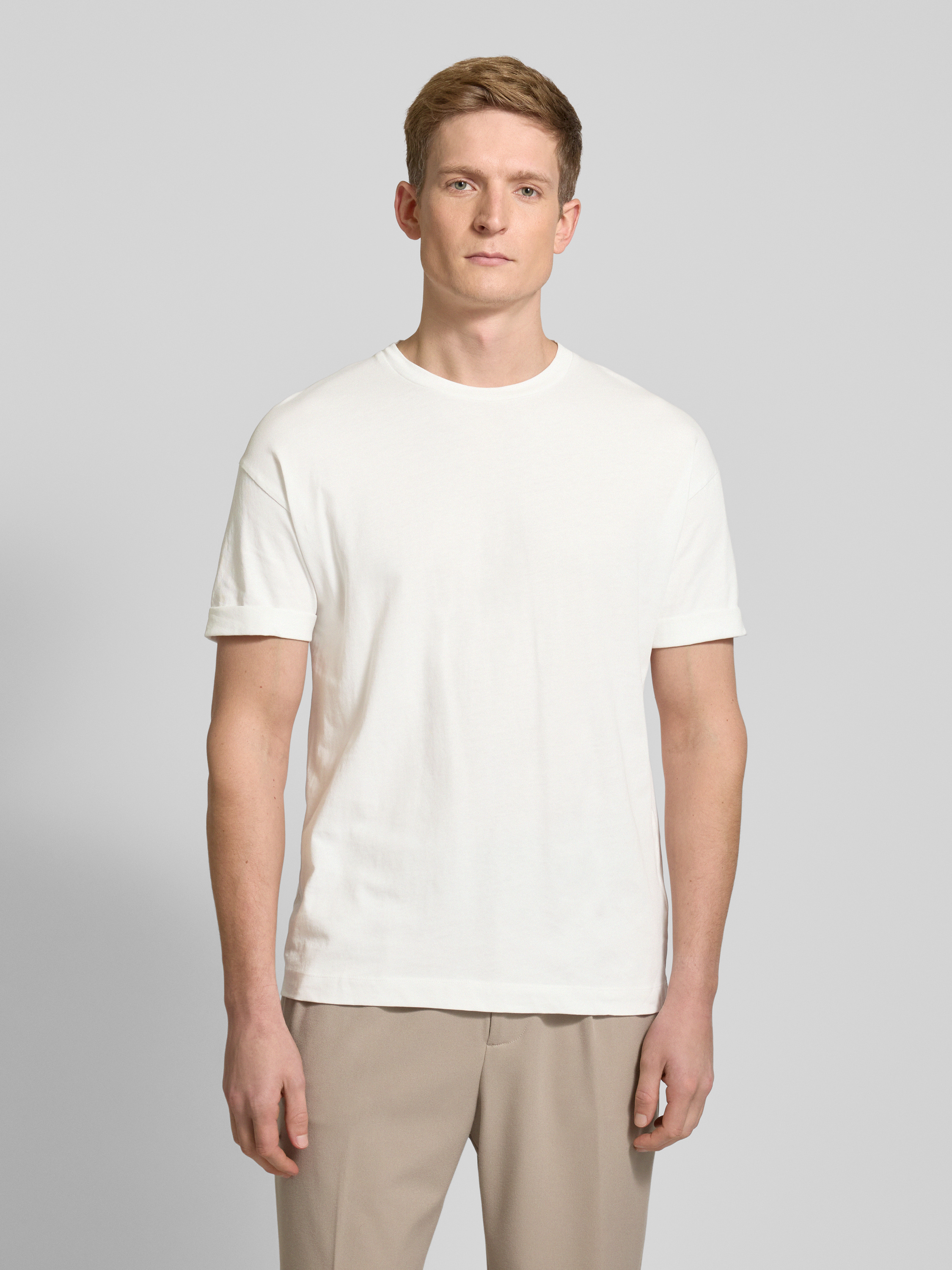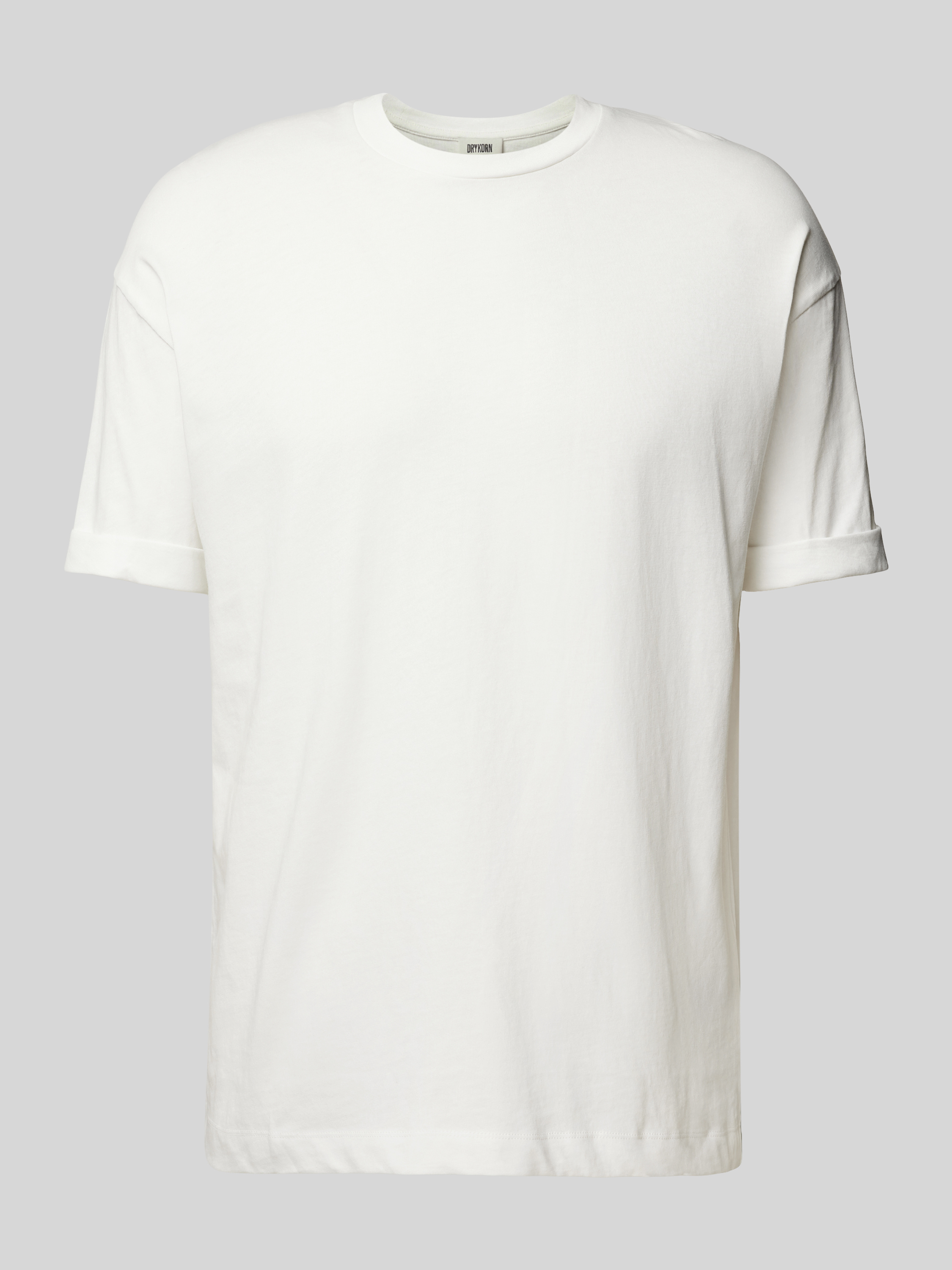 DrykornT-shirt met geribde ronde hals, model 'THILO' in offwhite