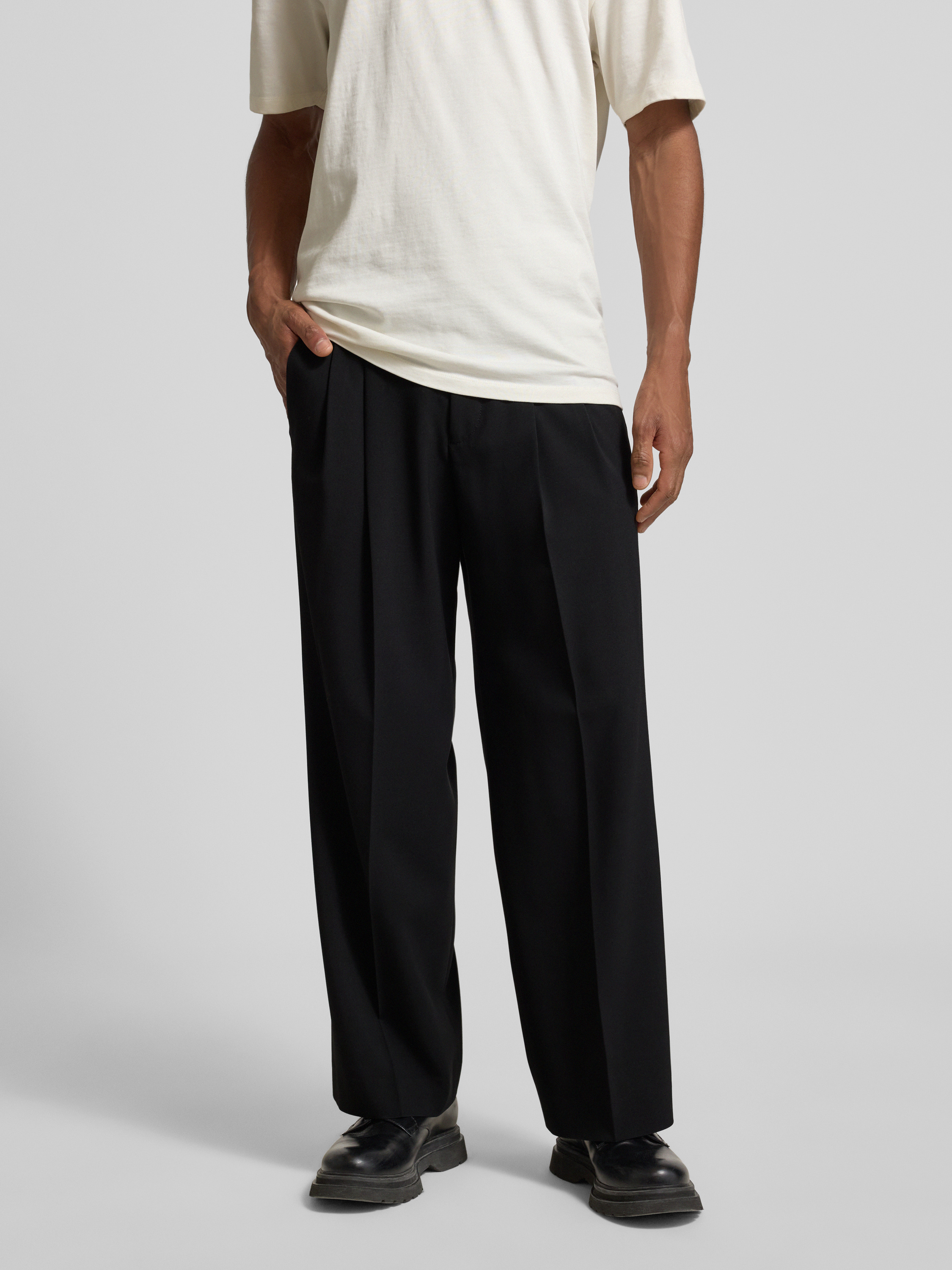 DrykornWide fit broek met persplooien, model 'Leek' in zwart