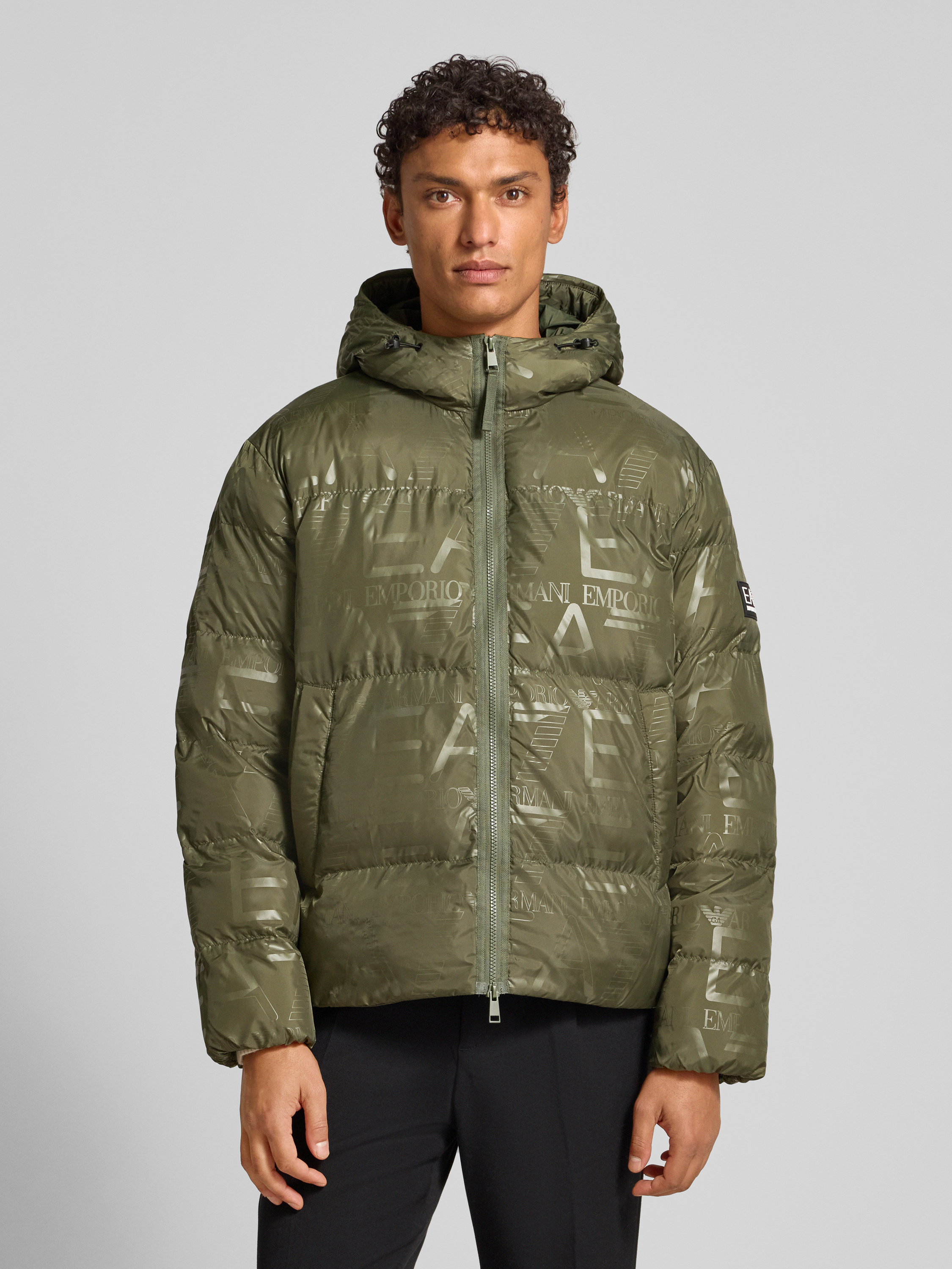 Regular fit gewatteerd jack met all-over logoprint, model 'MOUNTAIN' in leem