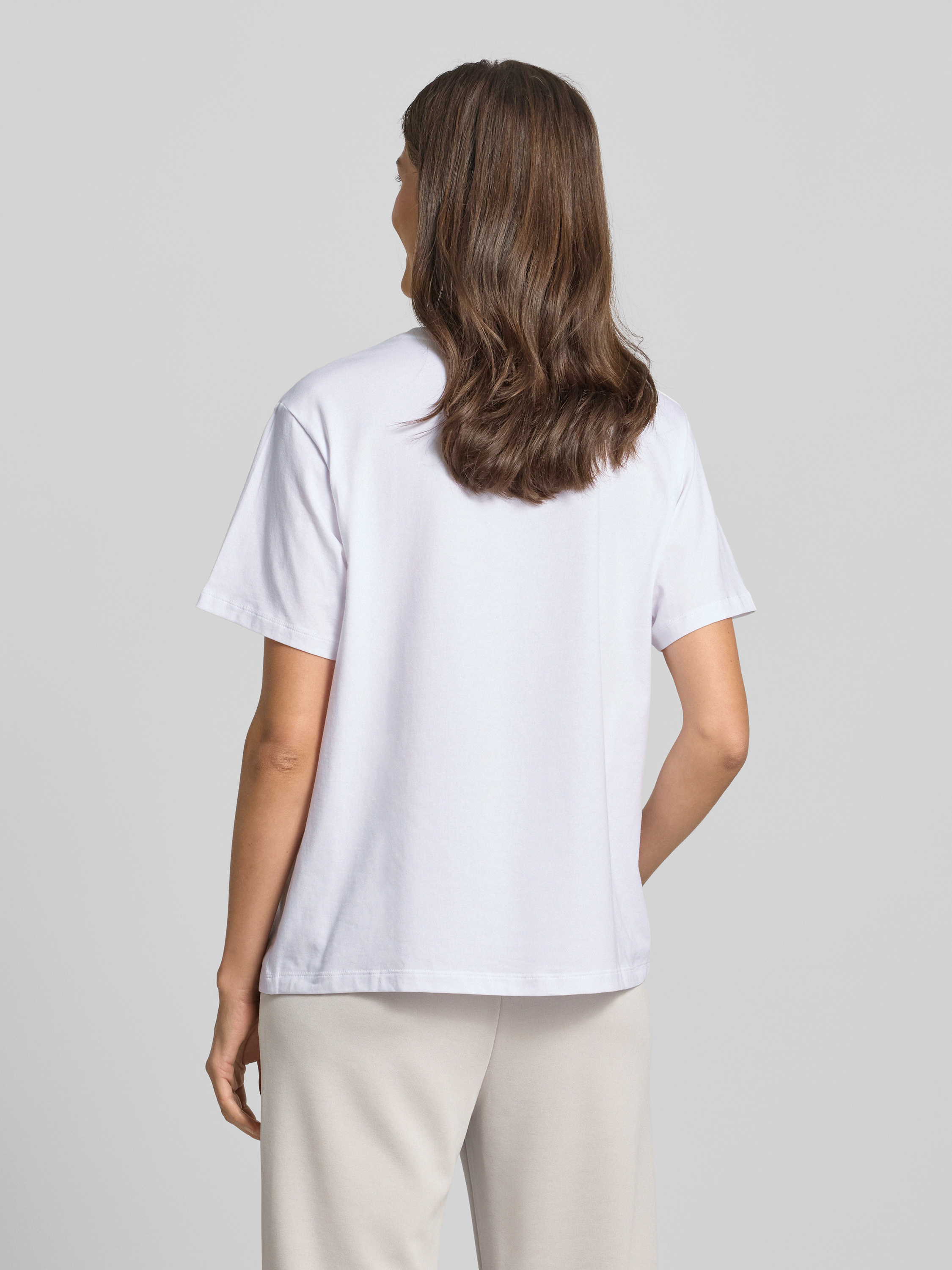 Regular fit T-shirt van katoenmix met logo-applicatie in wit
