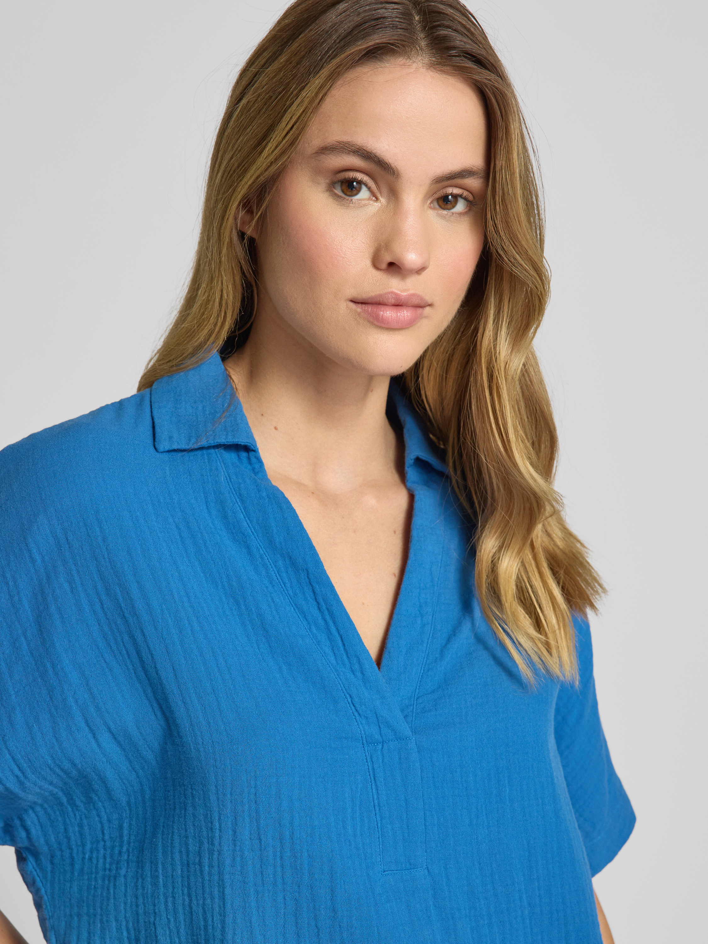 Oversized blouseshirt met V-hals, model 'DENISALF' in koningsblauw