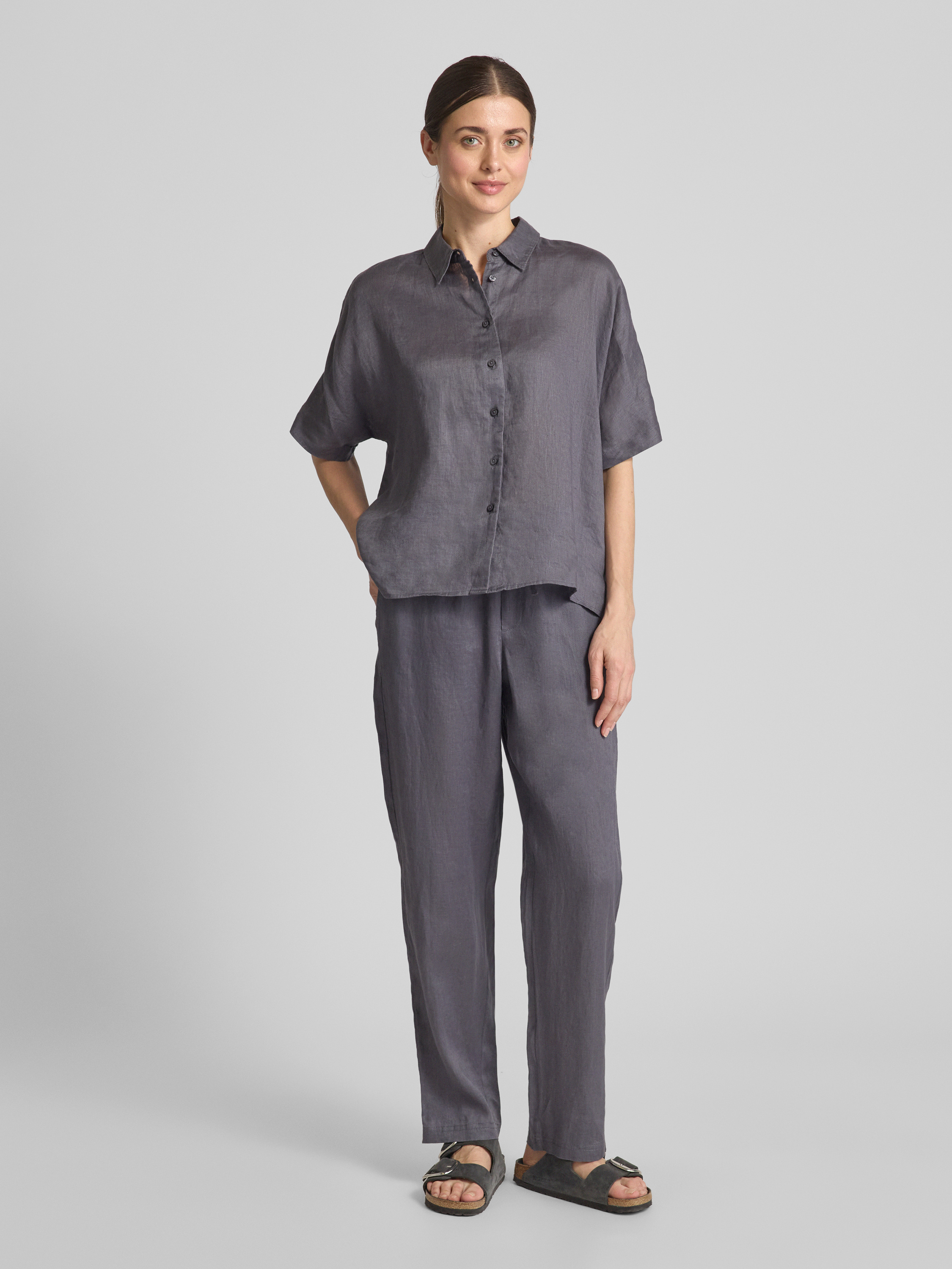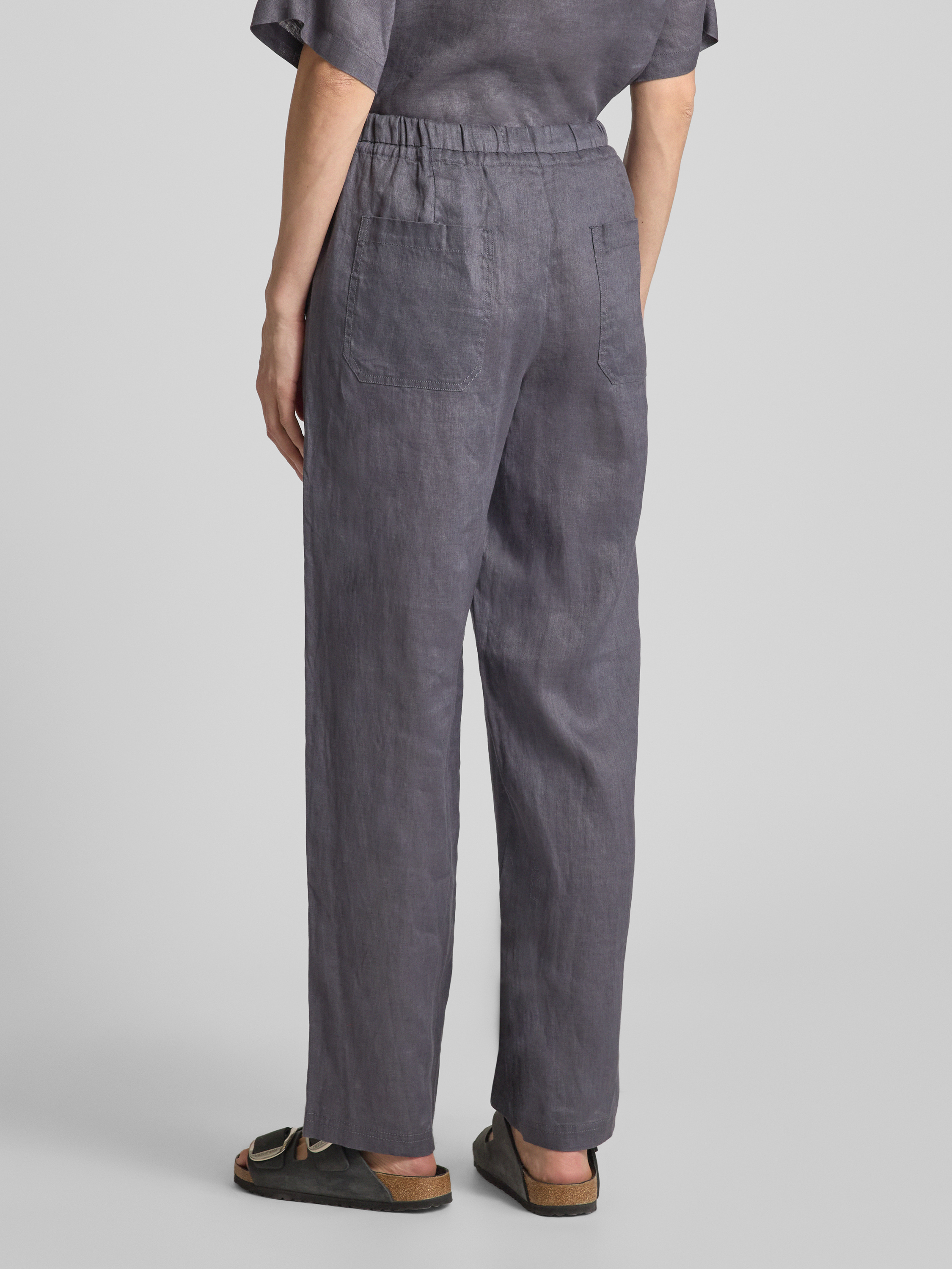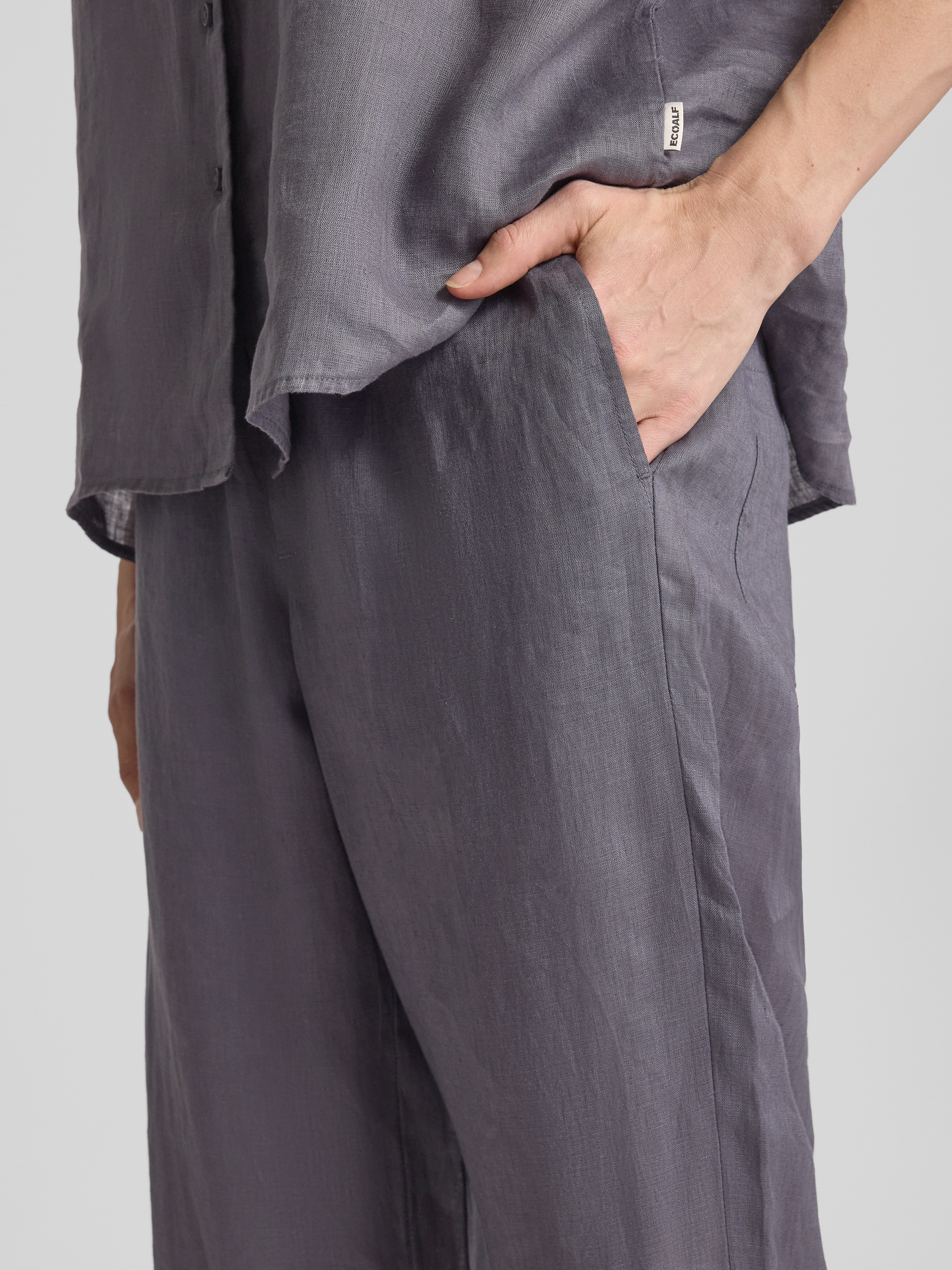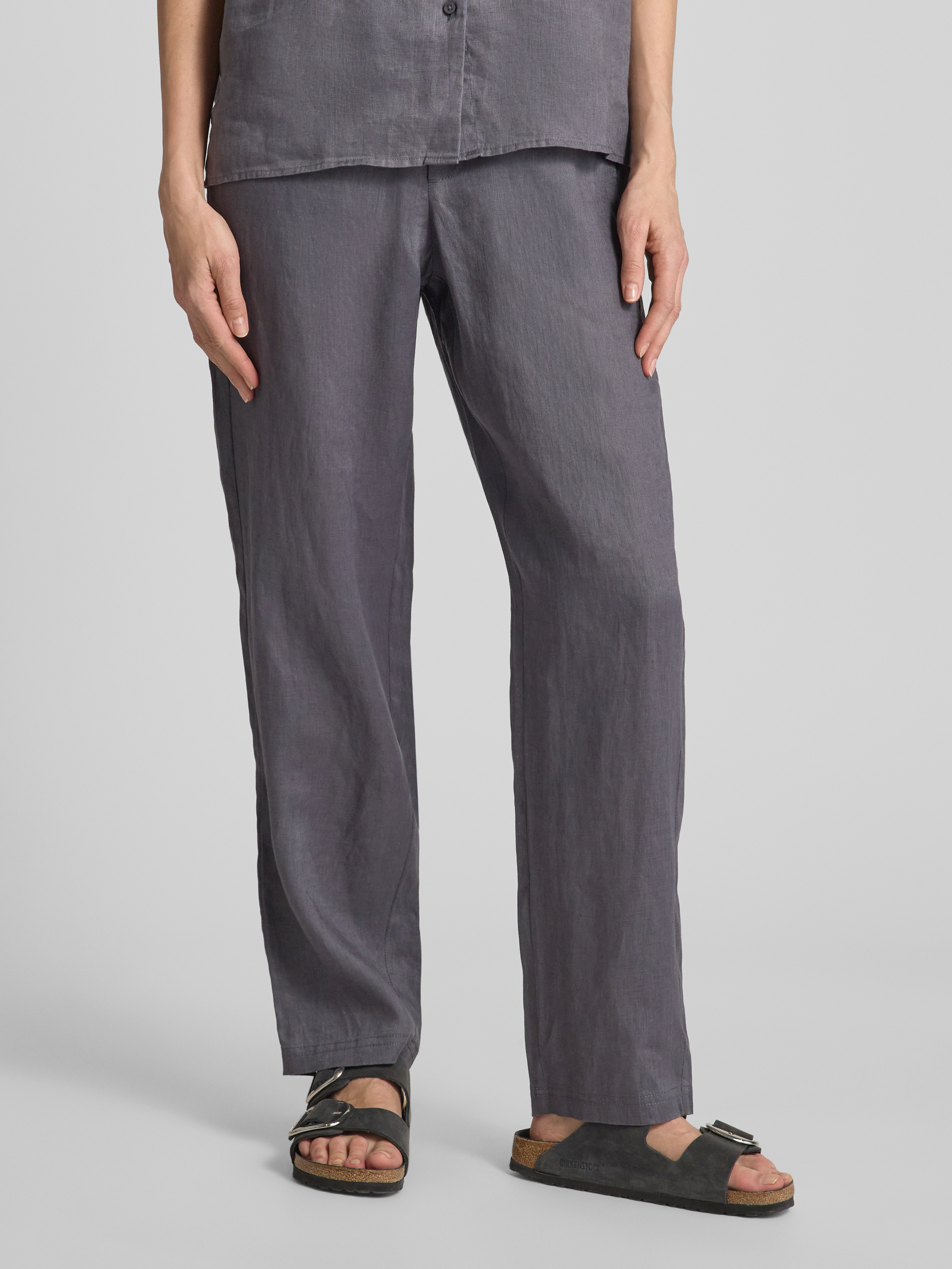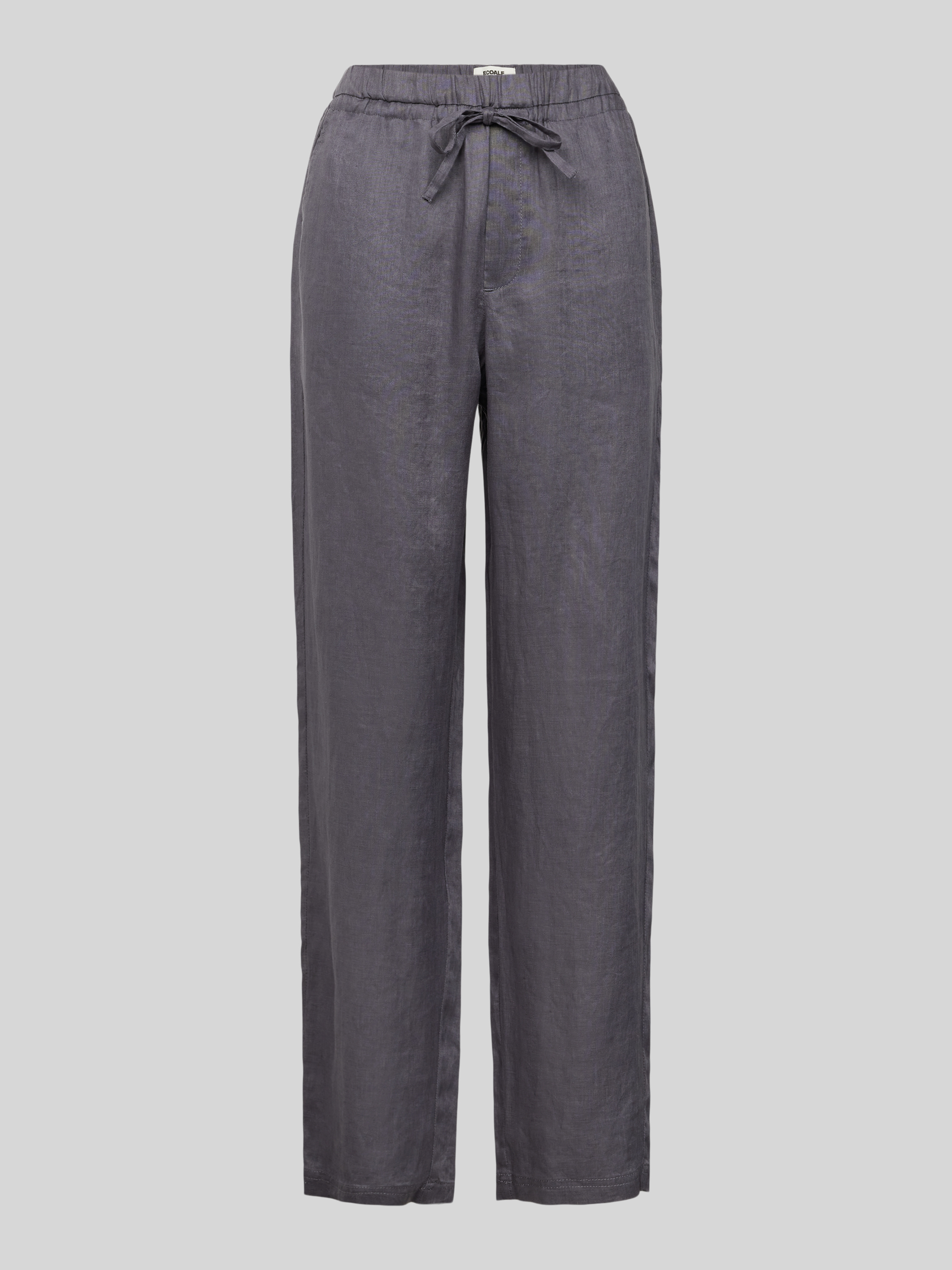 Regular fit linnen broek met tunnelkoord, model 'INDIALF' in antraciet