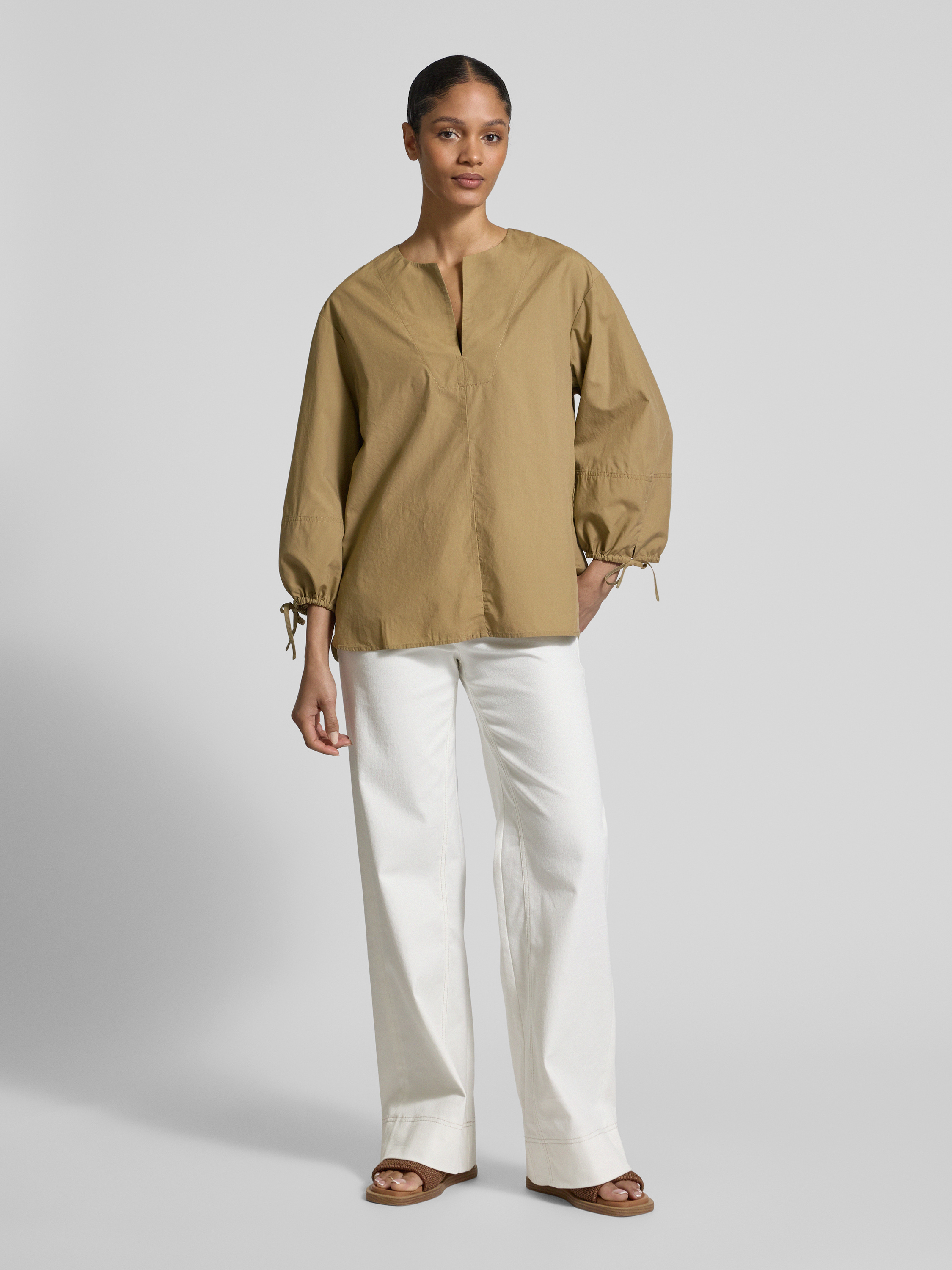 Relaxed fit blouse met V-hals, model 'JENAALF' in olijfgroen