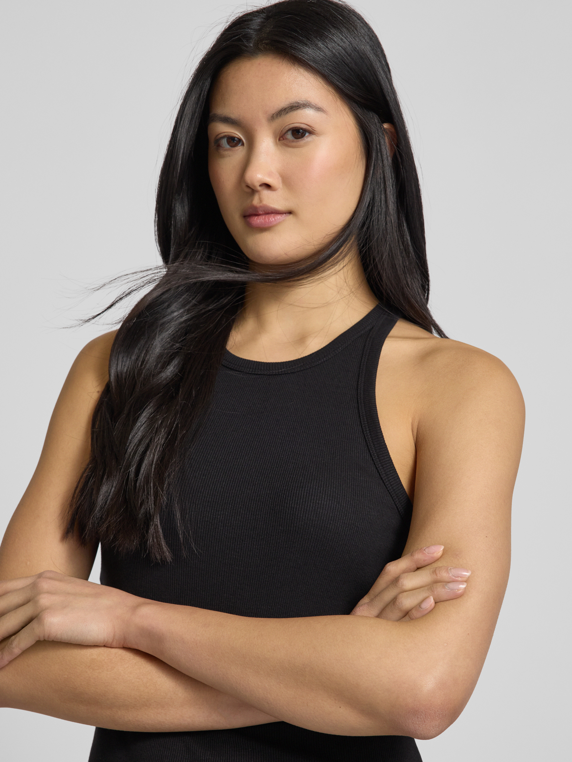 Tanktop met ribboorden, model 'ARLES' in zwart
