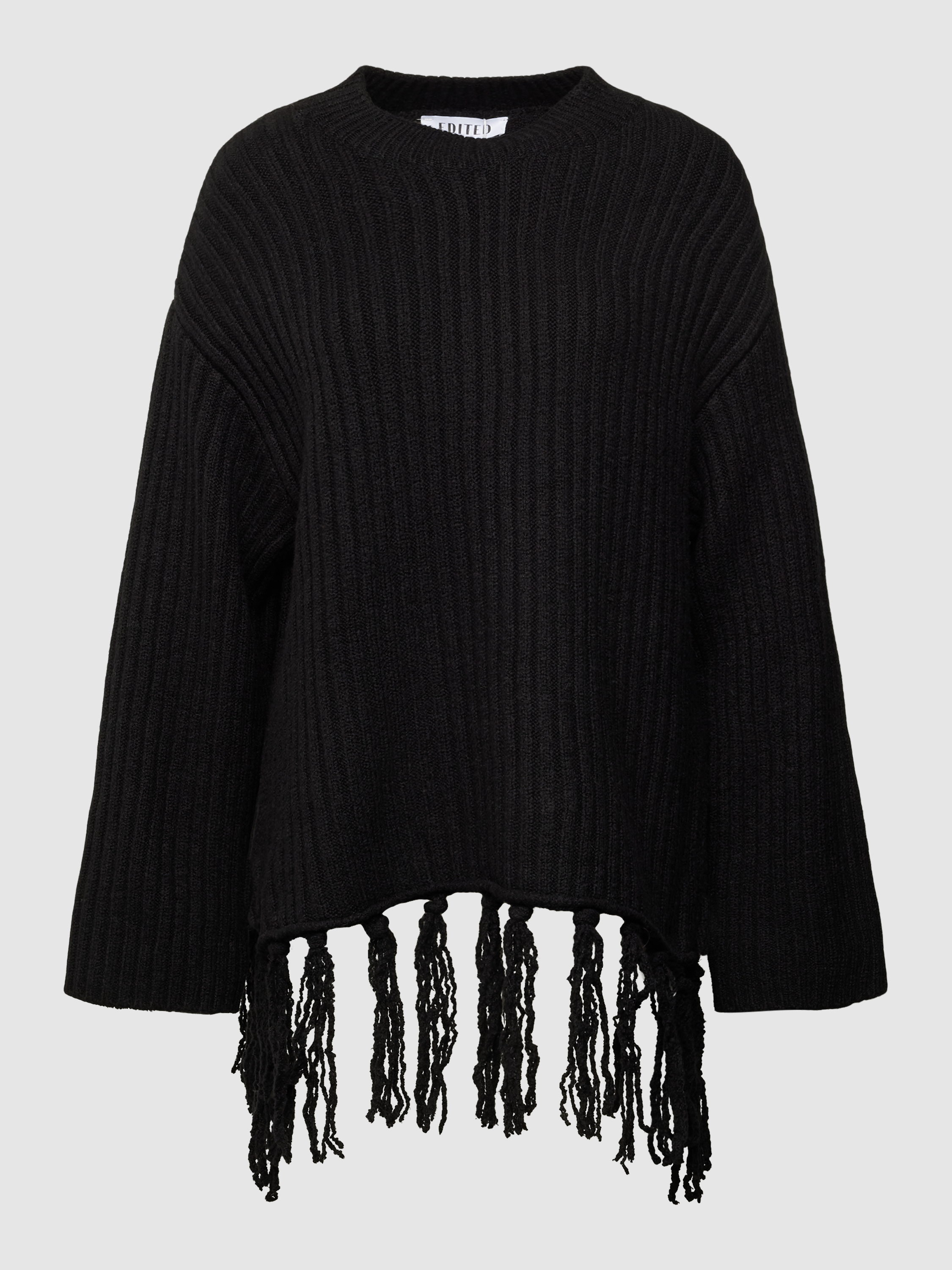 Gebreide pullover met franjes, model 'Narumol' in zwart