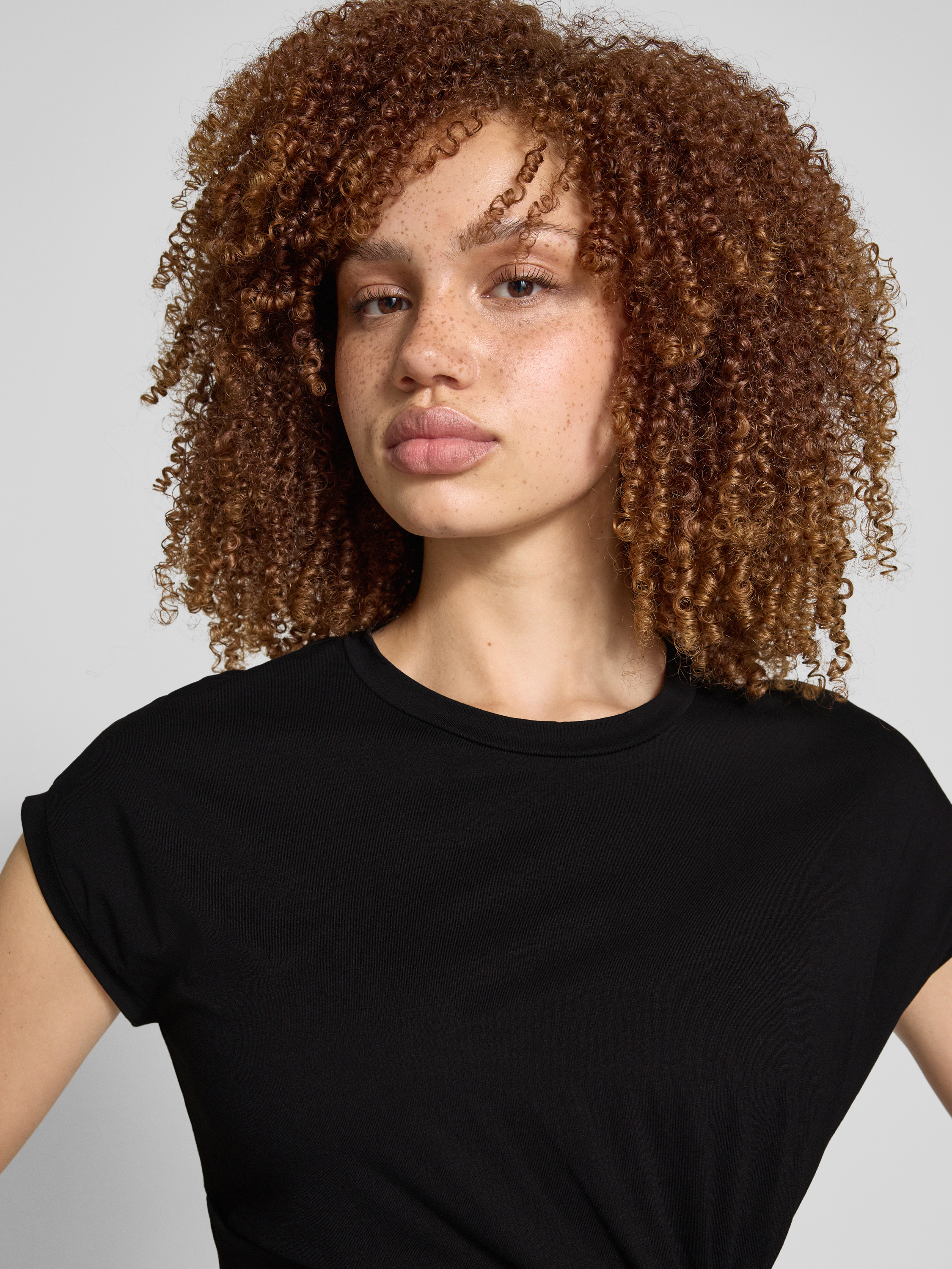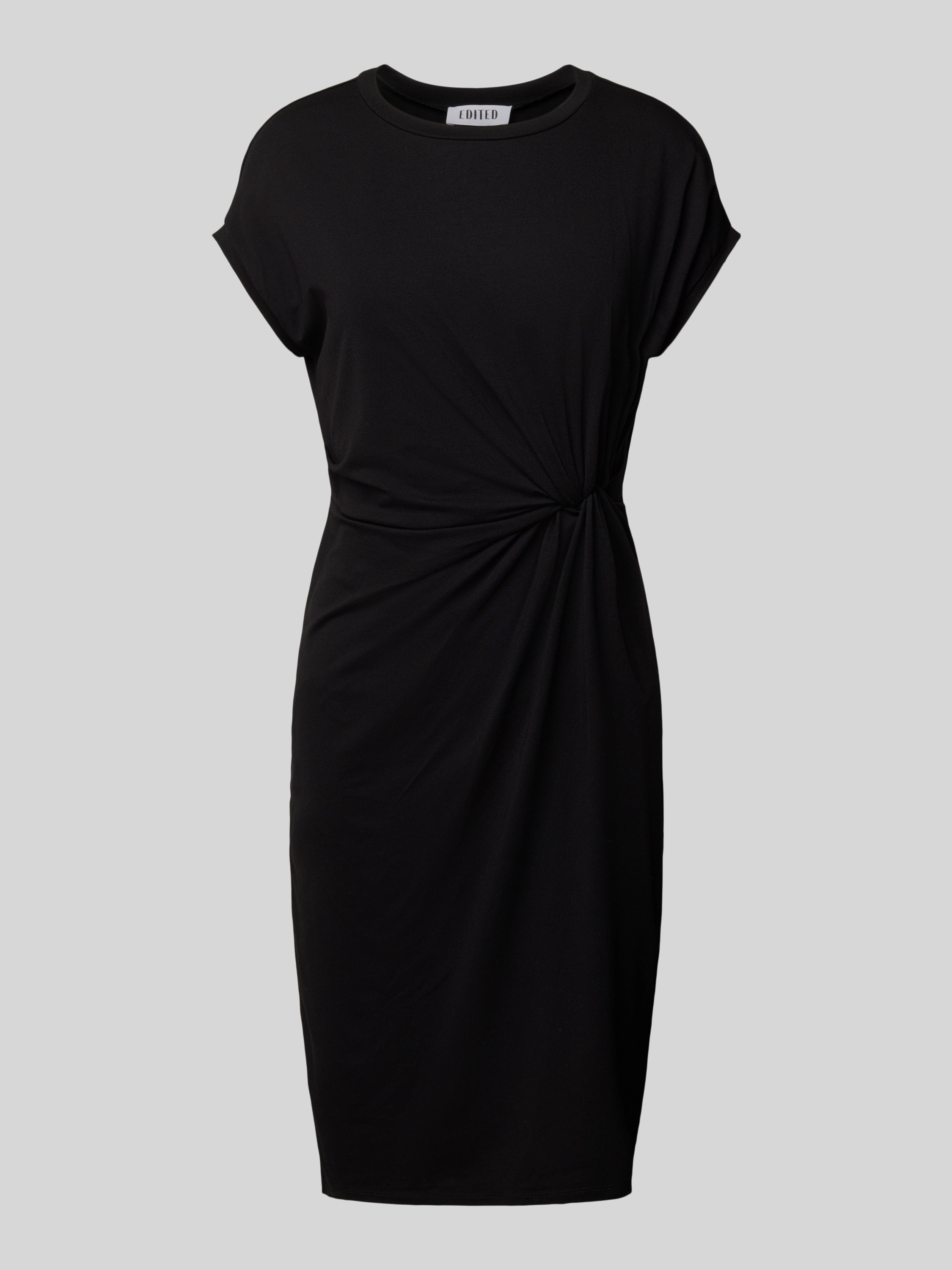 Knielange jerseyjurk met knoopdetail, model 'Faith' in zwart
