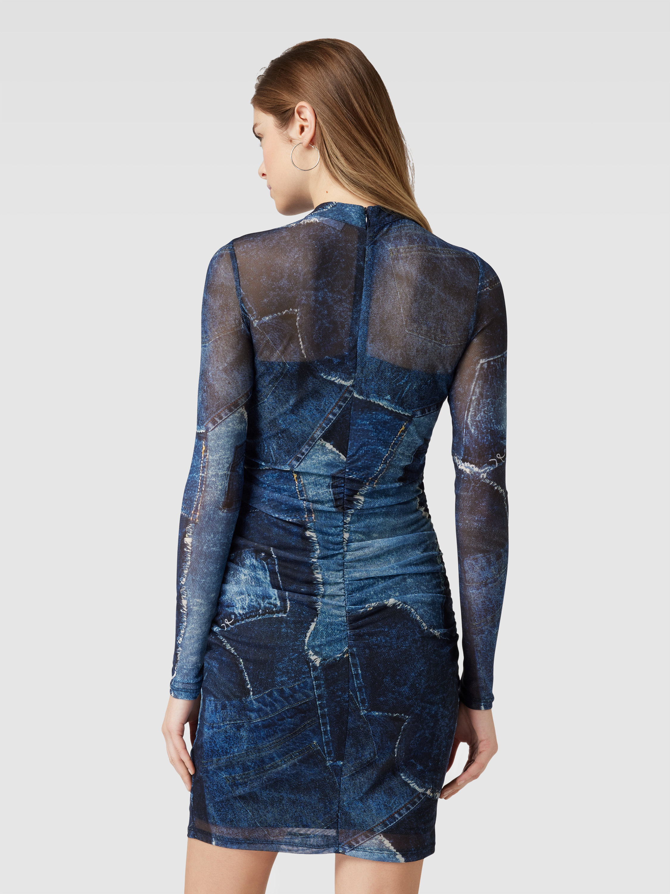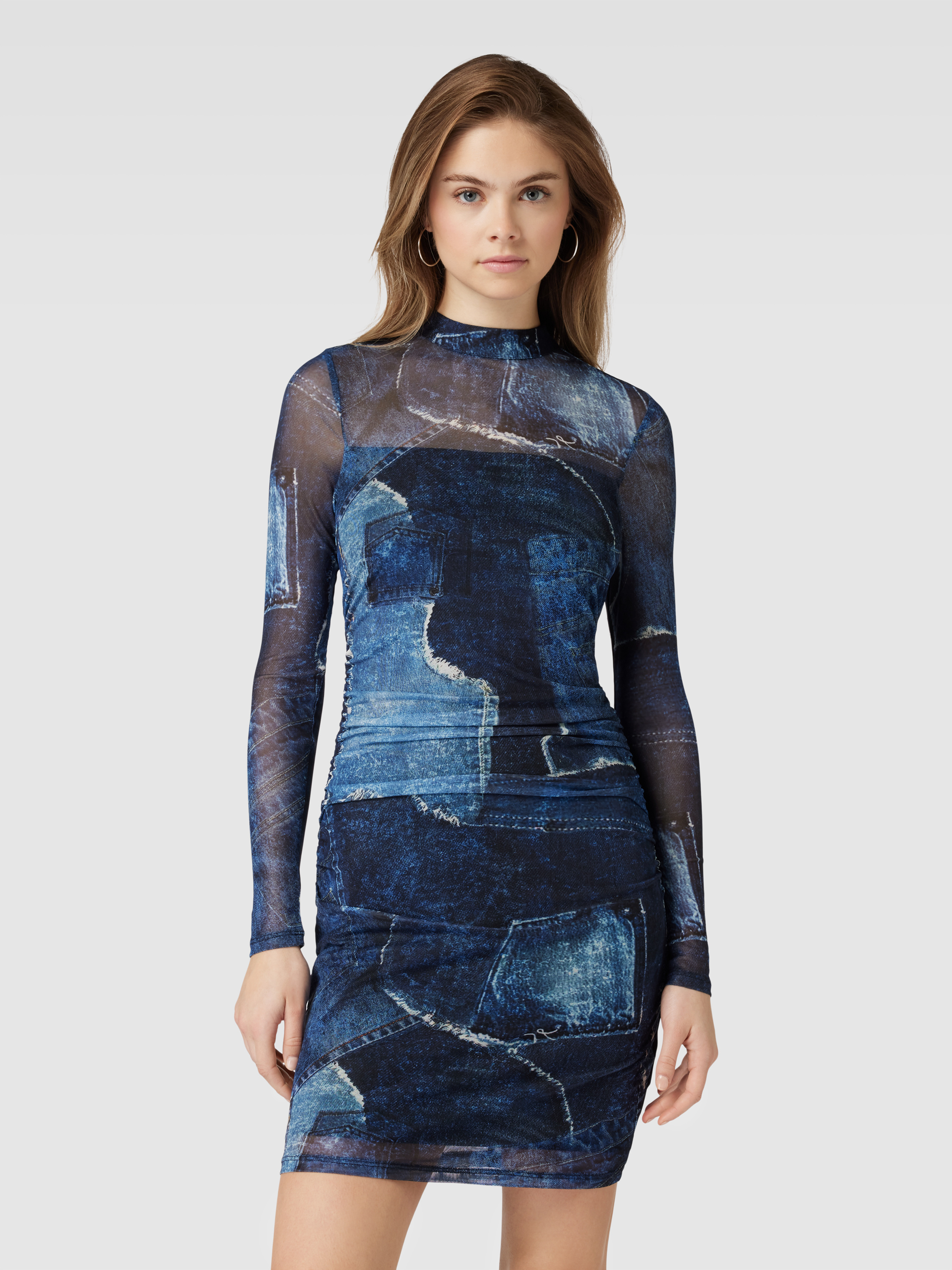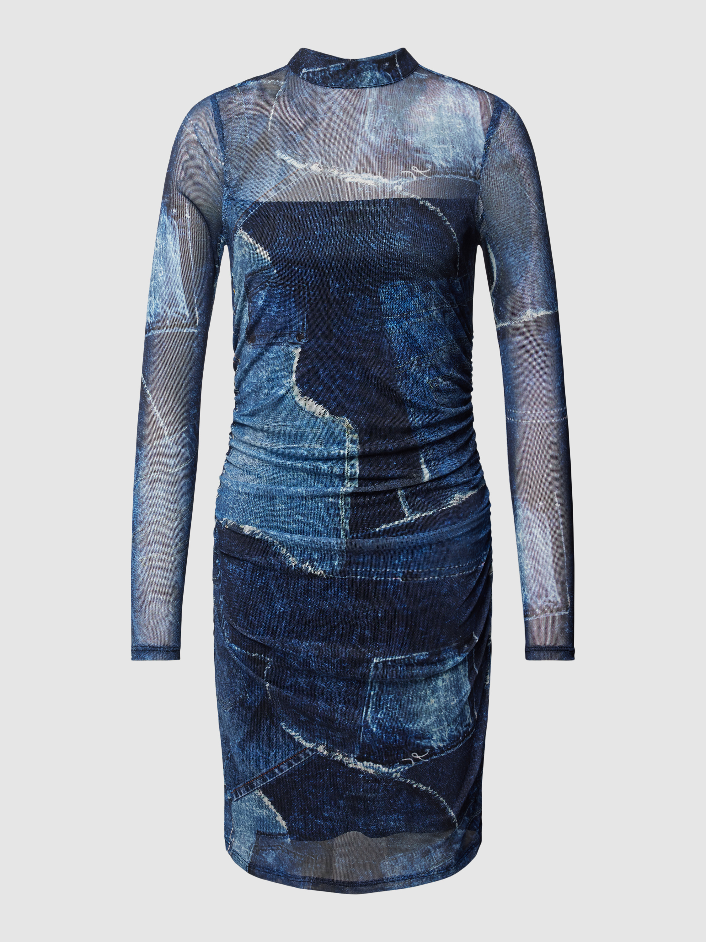 Knielange jurk in semi-transparant design in jeansblauw
