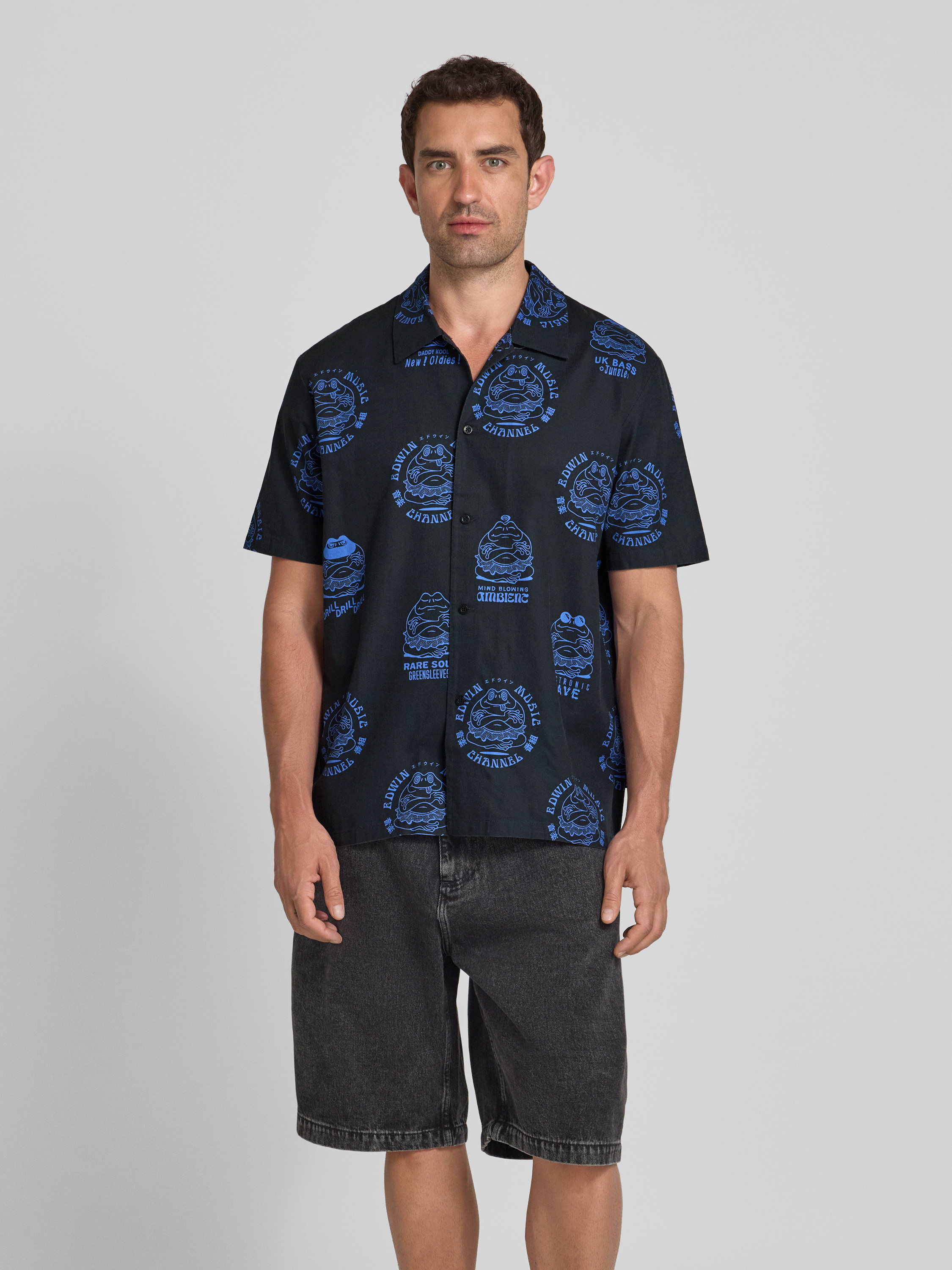 Regular fit vrijetijdsoverhemd met kentkraag in zwart