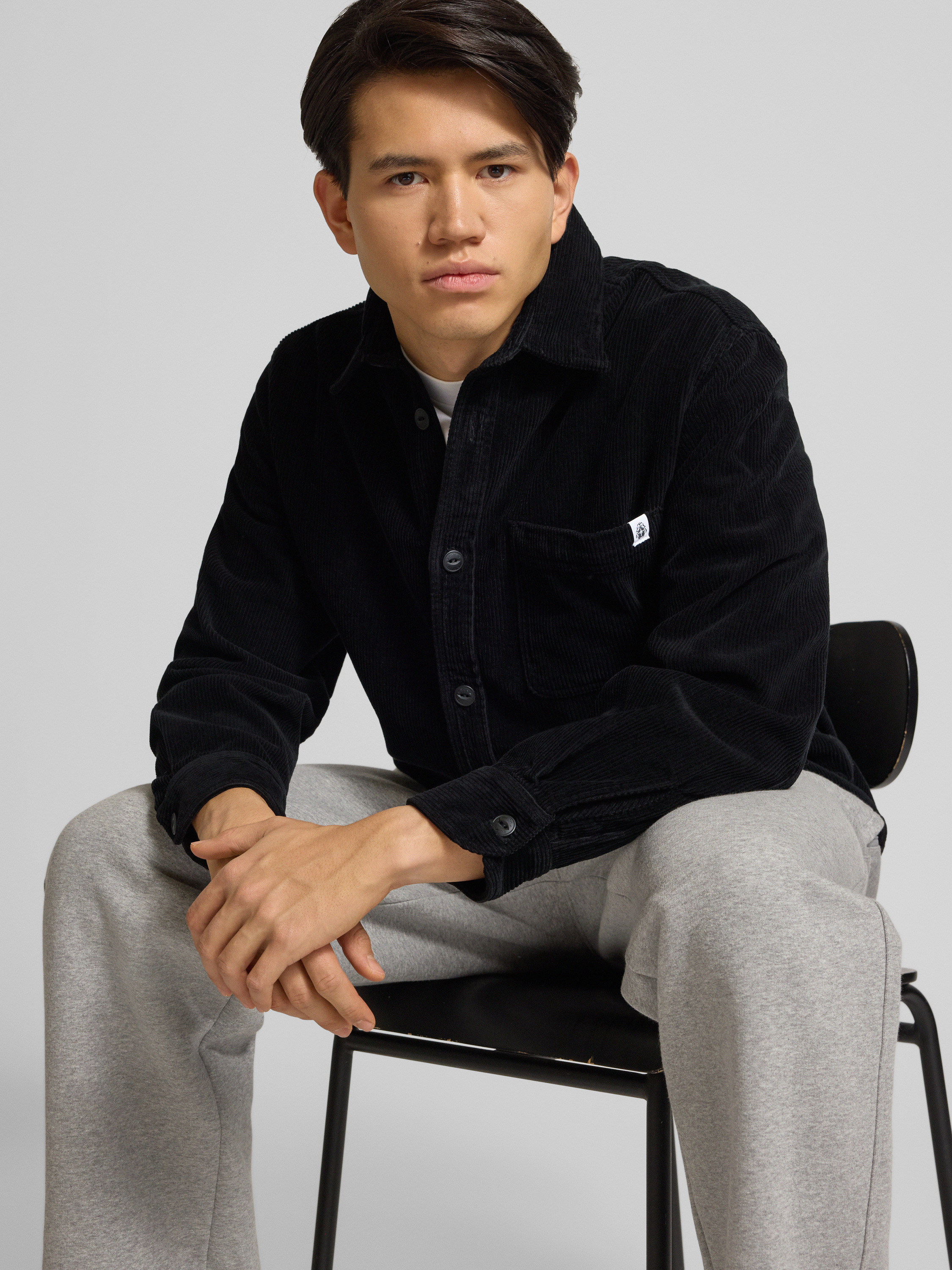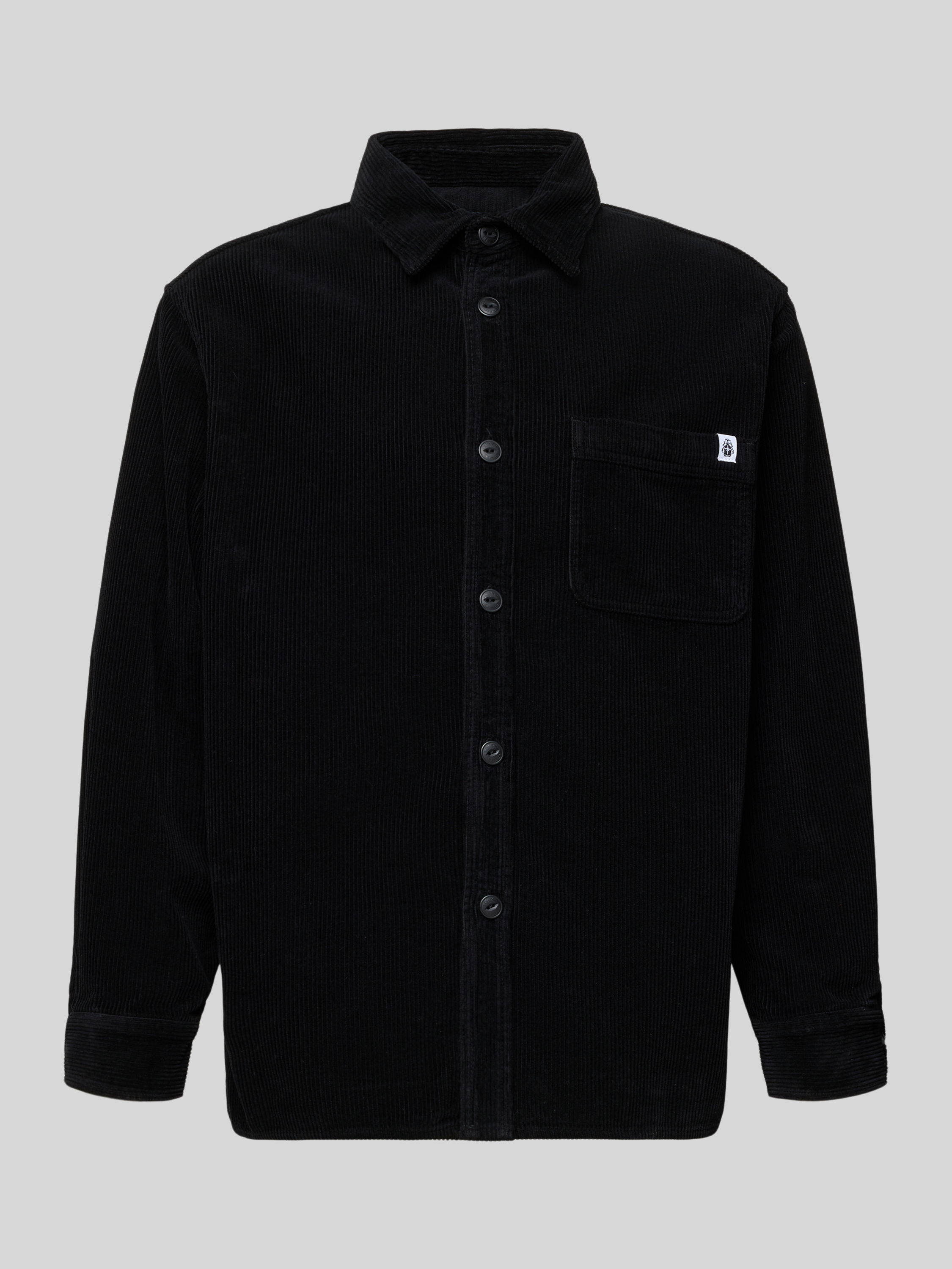Regular fit vrijetijdsoverhemd van corduroy met kentkraag, model 'ANDER' in zwart