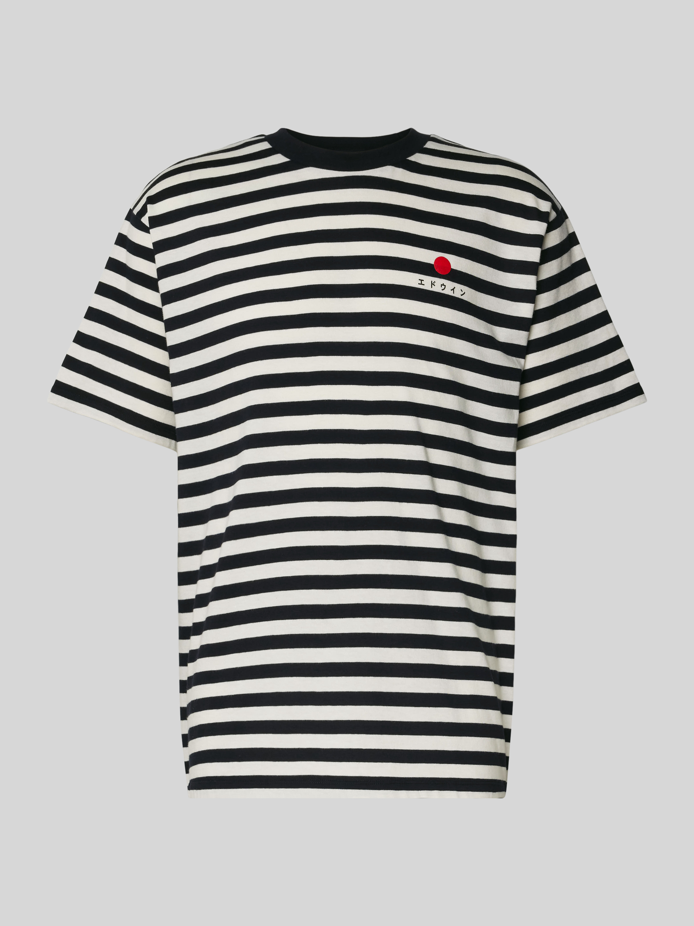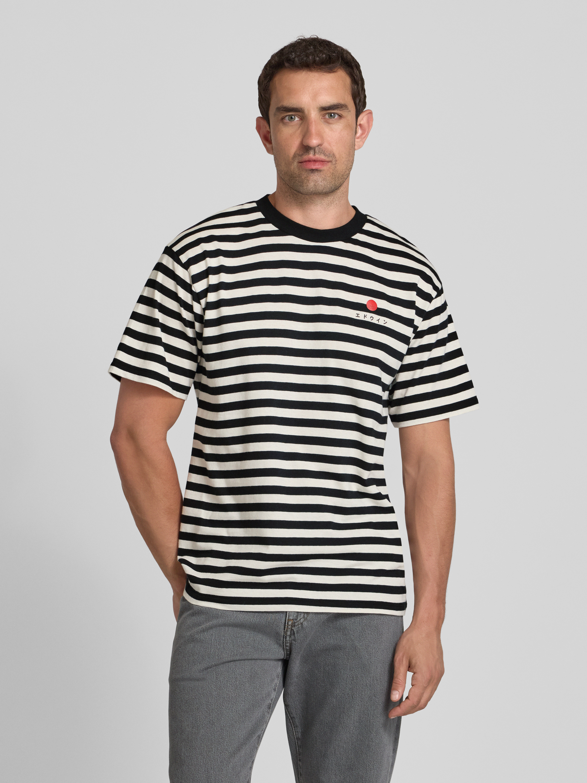 T-shirt met stitchingdetail, model 'BASIC STRIPE' in zwart