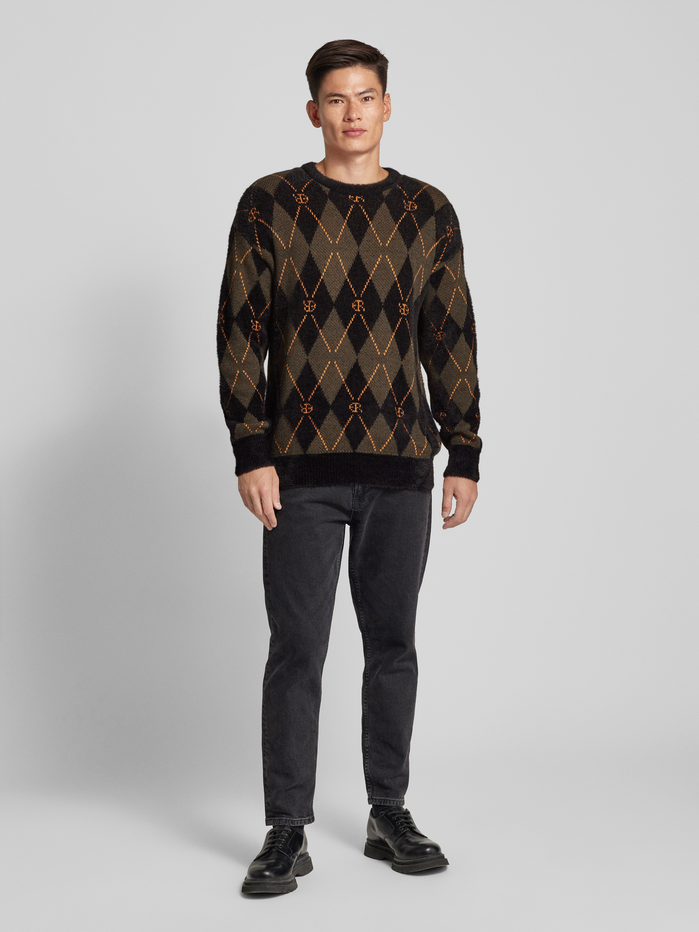 Gebreide pullover met all-over motief in zwart