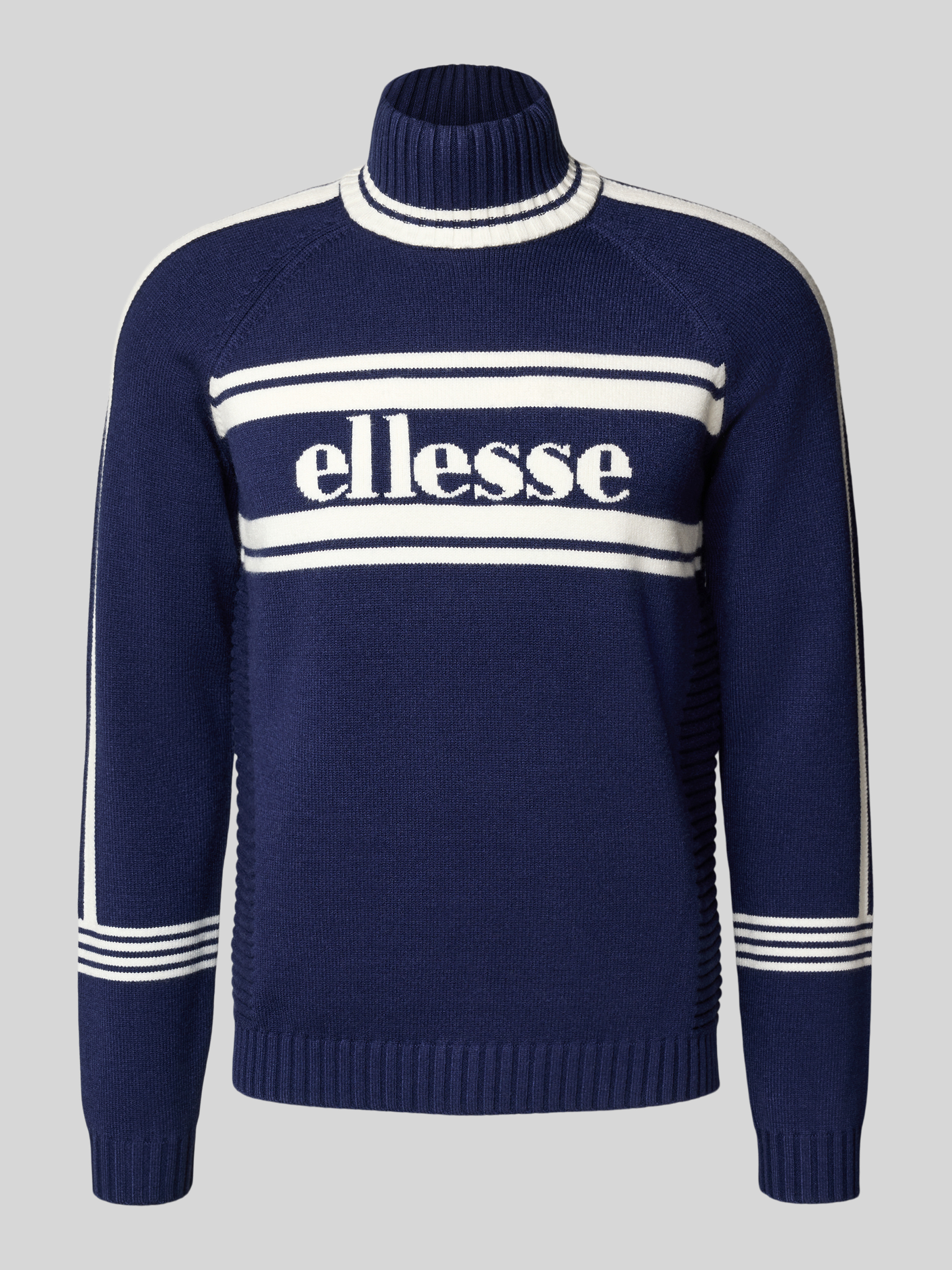 Gebreide pullover met opstaande kraag, model 'PELLINI' in donkerblauw