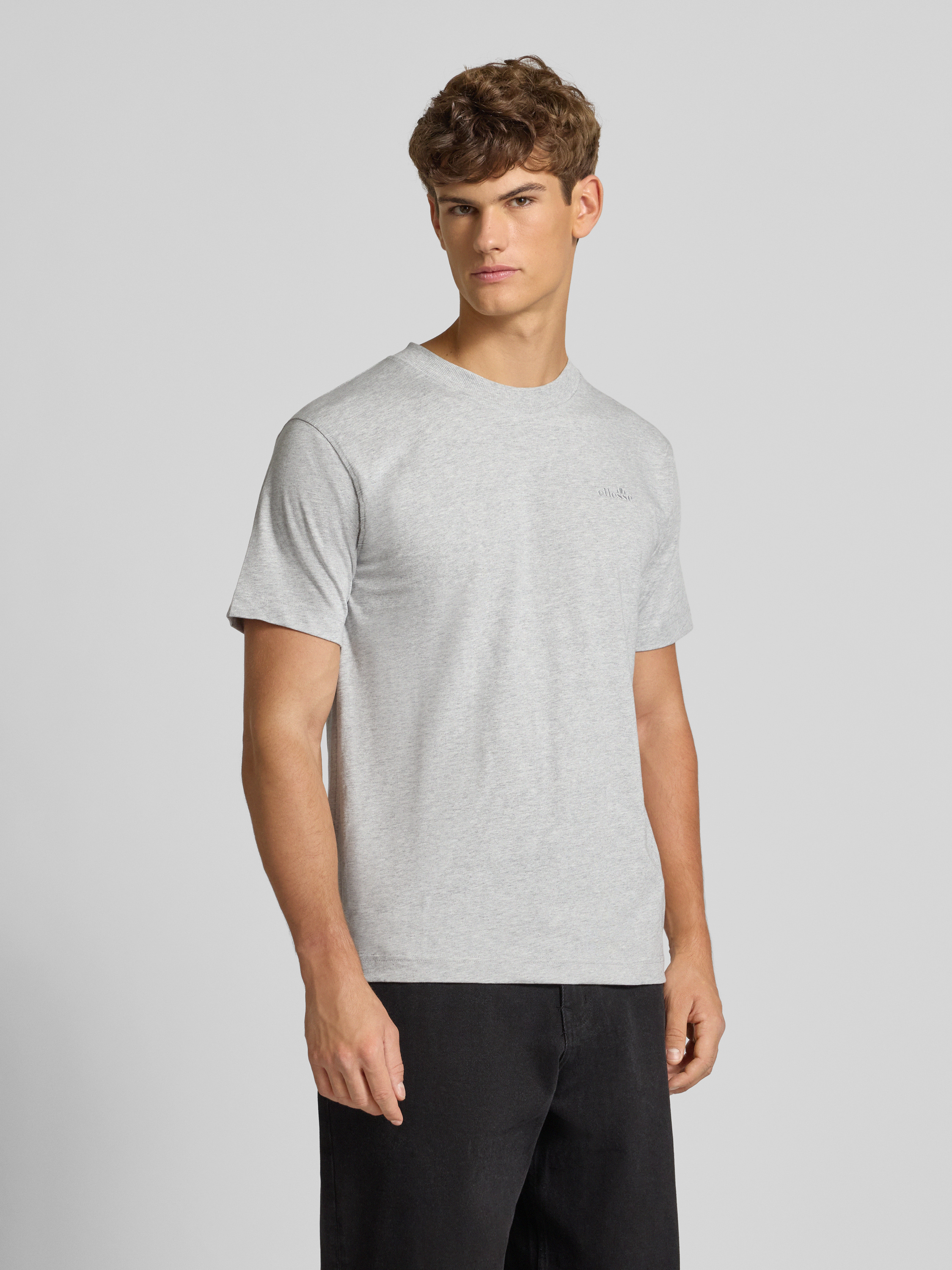 T-shirt met labelstitching en ronde hals in lichtgrijs
