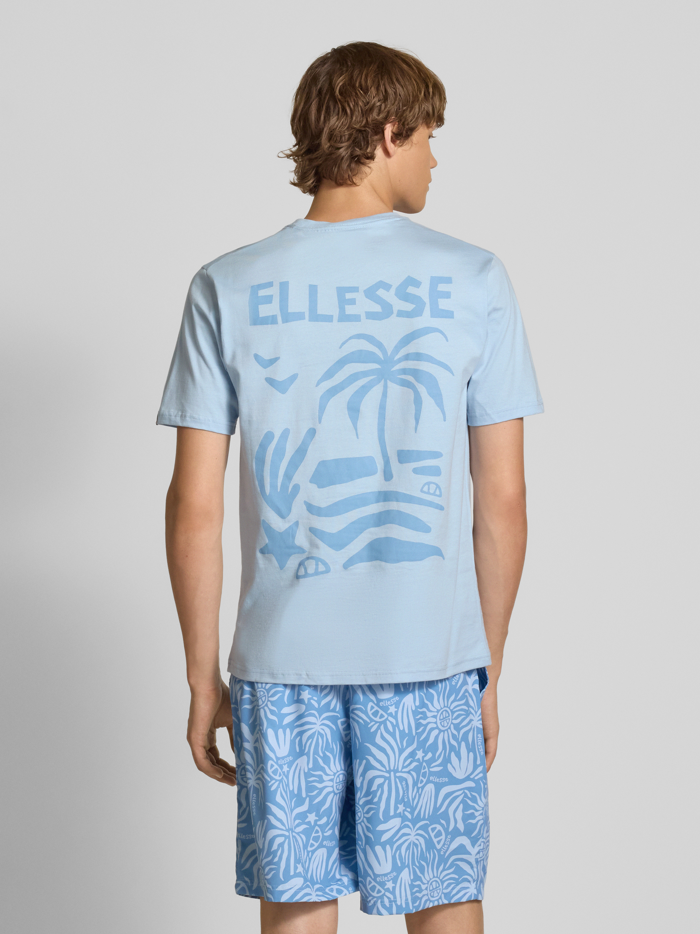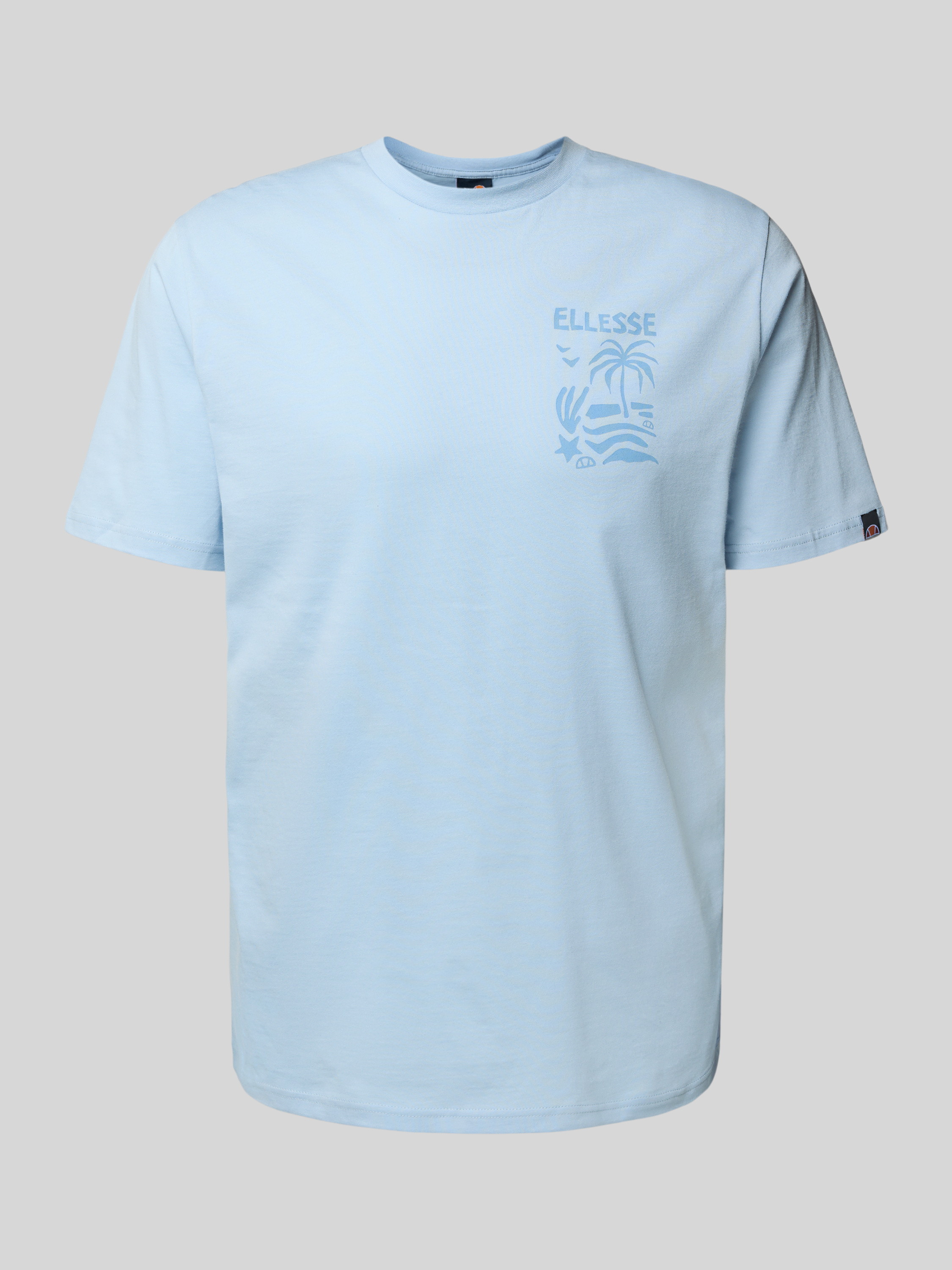 T-shirt met motief- en labelprint, model 'TROPICOSA' in lichtblauw
