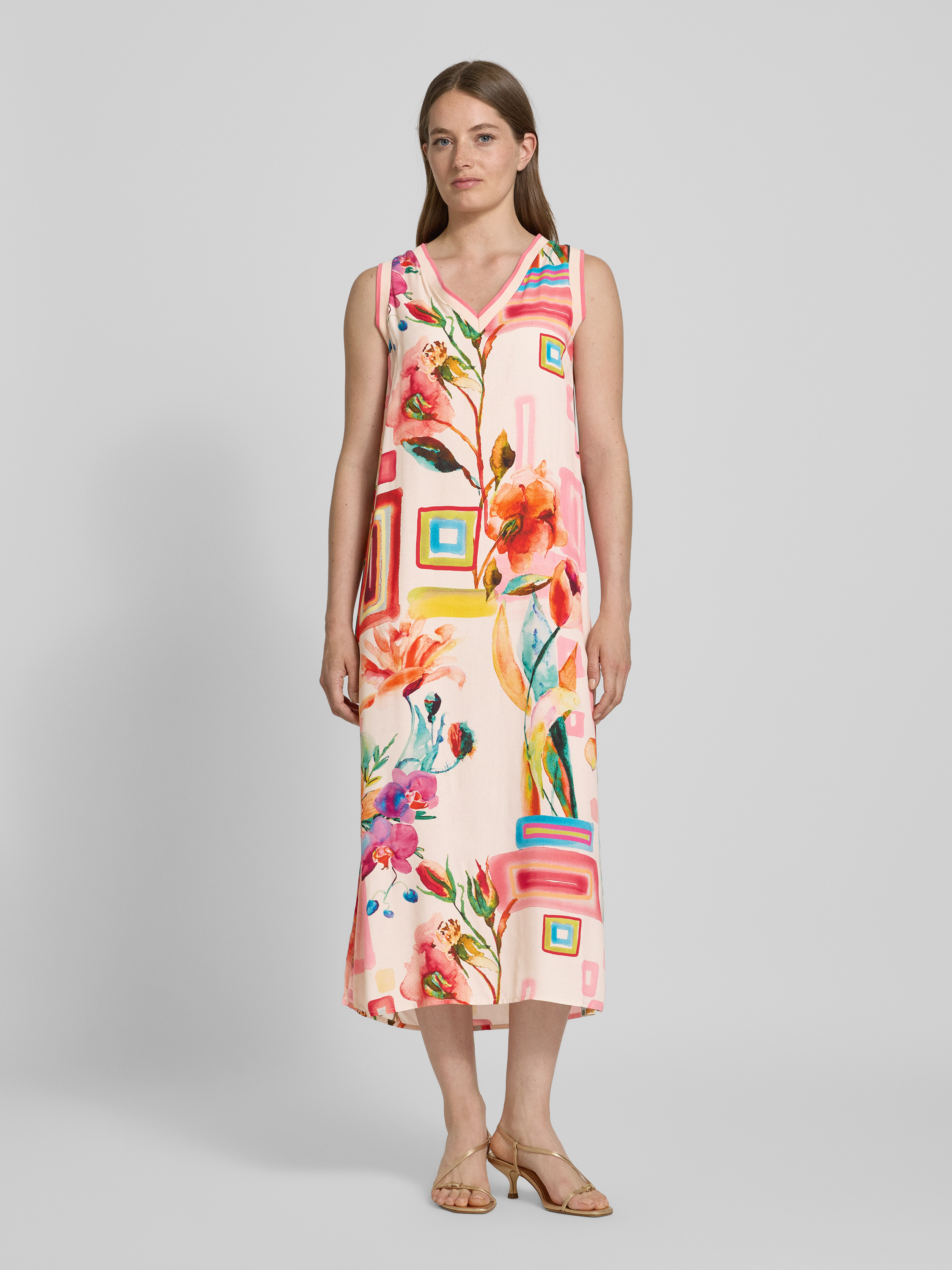 Midi-jurk met V-hals in rosé