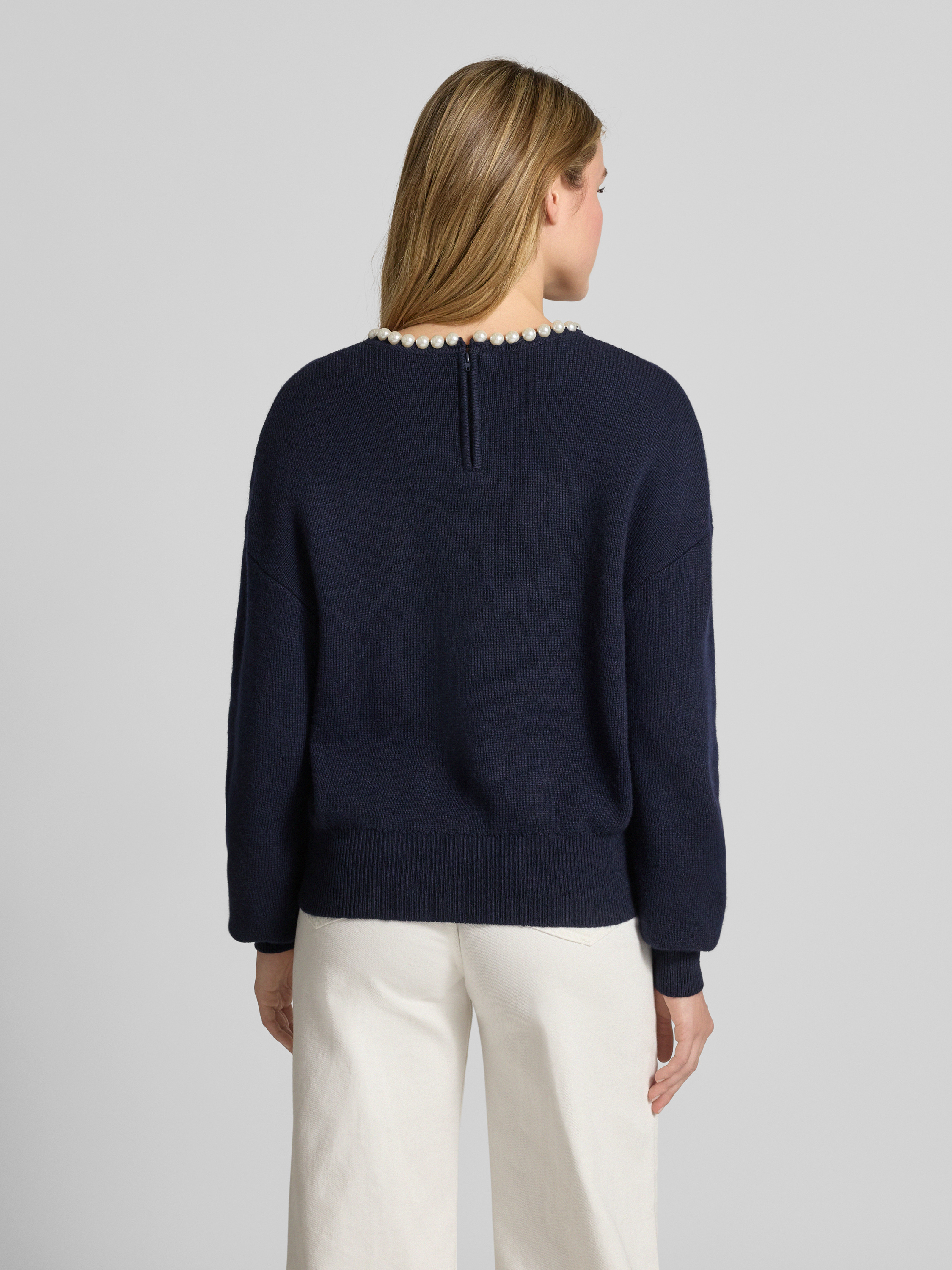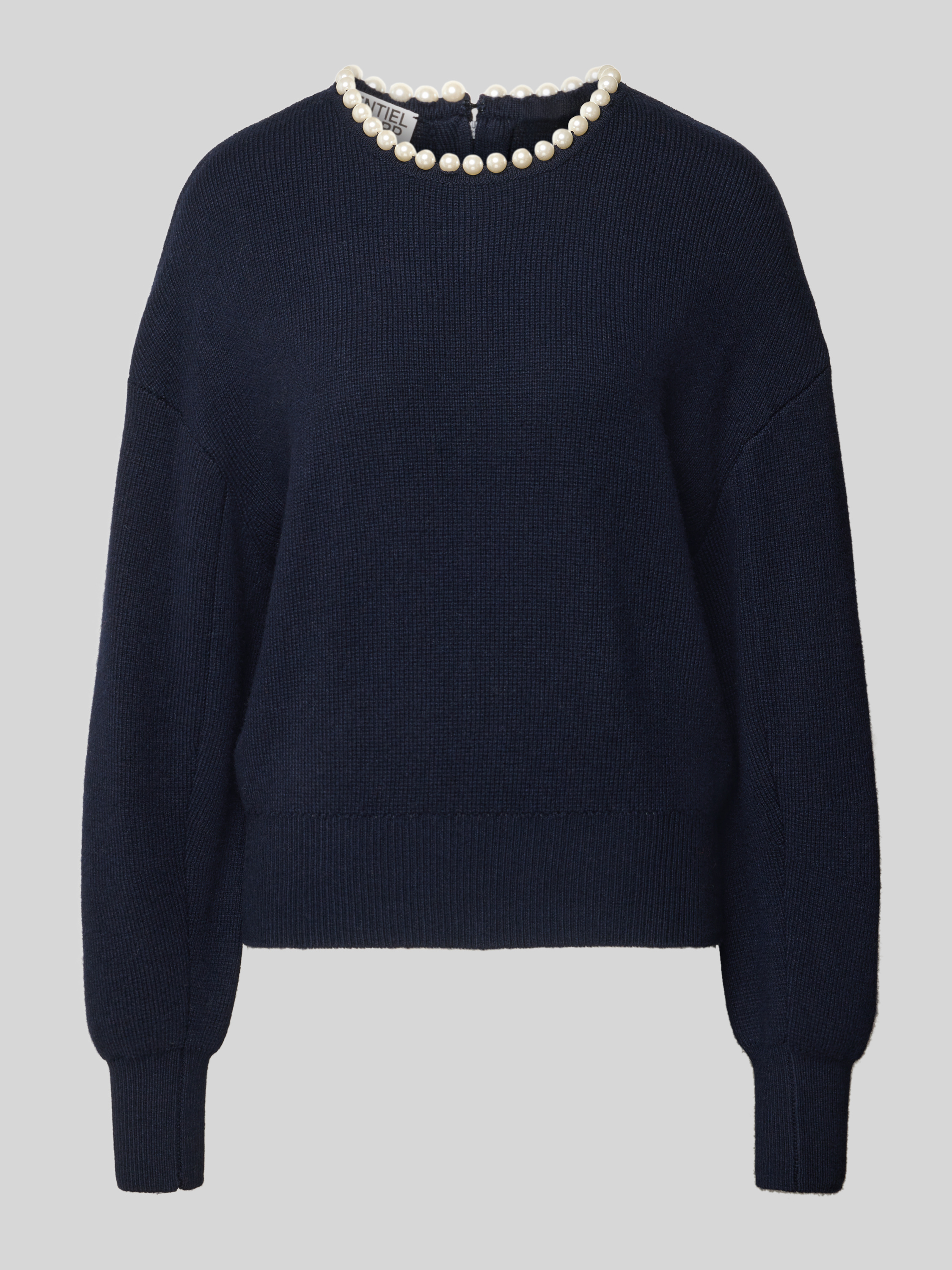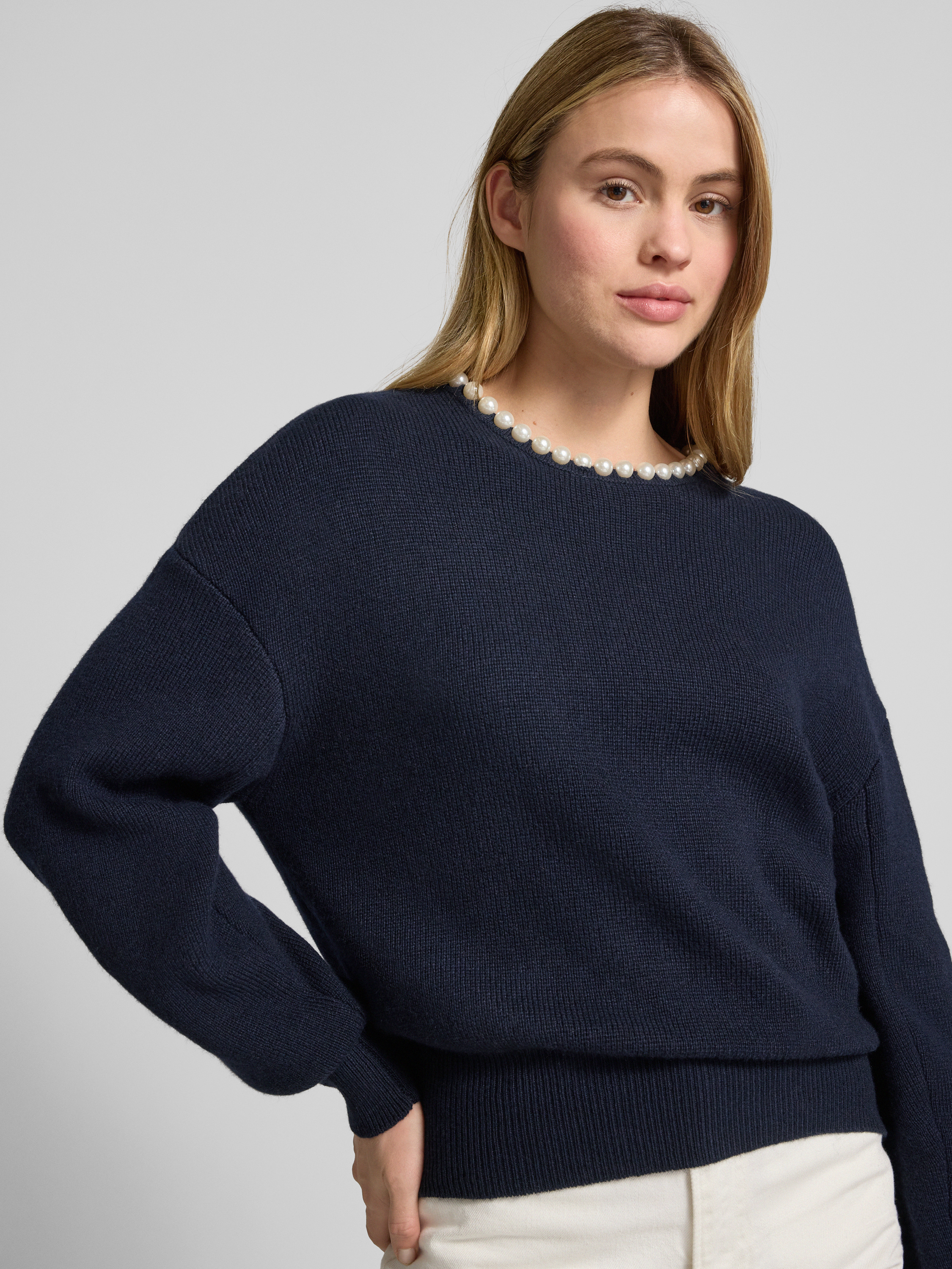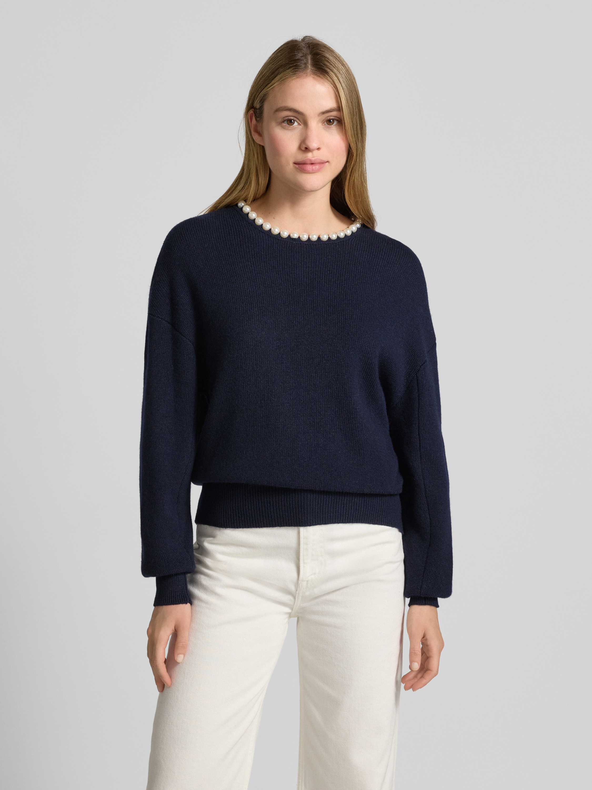 Comfort fit gebreide pullover van wolmix met kasjmier, model 'INTI' in marineblauw