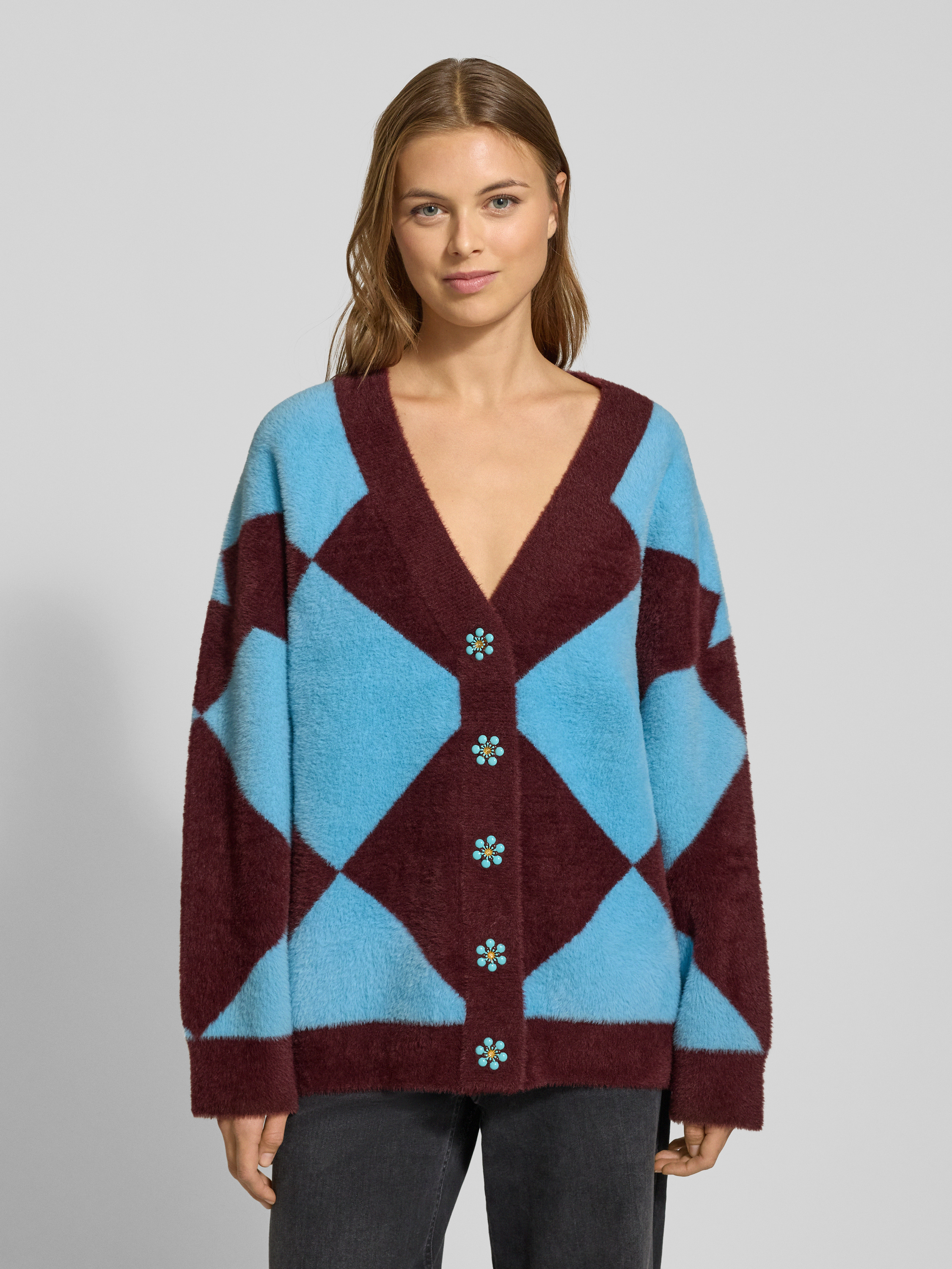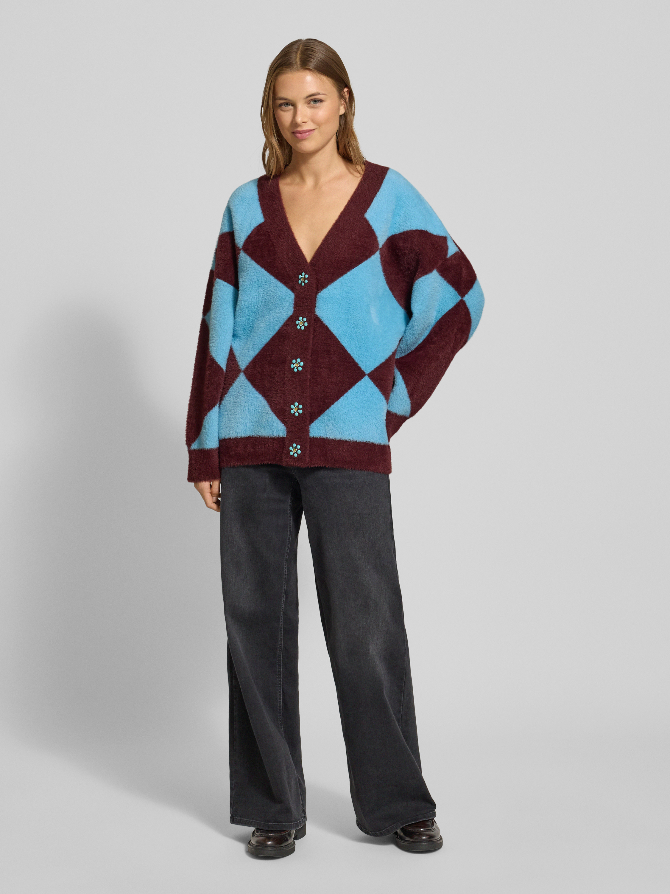 Oversized gebreid jack met bloemvormige knopen, model 'IWHO' in lichtblauw