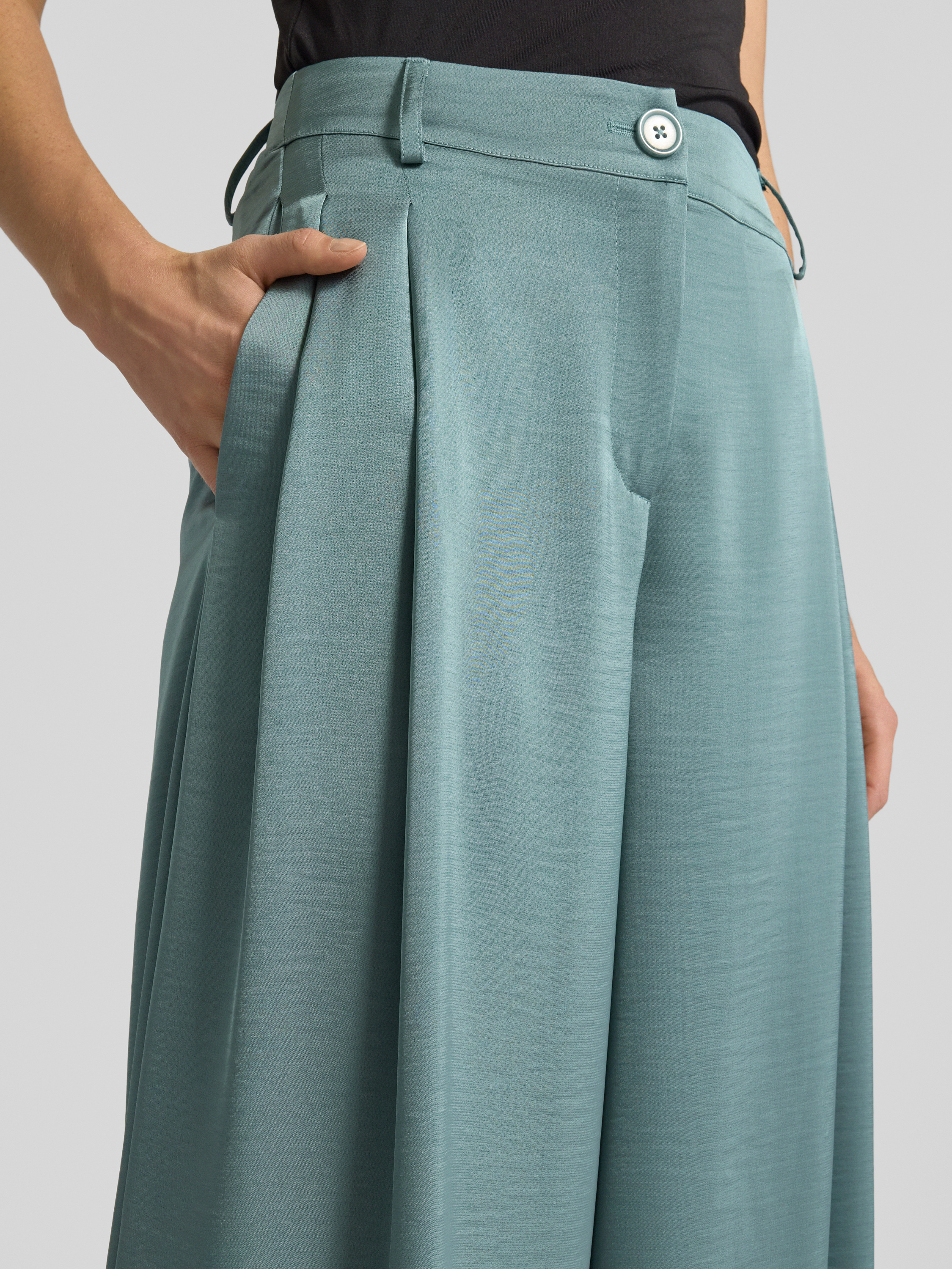 Wijde broek met bandplooien, model 'IXIE' in petrol