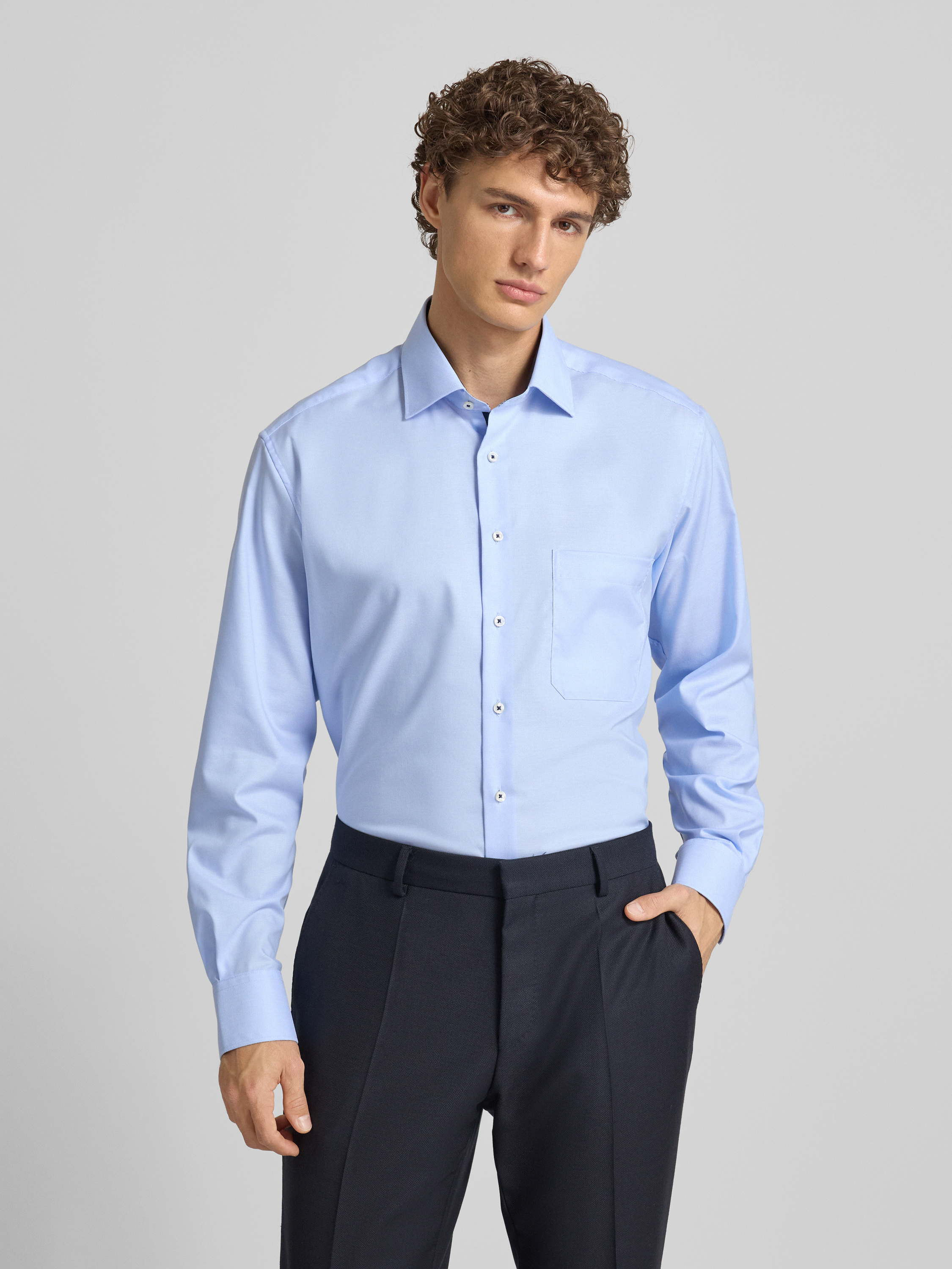 ETERNAComfort fit zakelijk overhemd van katoen met kentkraag in bleu