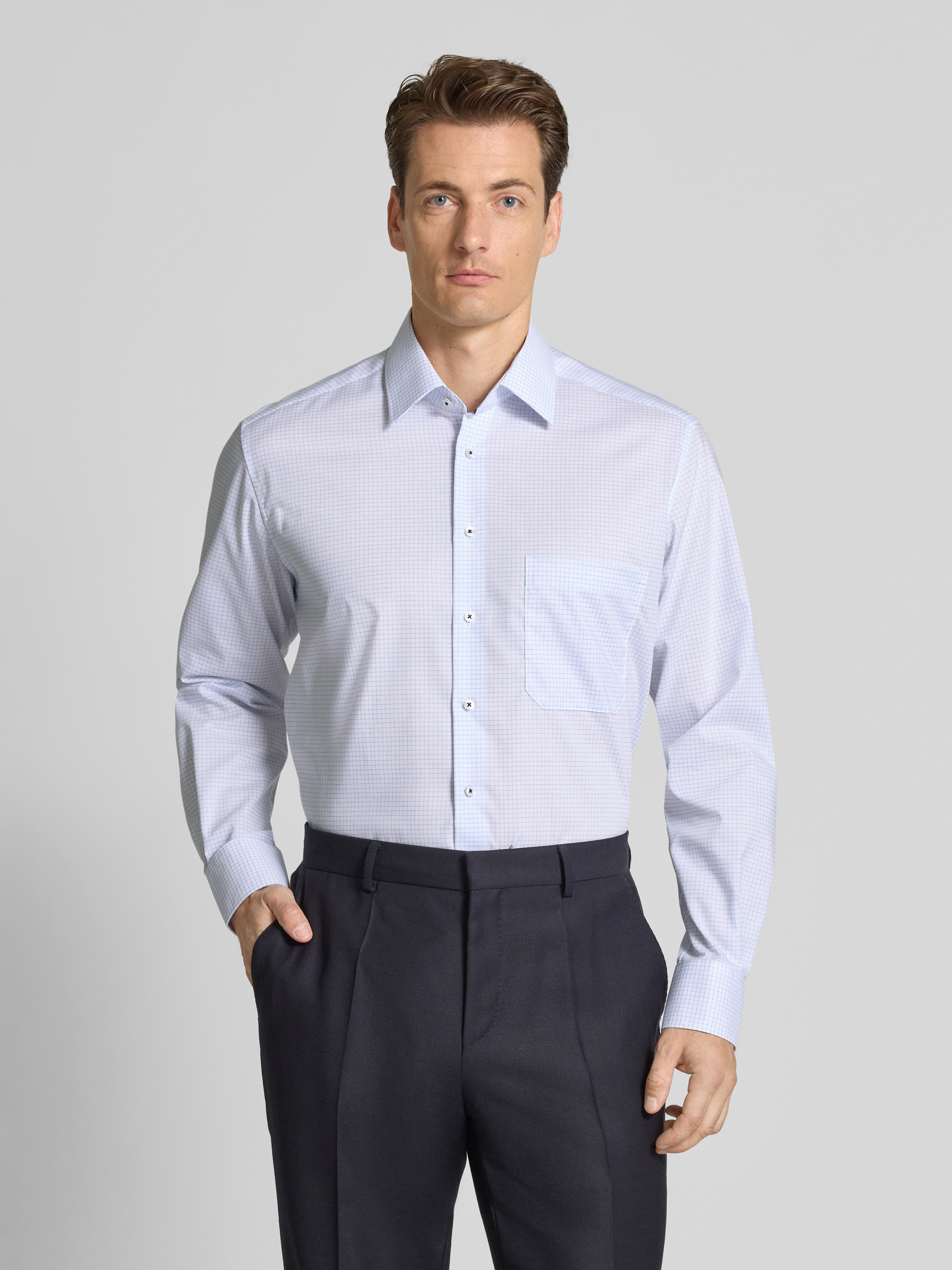 ETERNARegular fit vrijetijdsoverhemd met borstzak, model 'Kent' in bleu