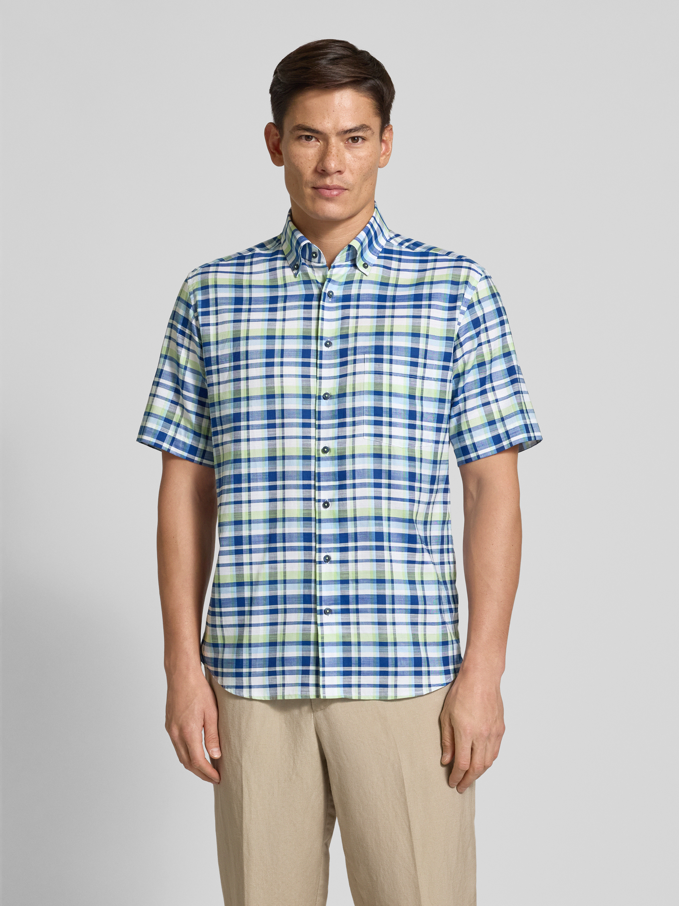 ETERNAModern fit zakelijk overhemd met 1/2-mouwen in groen