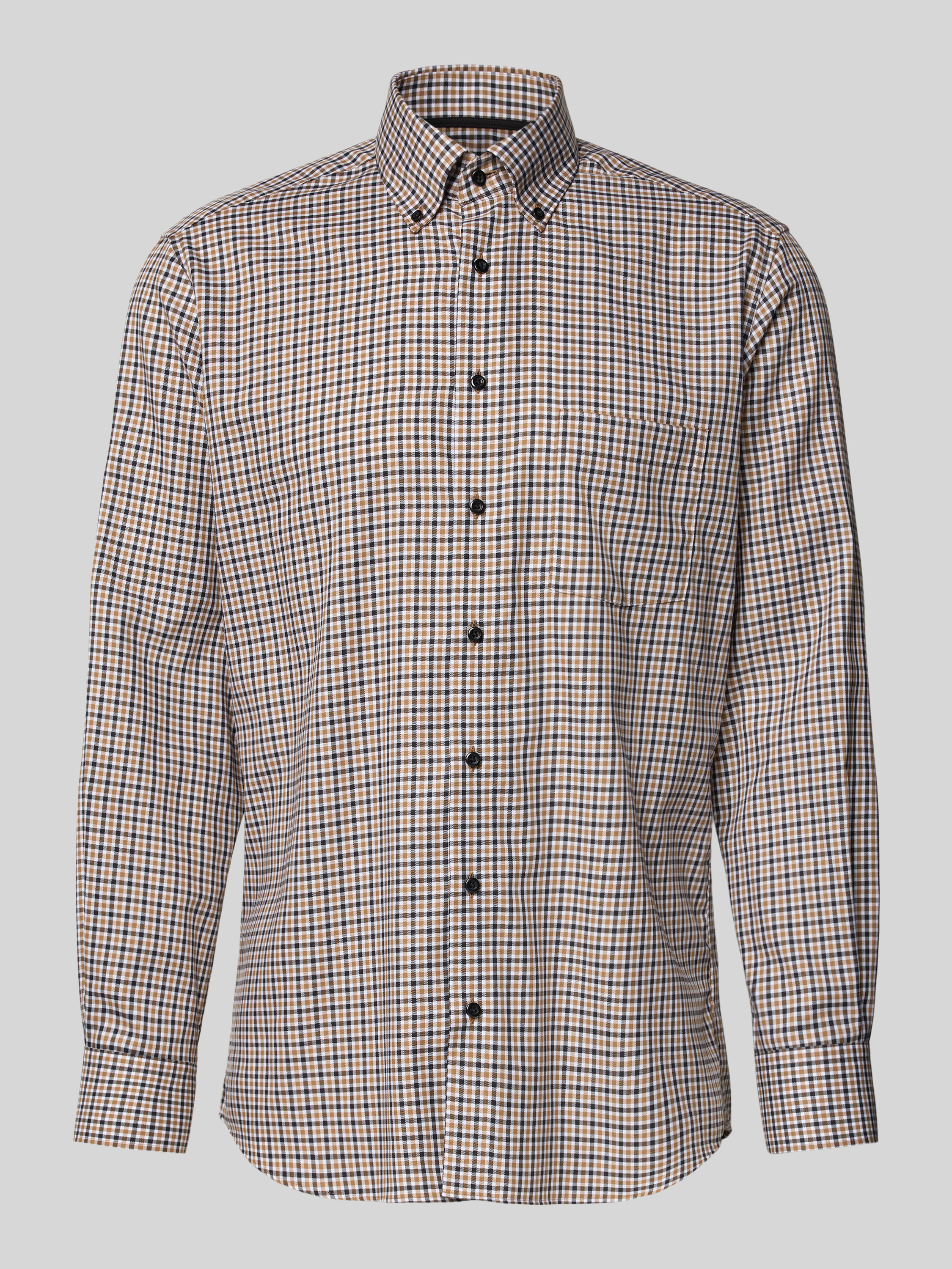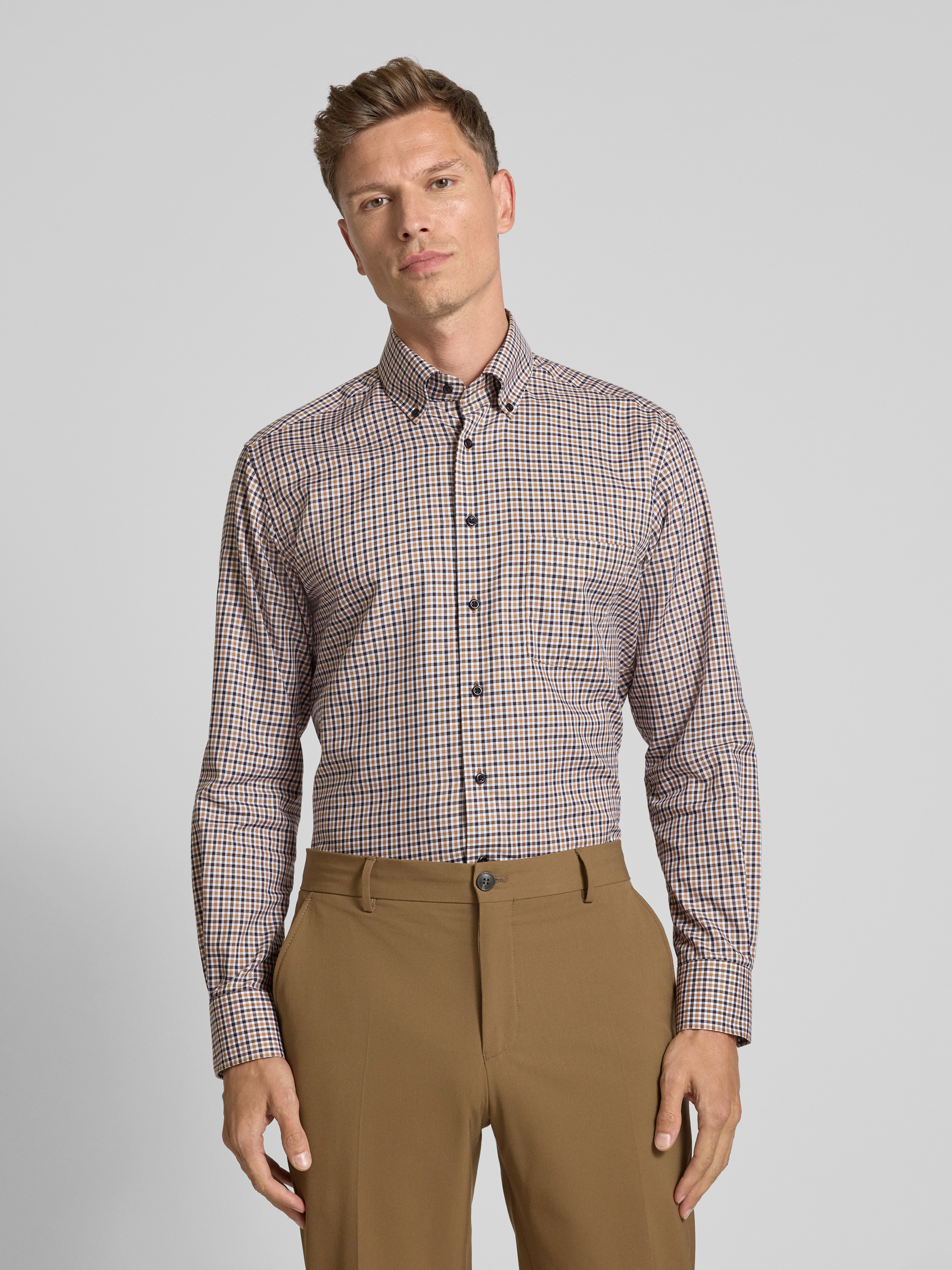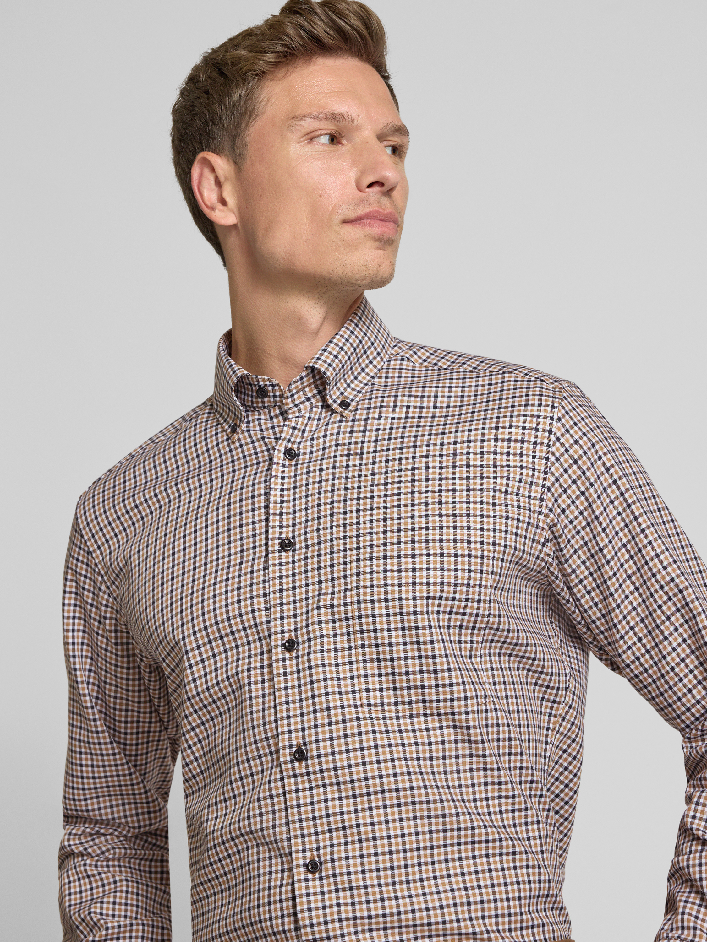 ETERNAModern fit zakelijk overhemd met button-downkraag in hazelnoot