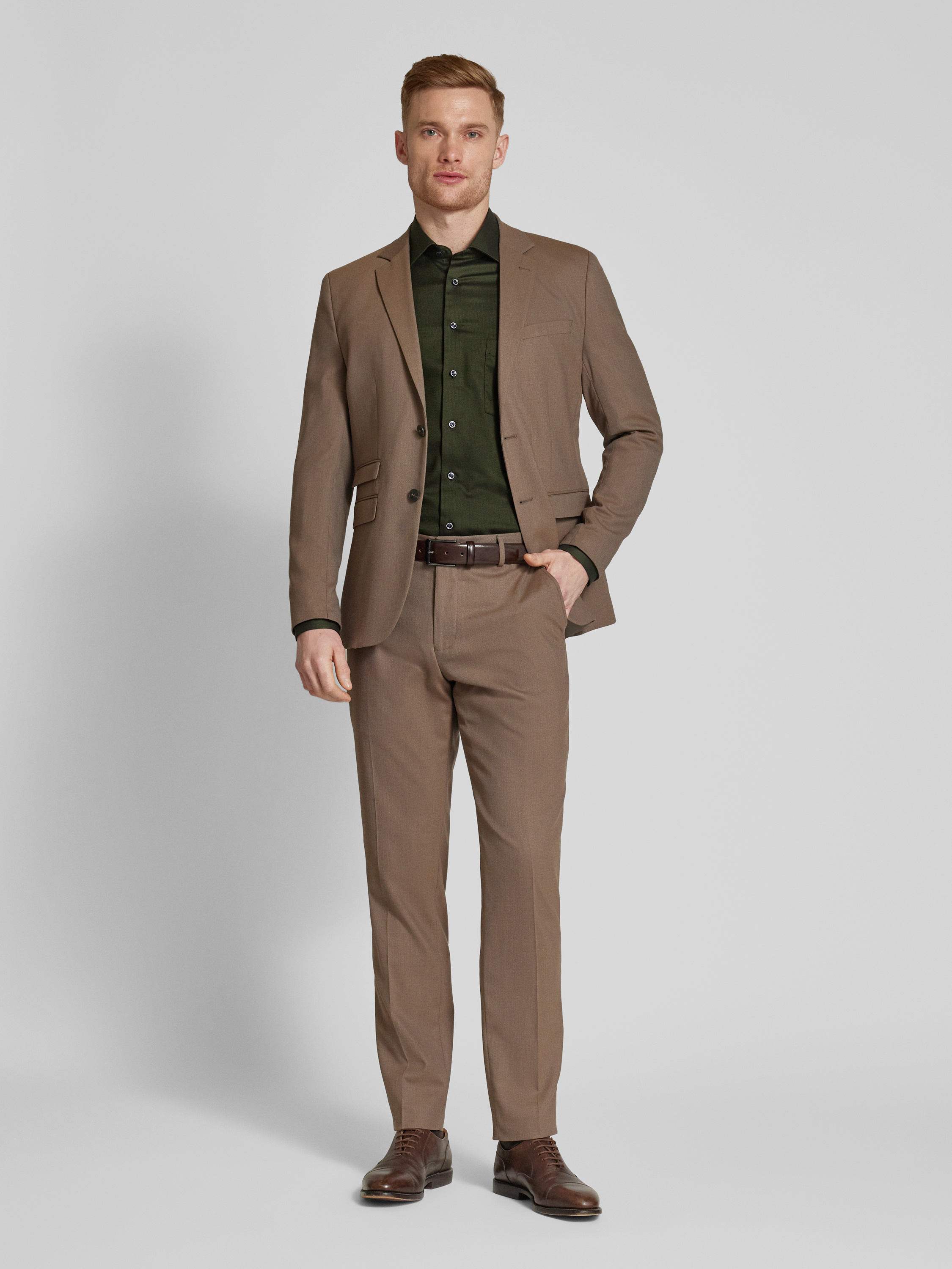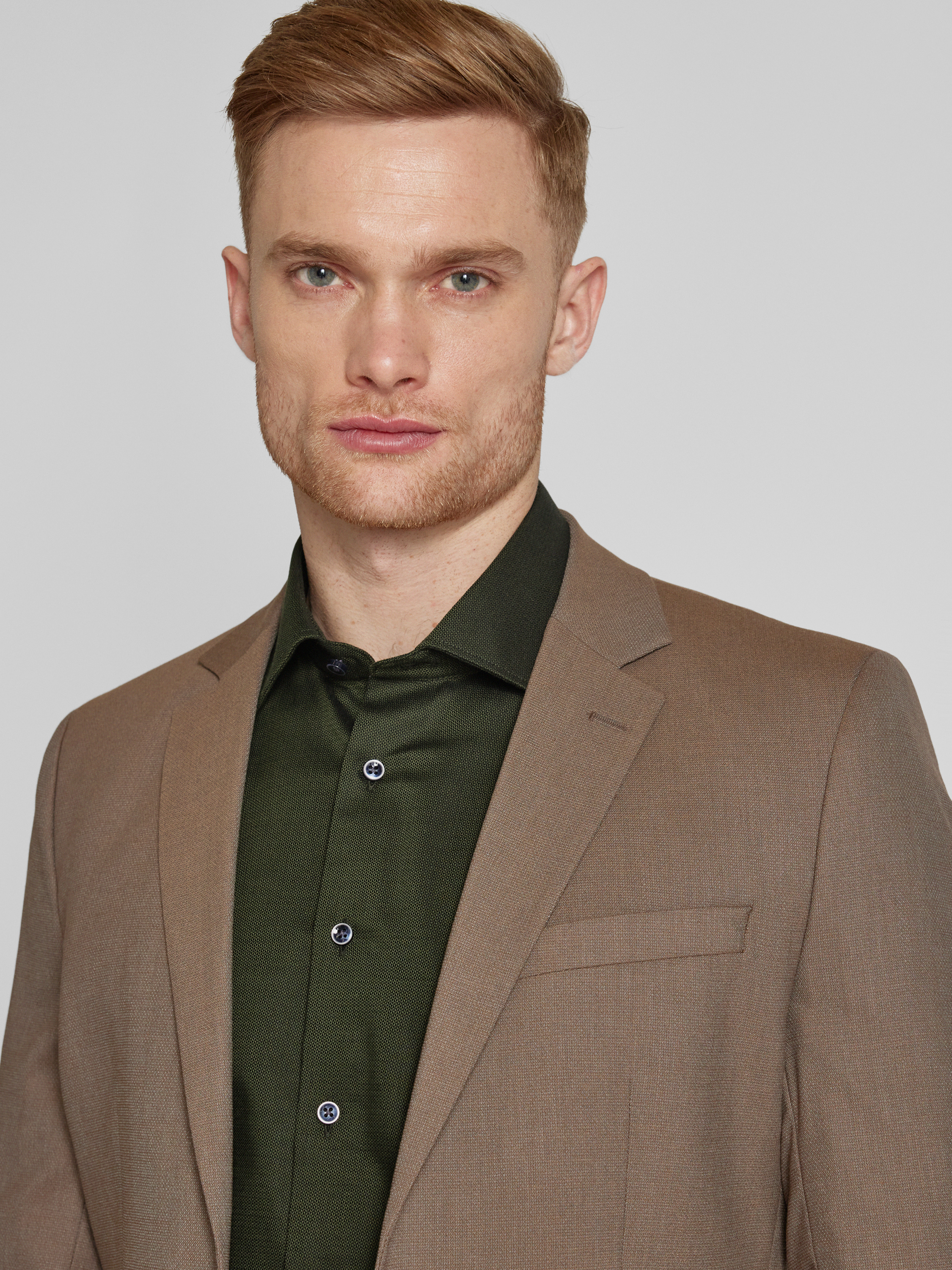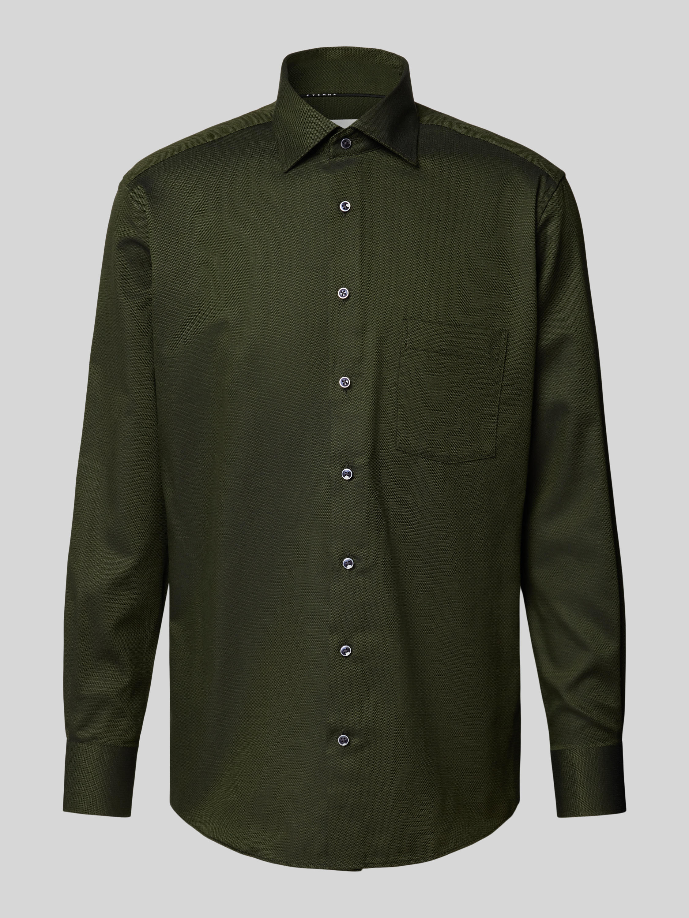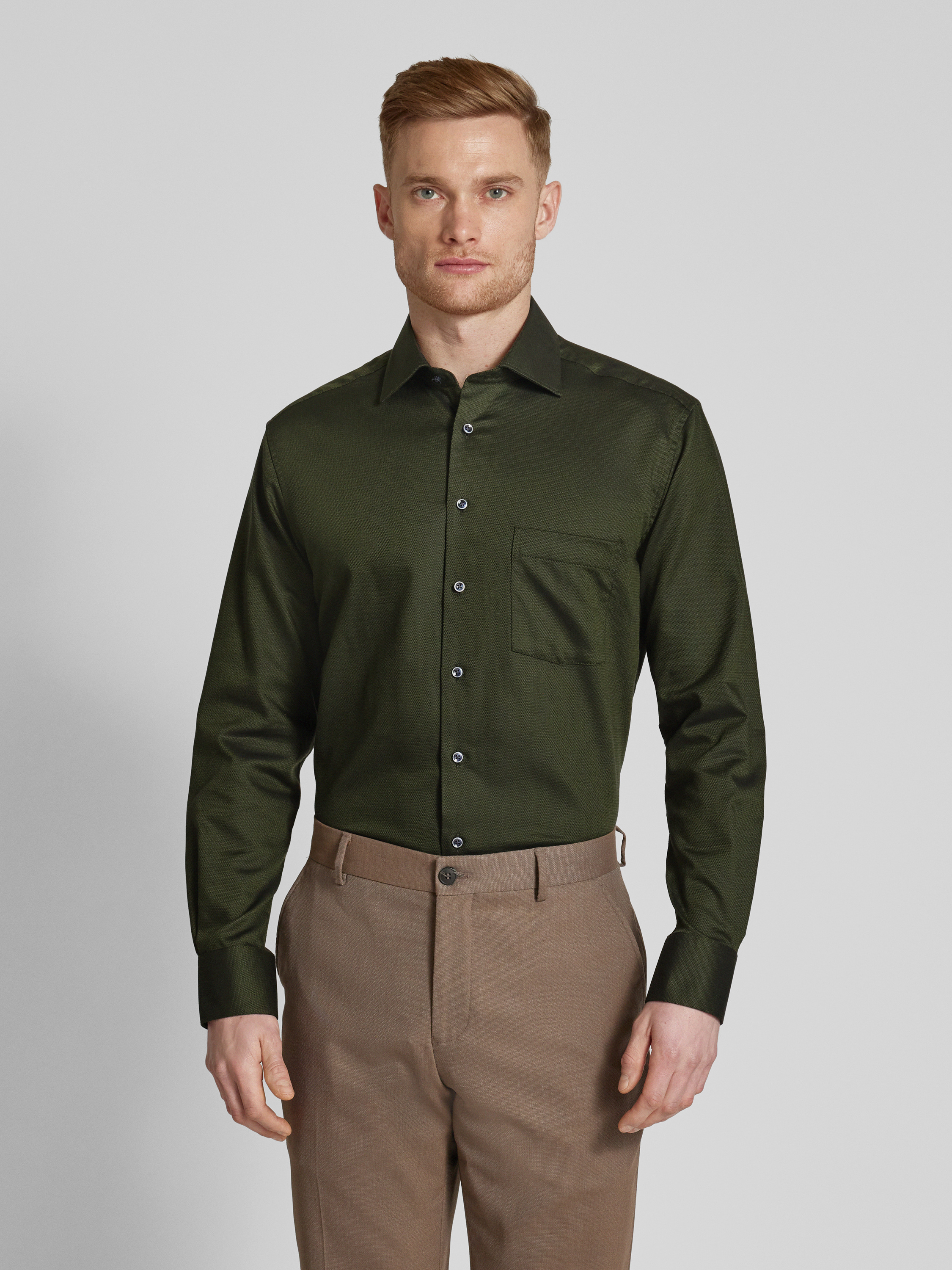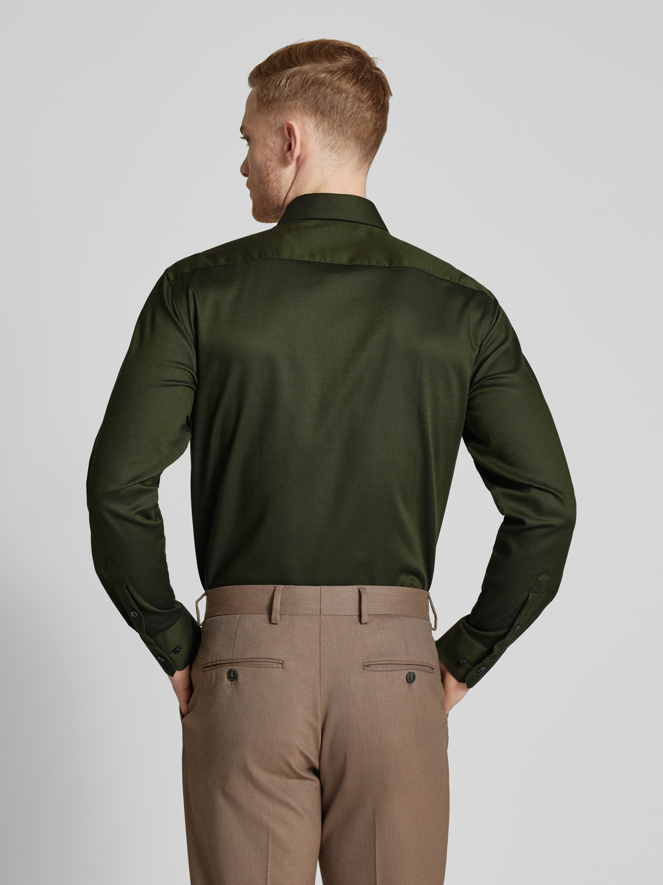 Modern fit zakelijk overhemd met kentkraag in donkergroen gemêleerd