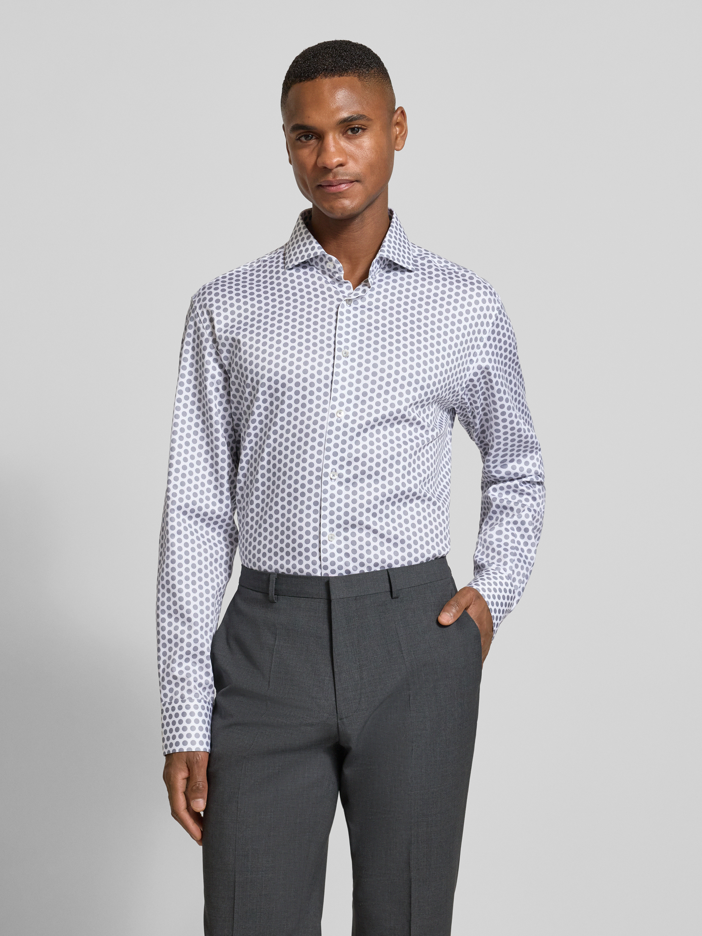 ETERNAModern fit zakelijk overhemd van katoen met kentkraag in lichtgrijs
