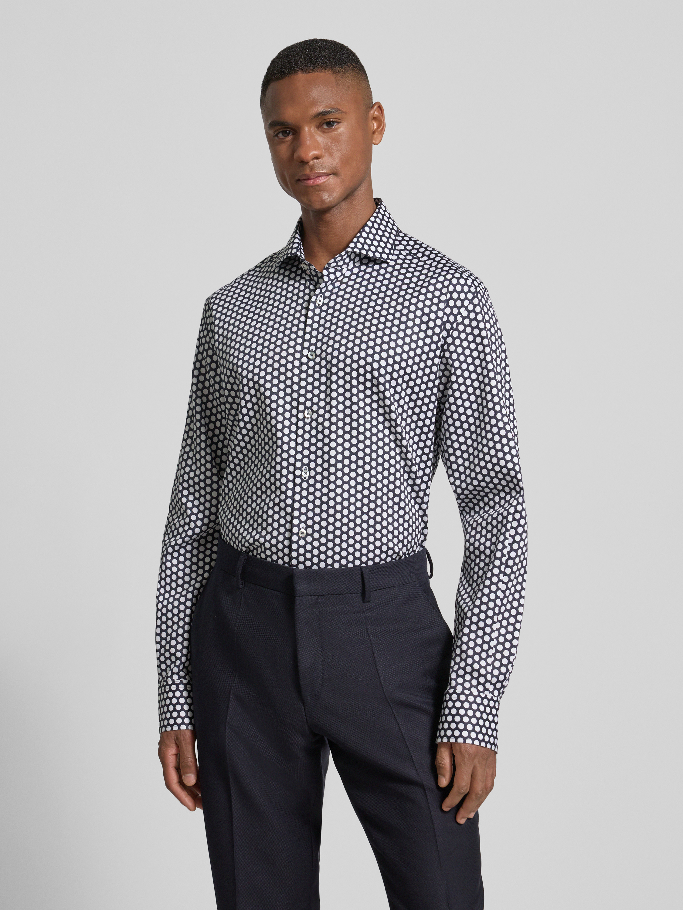 ETERNAModern fit zakelijk overhemd van katoen met kentkraag in marineblauw