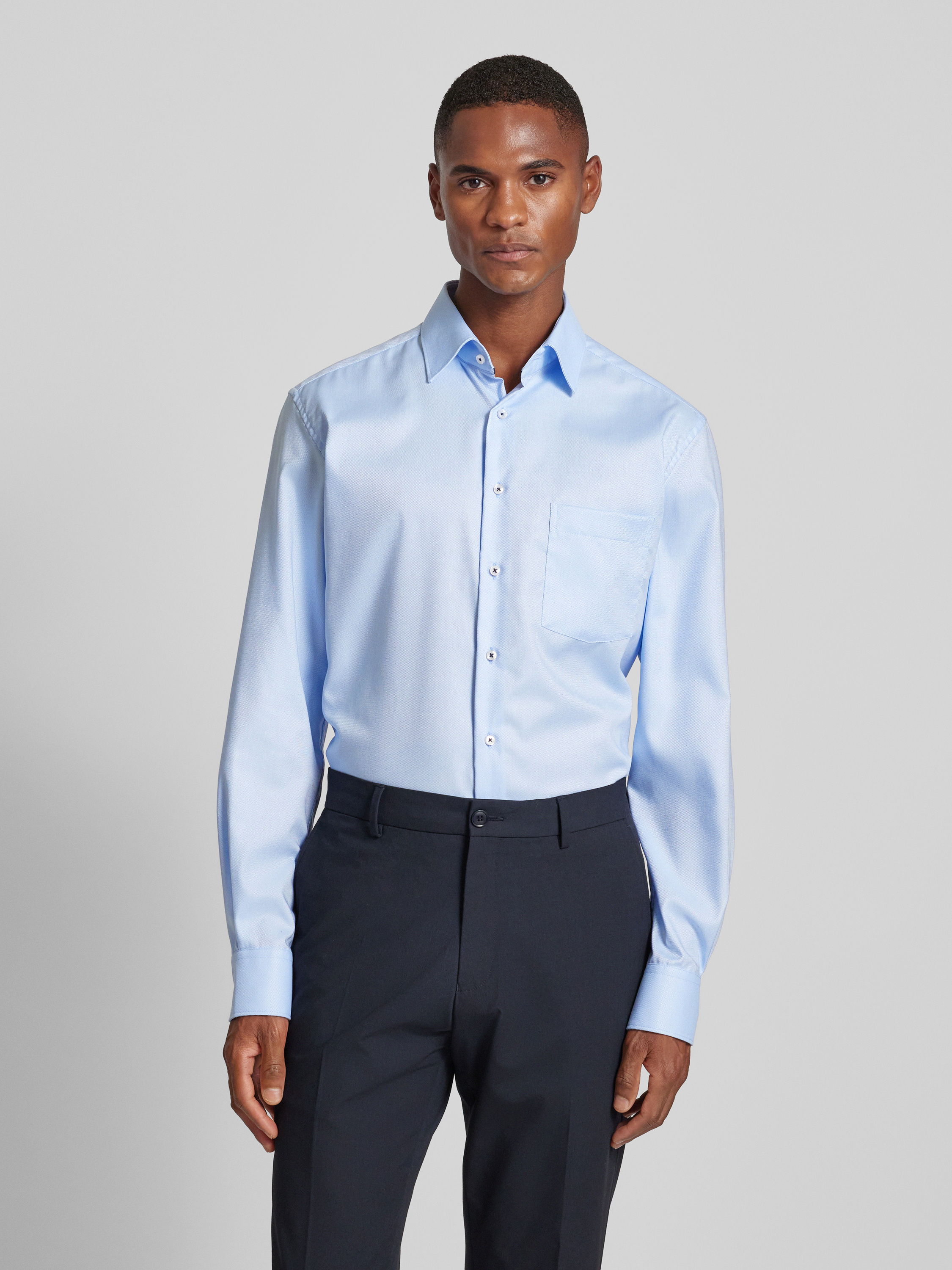 ETERNARegular fit zakelijk overhemd met effen structuur in bleu
