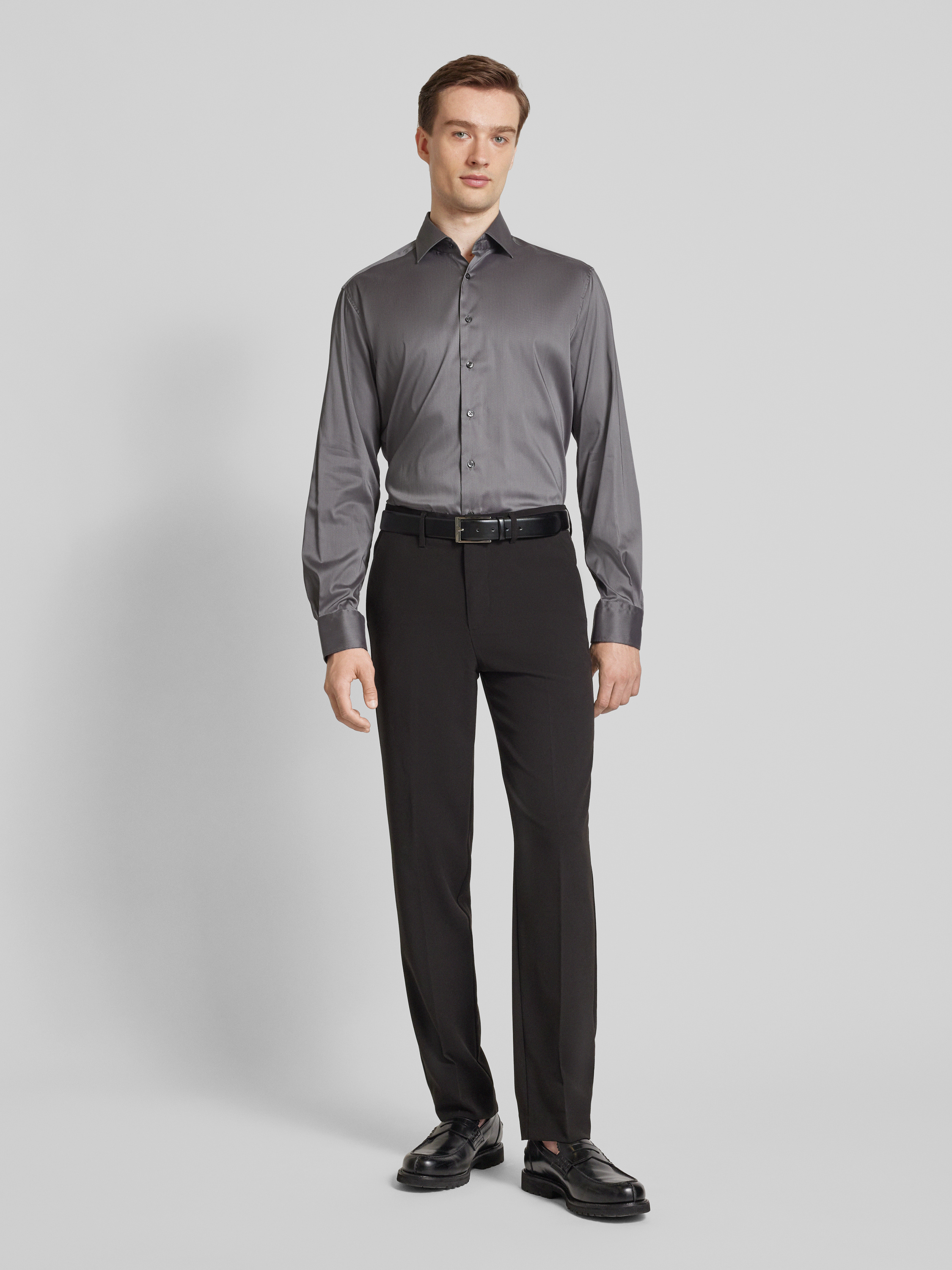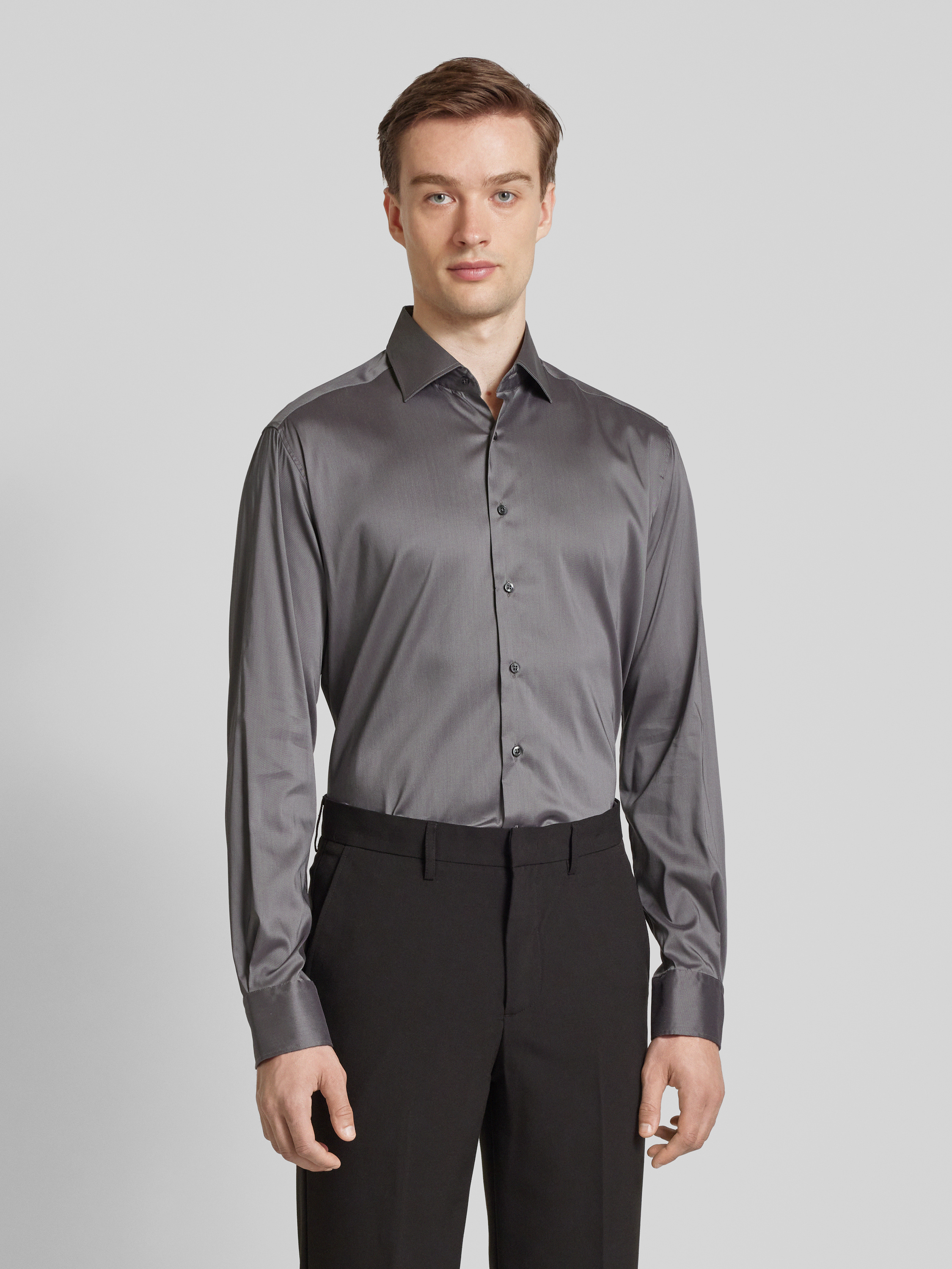 ETERNARegular fit zakelijk overhemd met knoopsluiting in middengrijs