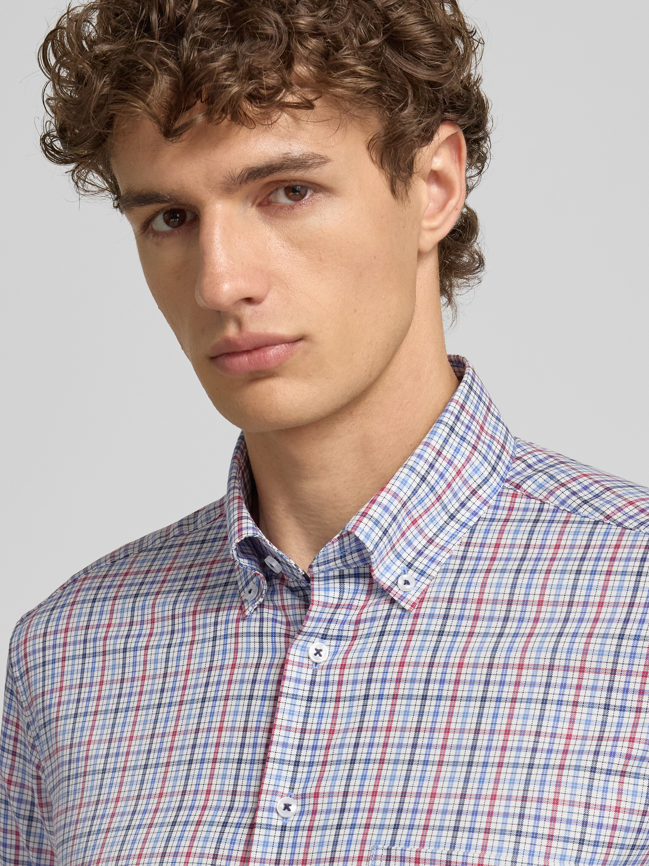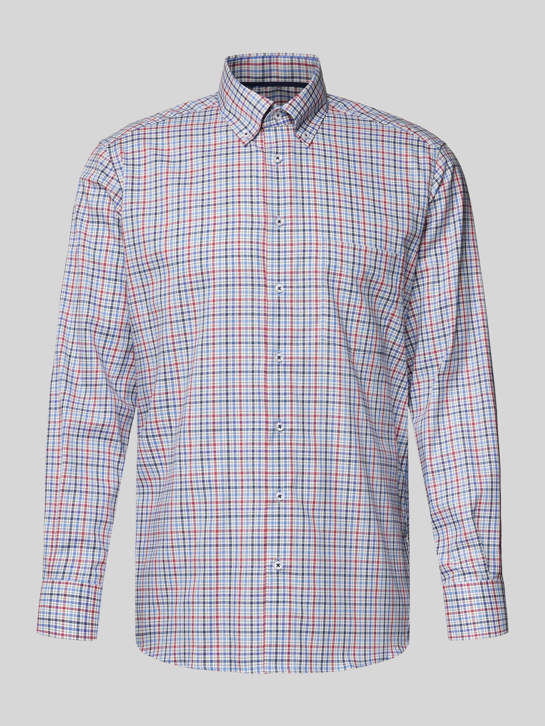 ETERNARegular fit zakelijk overhemd van katoen met button-downkraag in rood