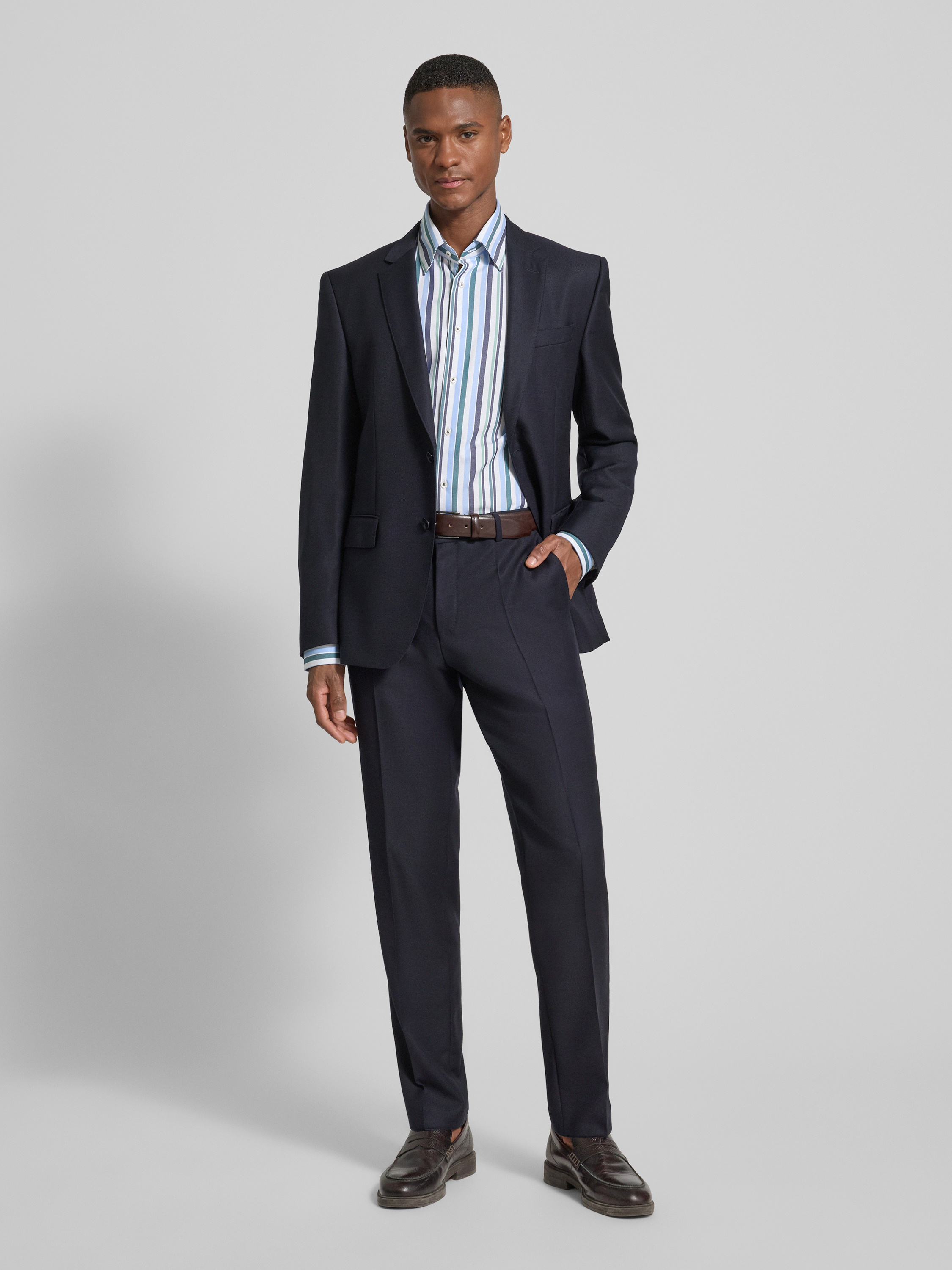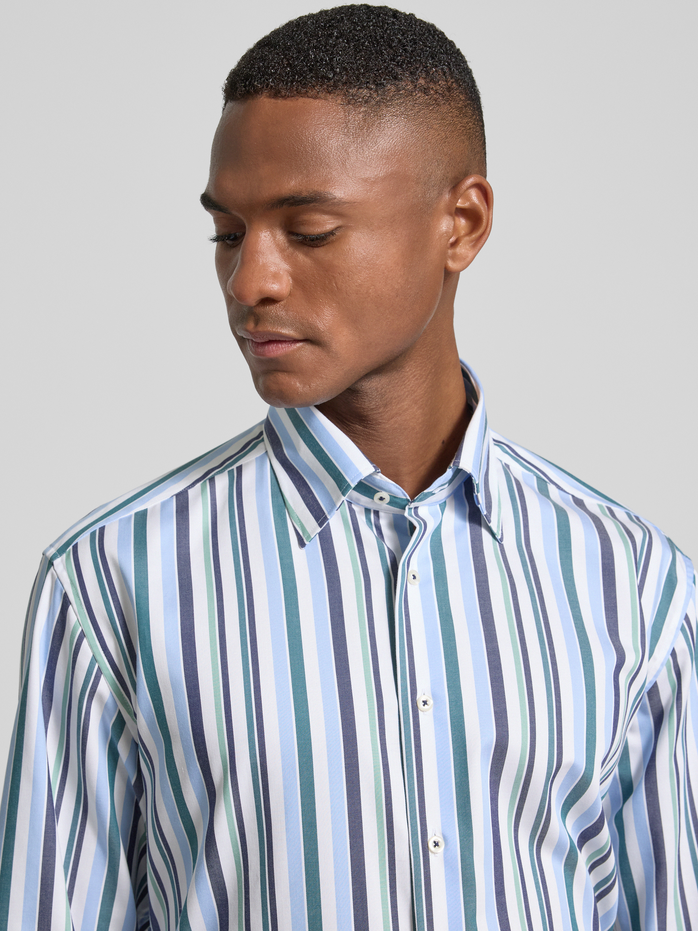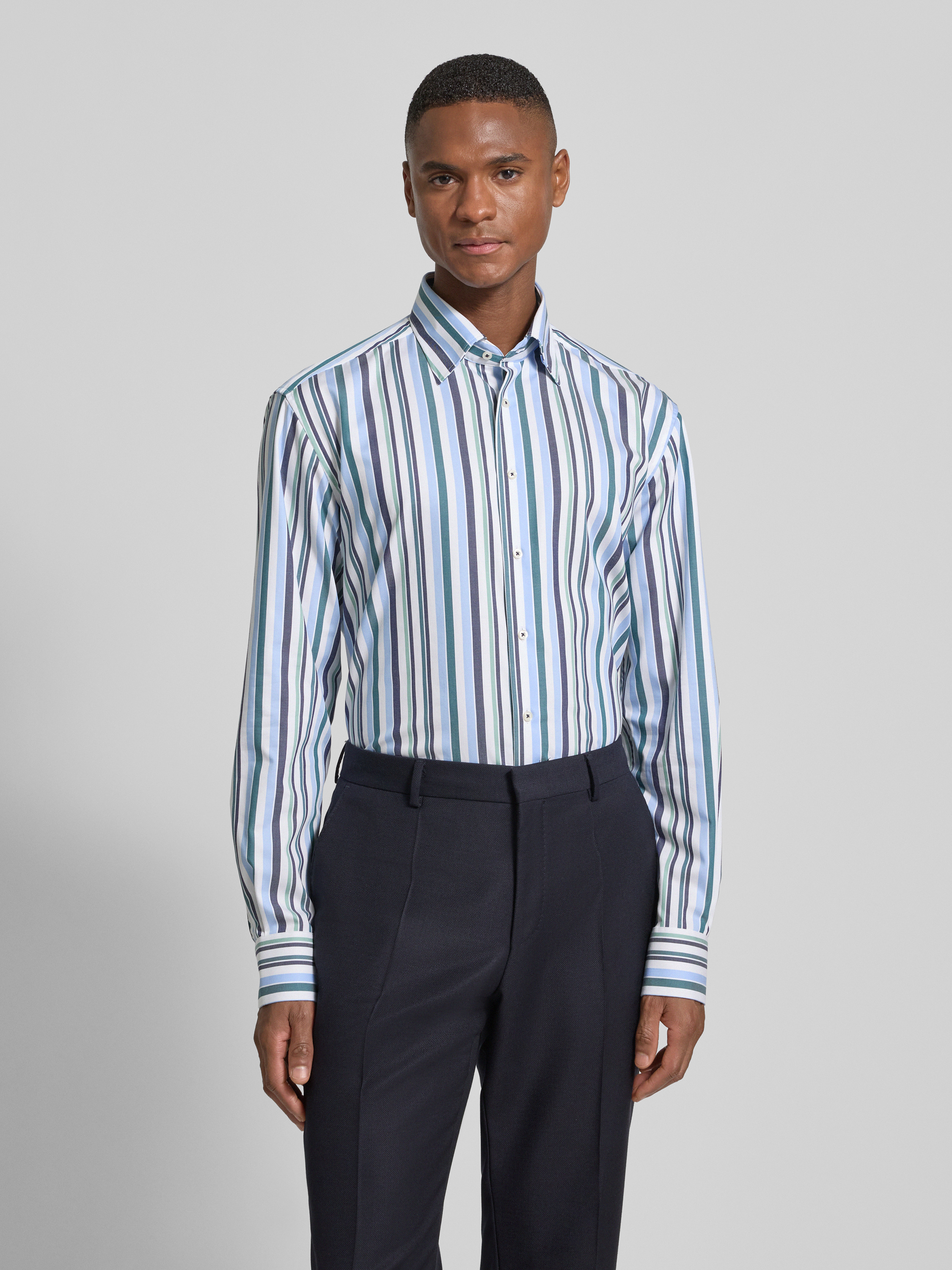 ETERNARegular fit zakelijk overhemd van katoen met kentkraag in groen