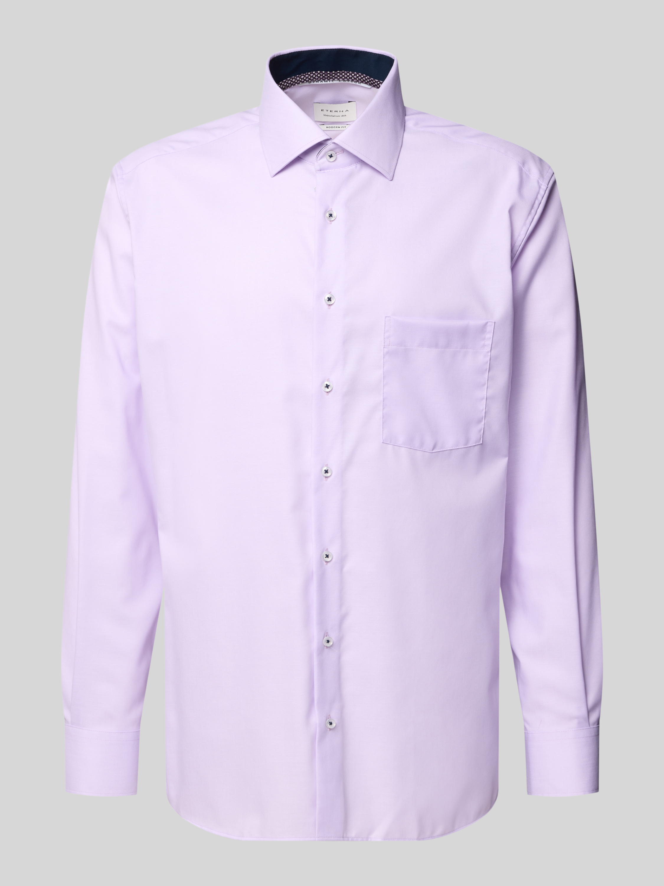 ETERNARegular fit zakelijk overhemd van katoen met kentkraag in lila
