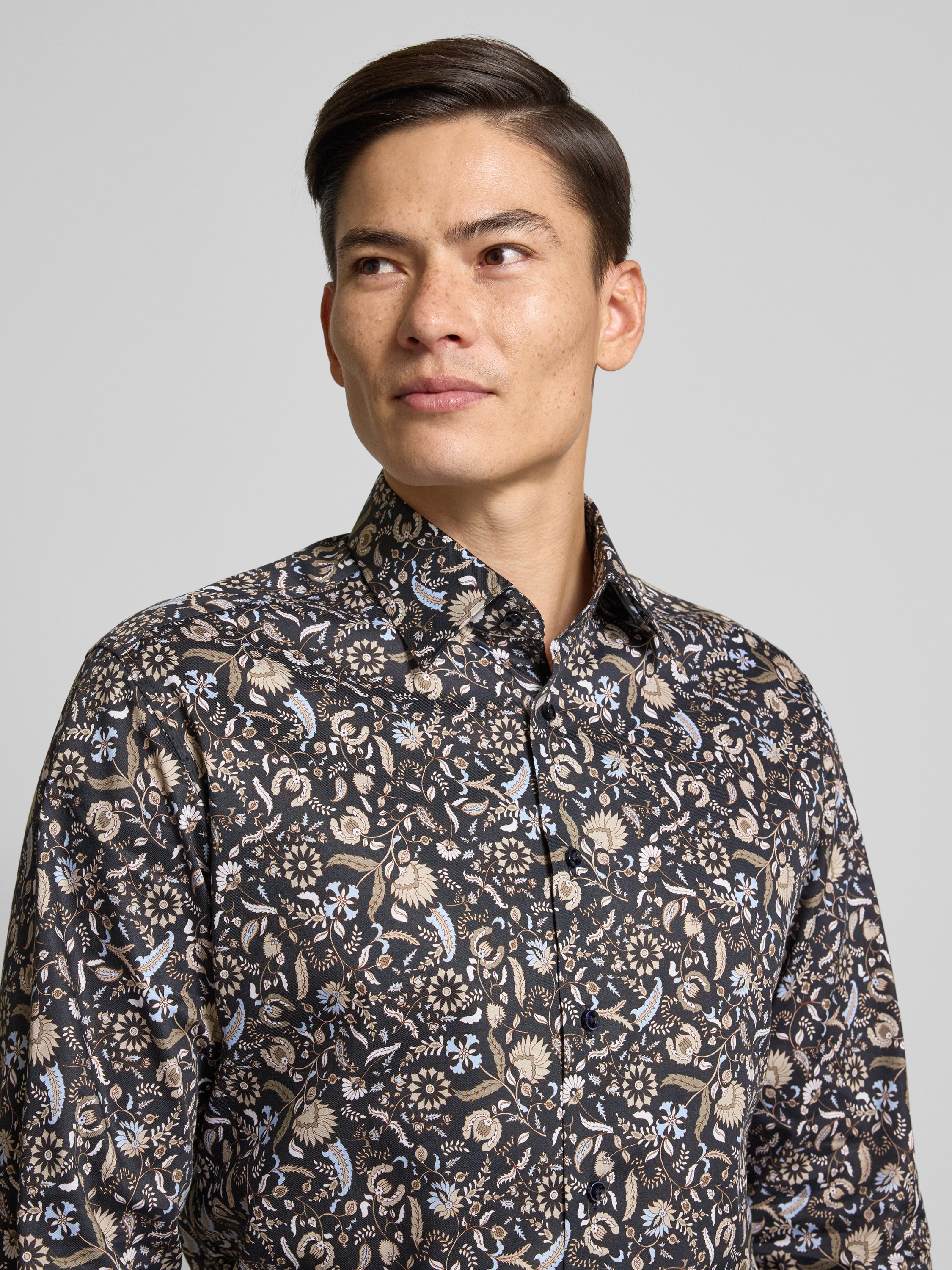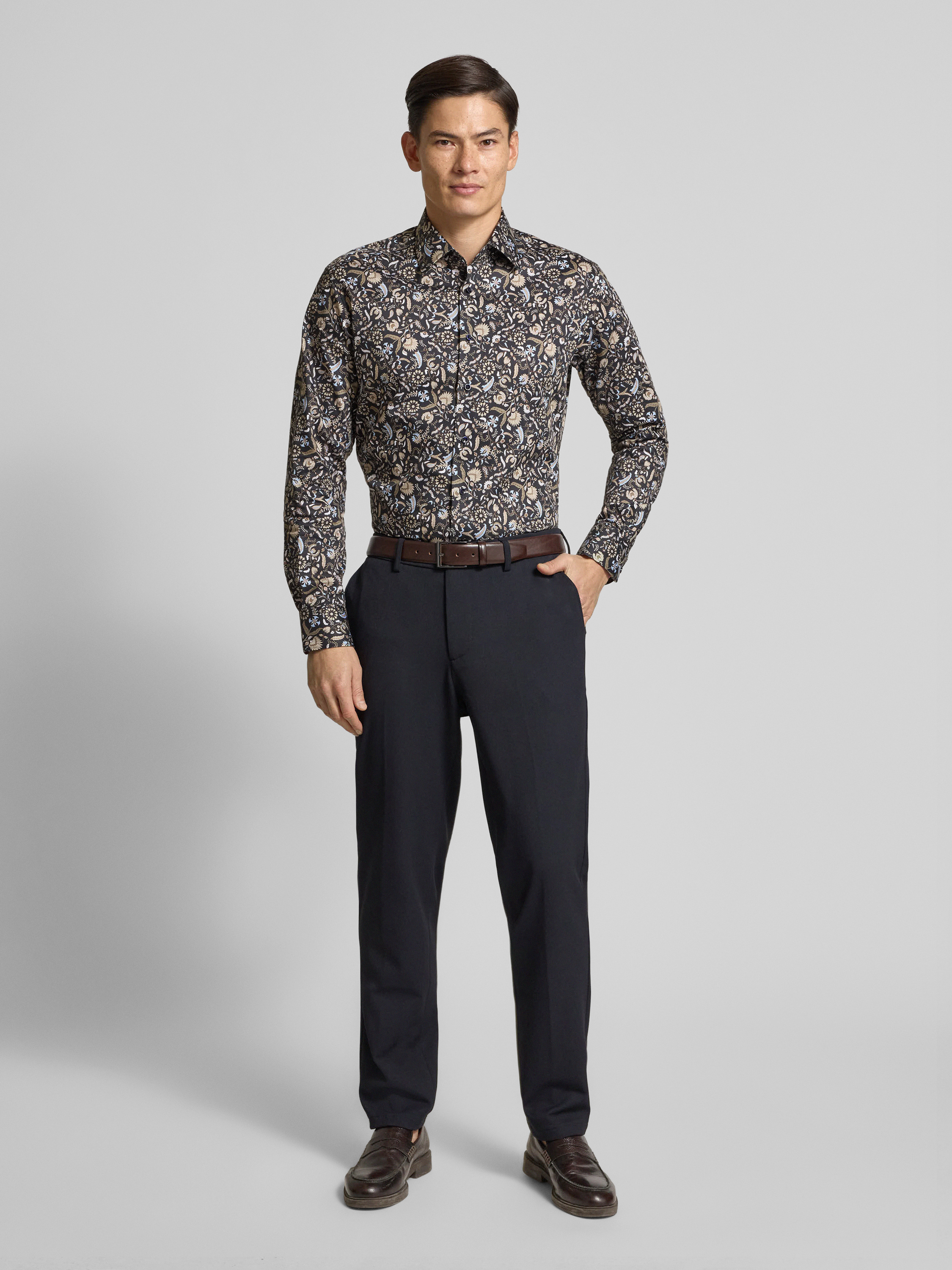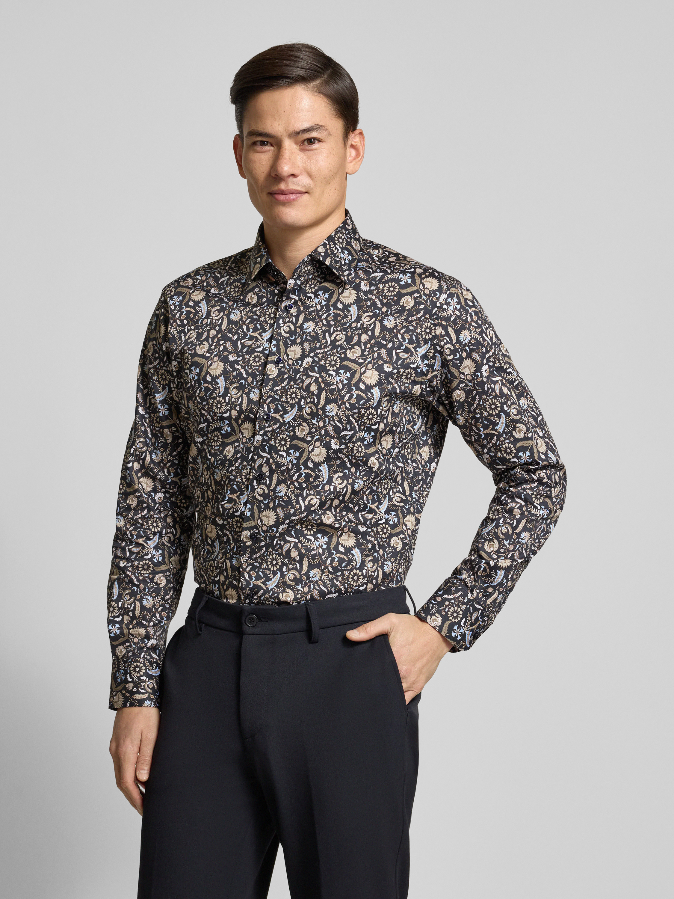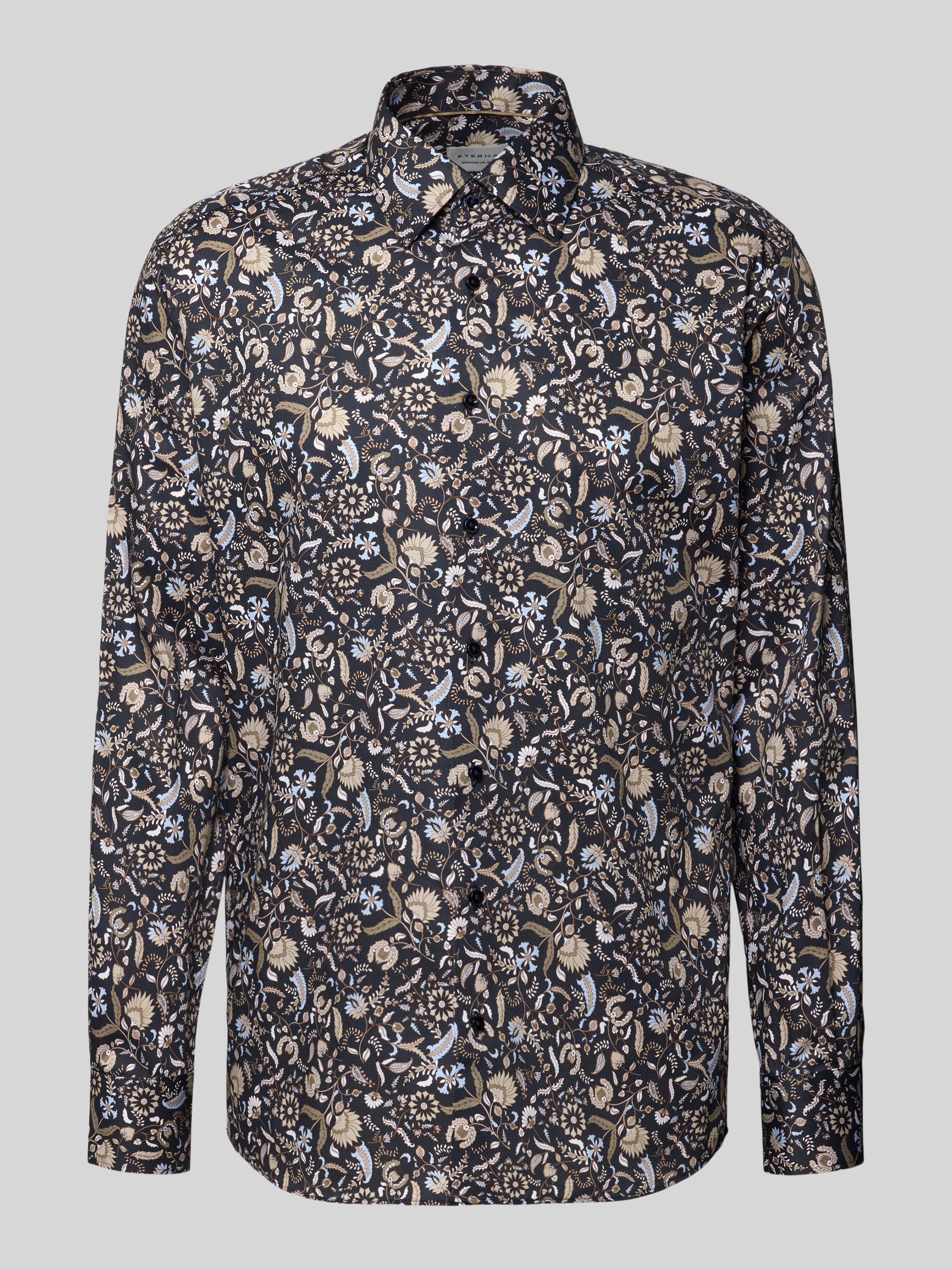 ETERNARegular fit zakelijk overhemd van katoen met kentkraag in marineblauw