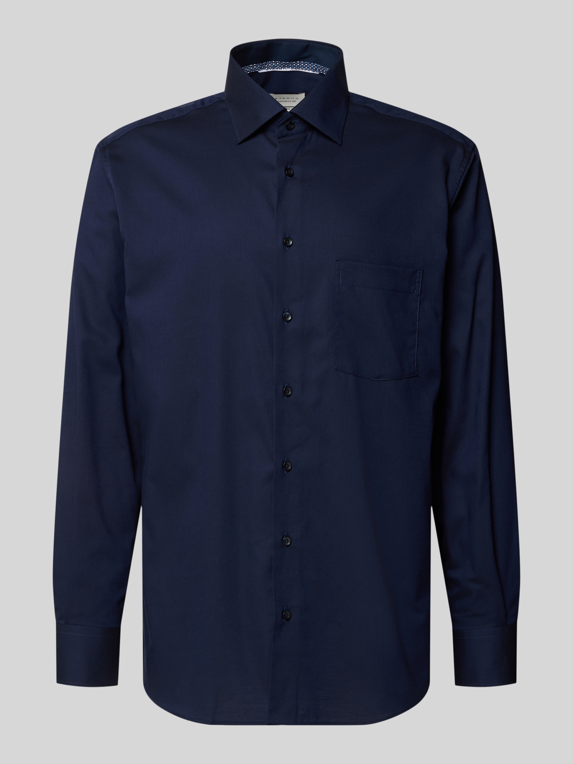 ETERNARegular fit zakelijk overhemd van katoen met kentkraag in marineblauw