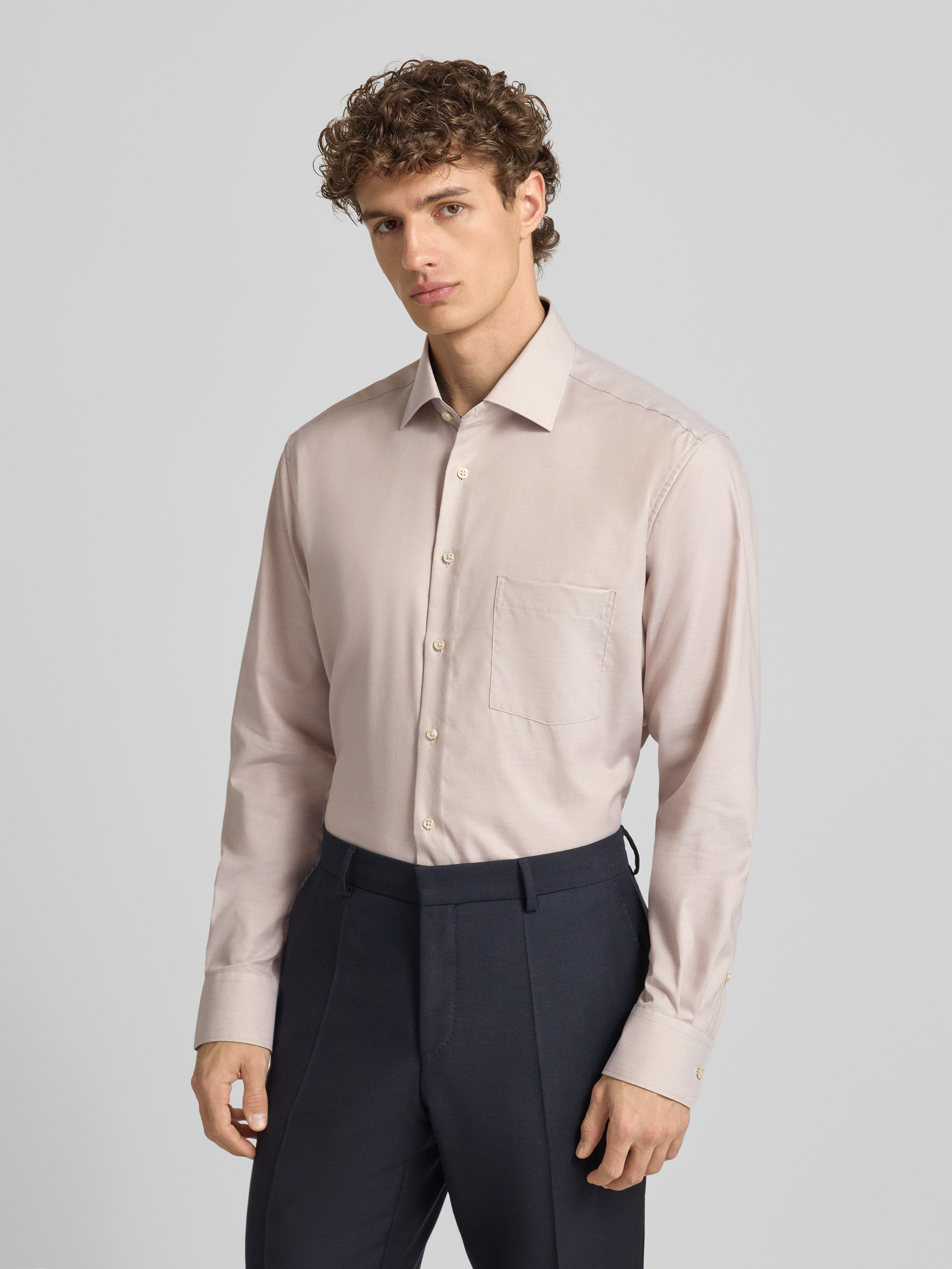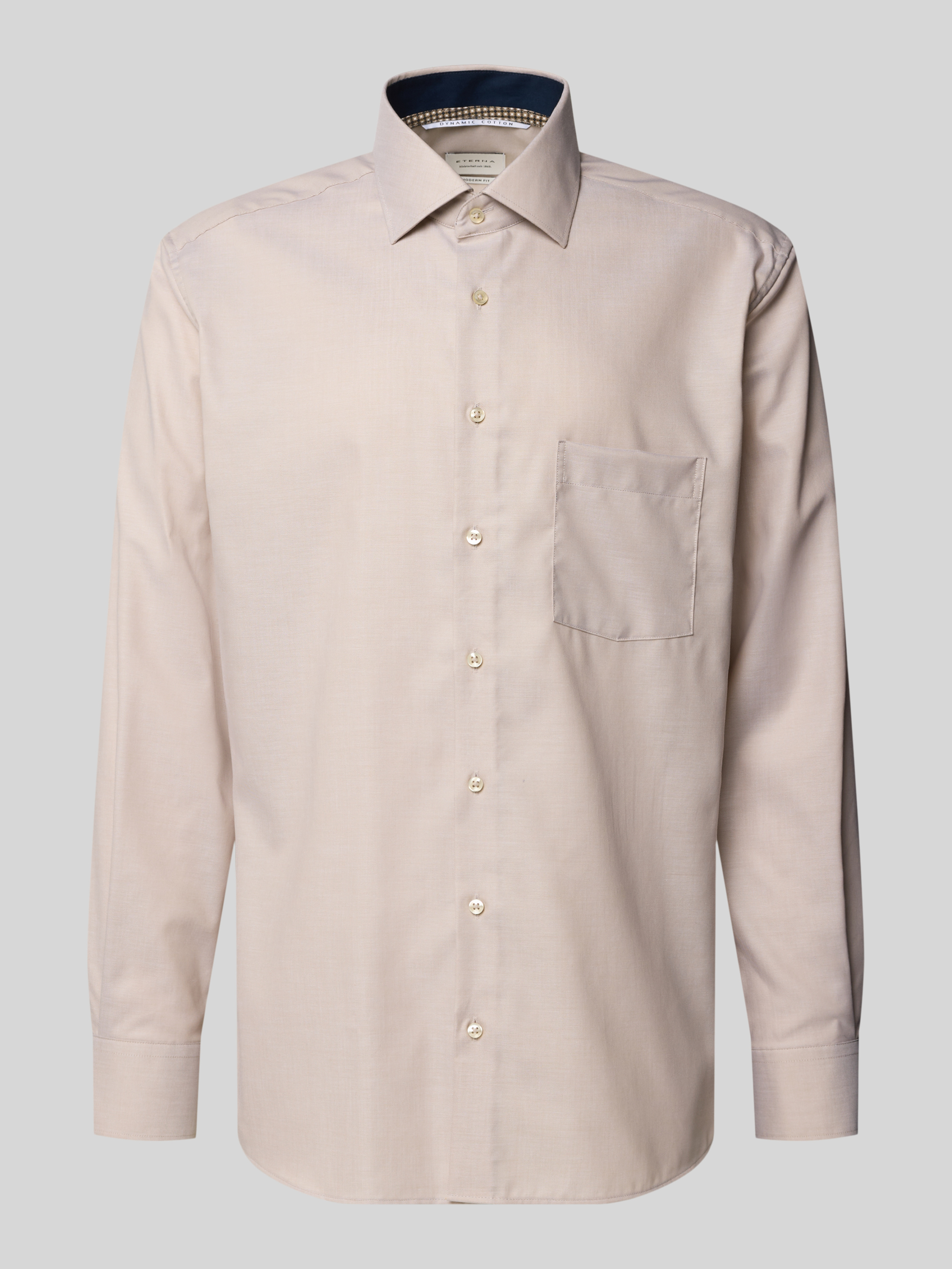 ETERNARegular fit zakelijk overhemd van katoen met kentkraag in zand