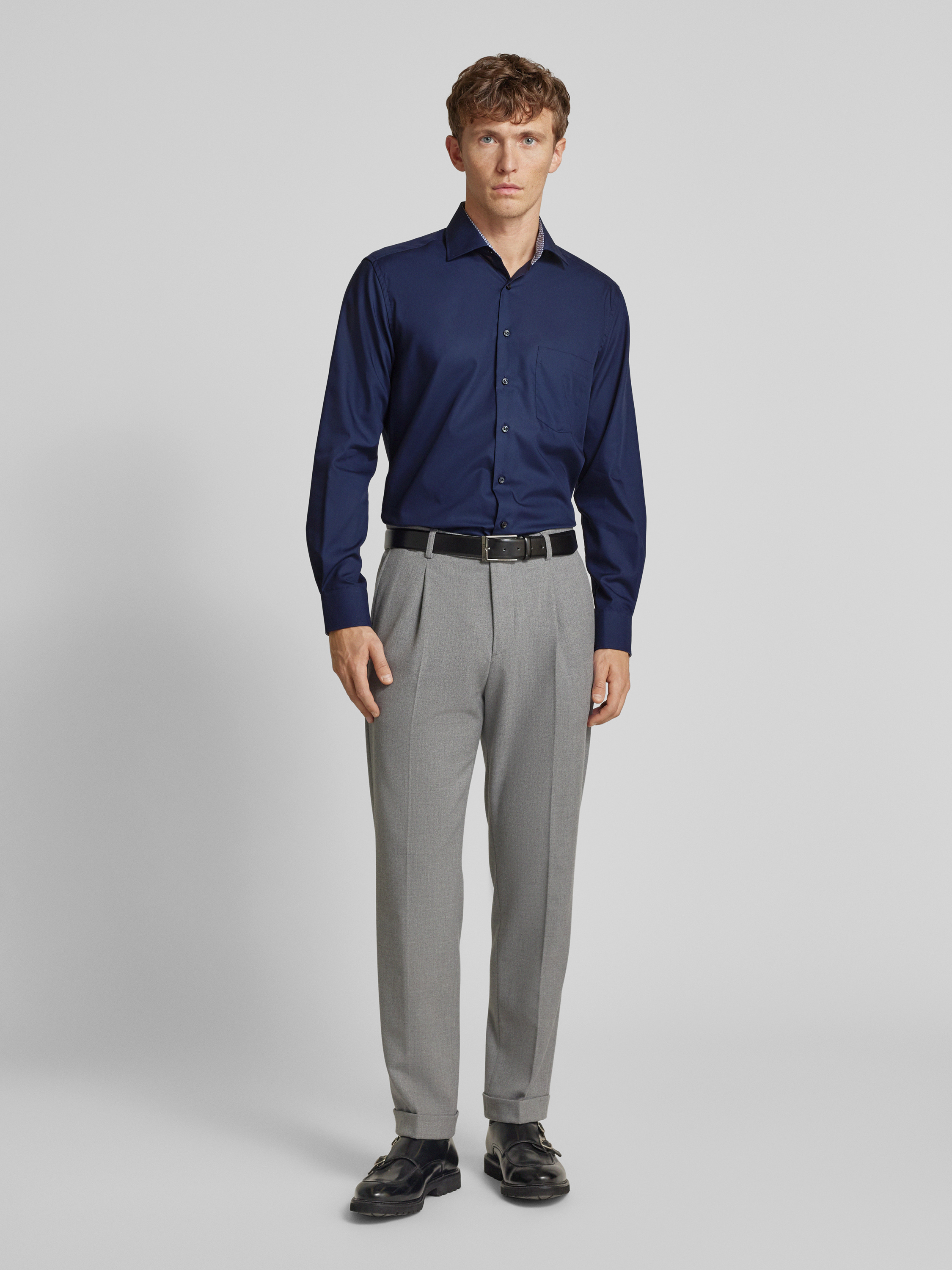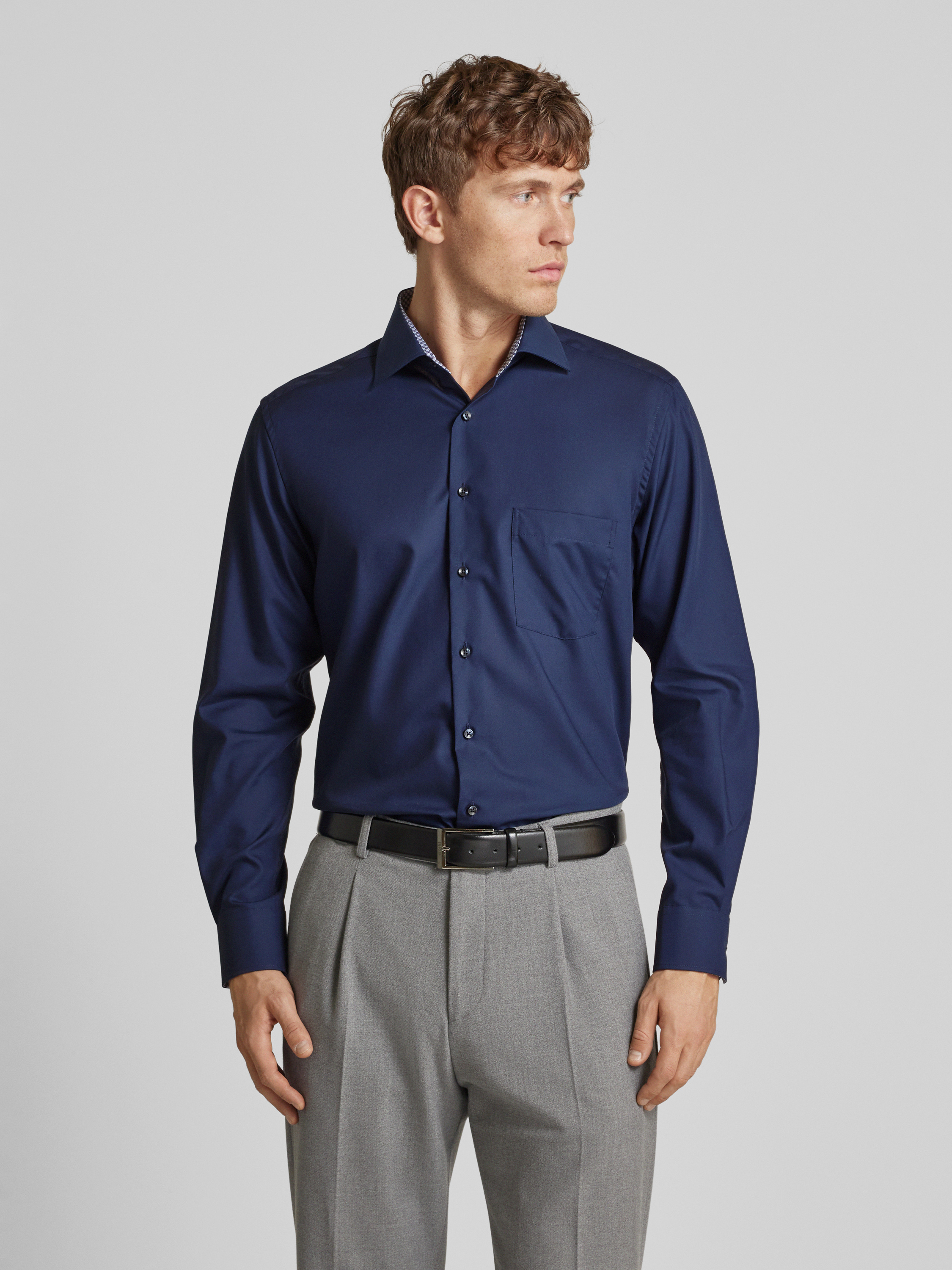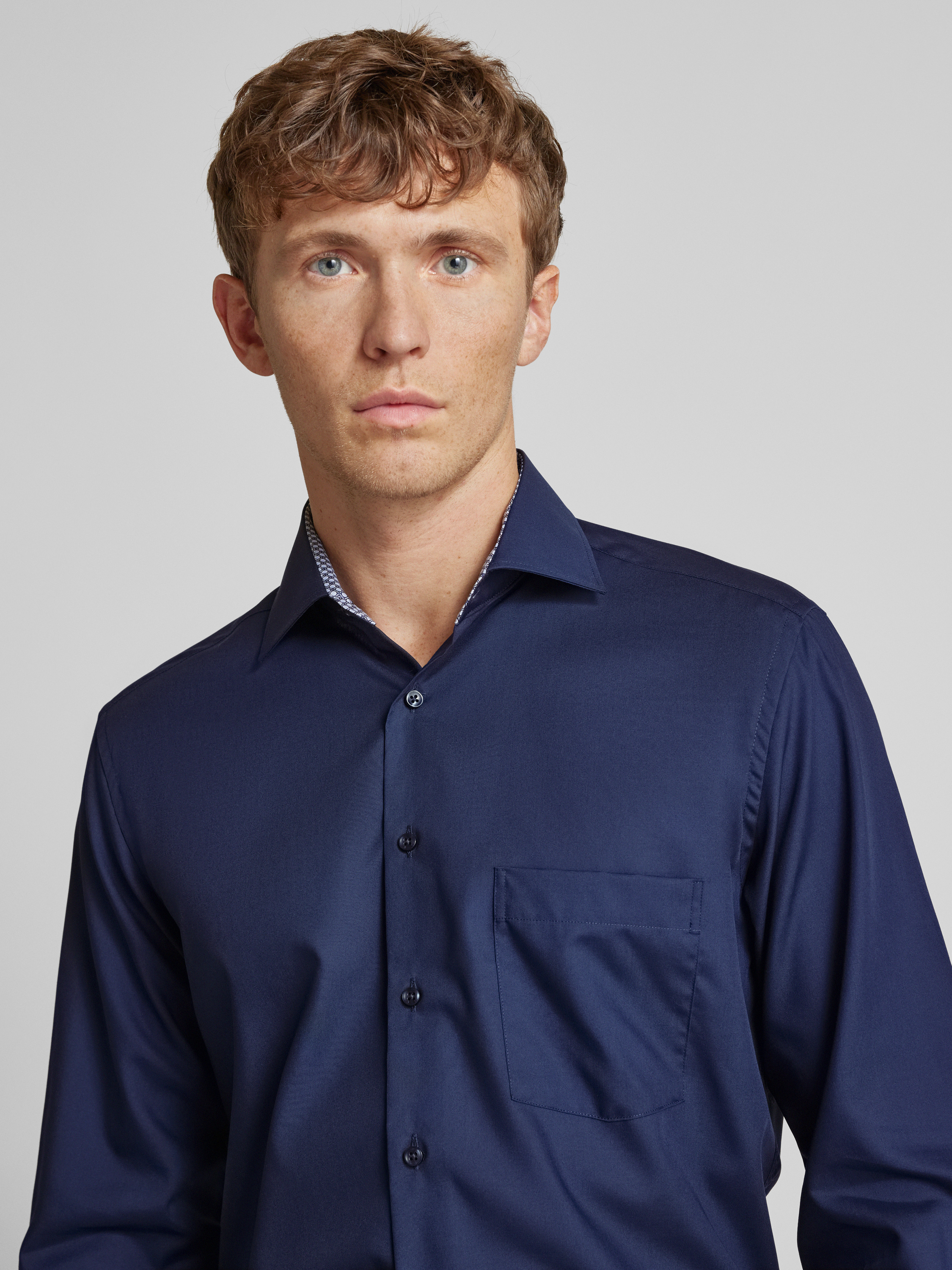 ETERNARegular fit zakelijk overhemd van popeline in marineblauw
