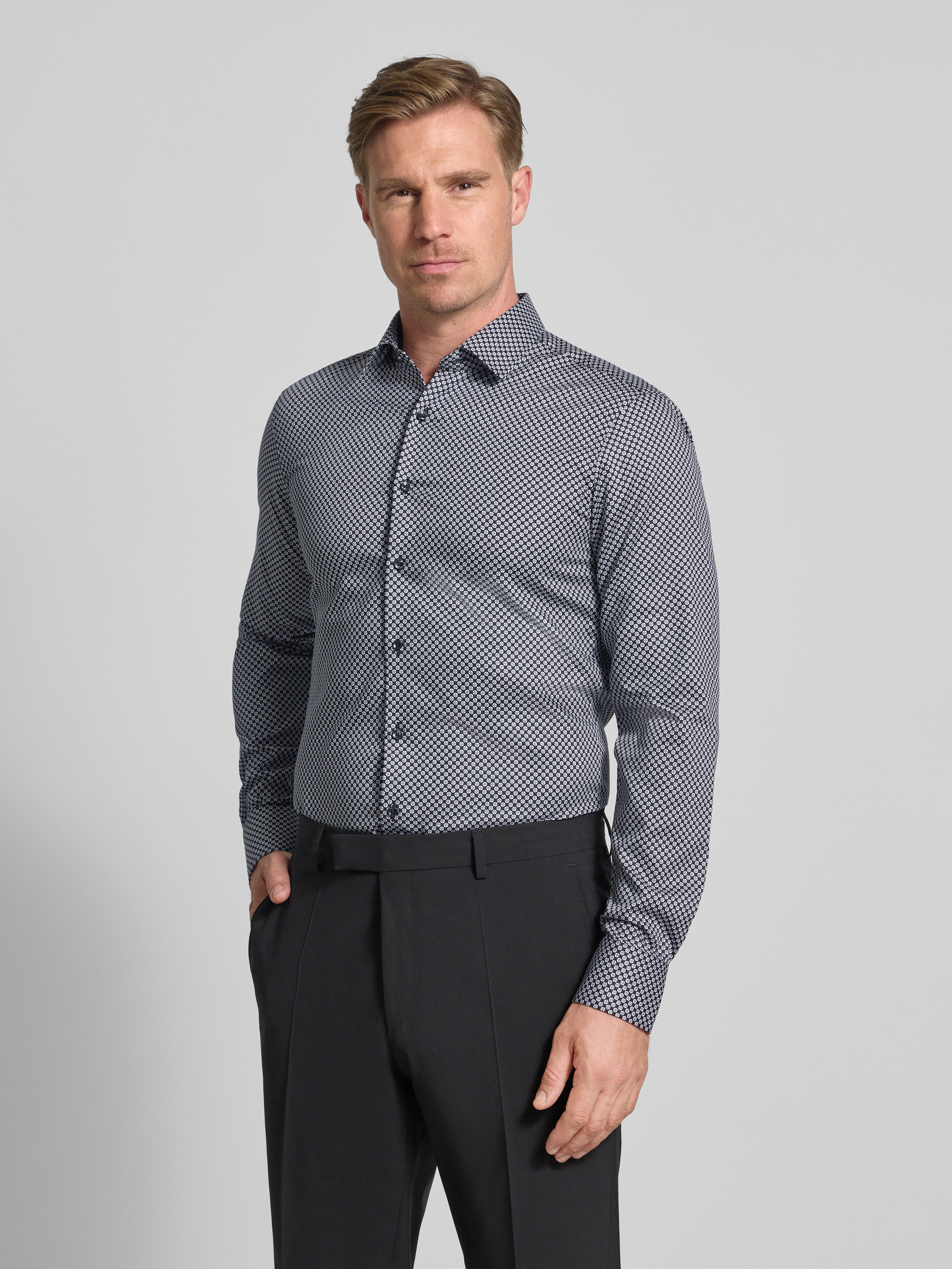 ETERNASlim fit zakelijk overhemd met kentkraag in antraciet
