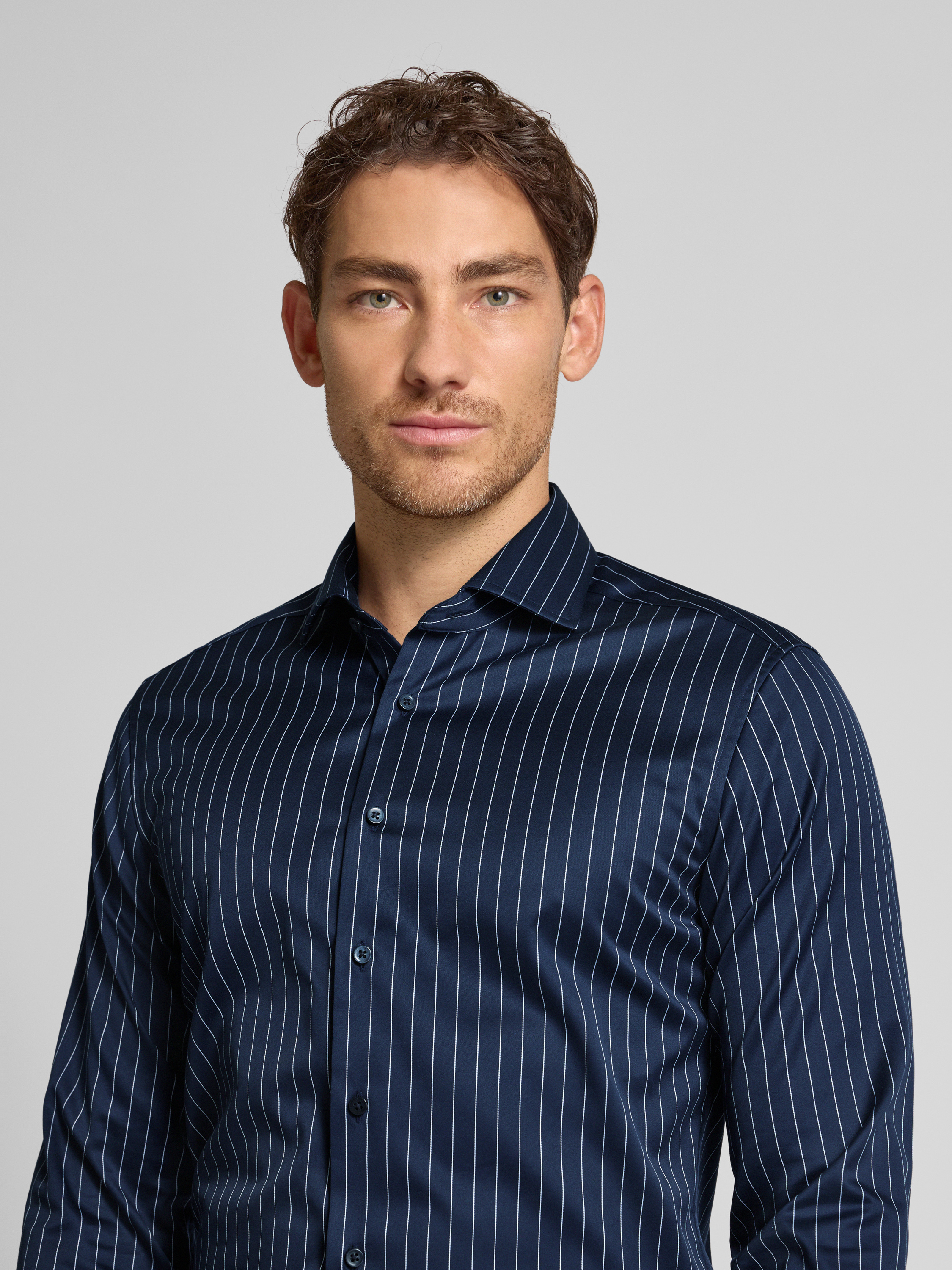 ETERNASlim fit zakelijk overhemd met kentkraag in marineblauw