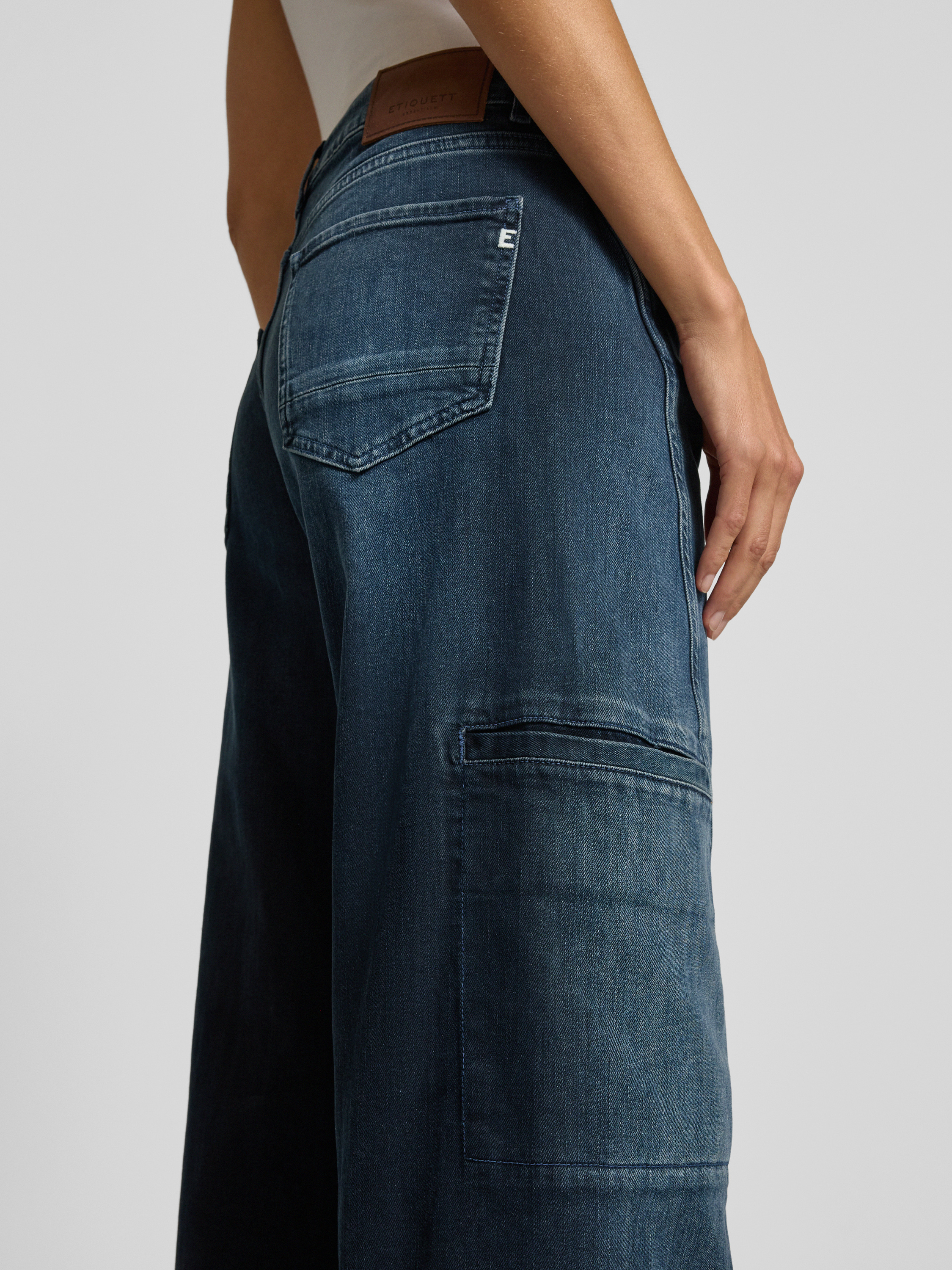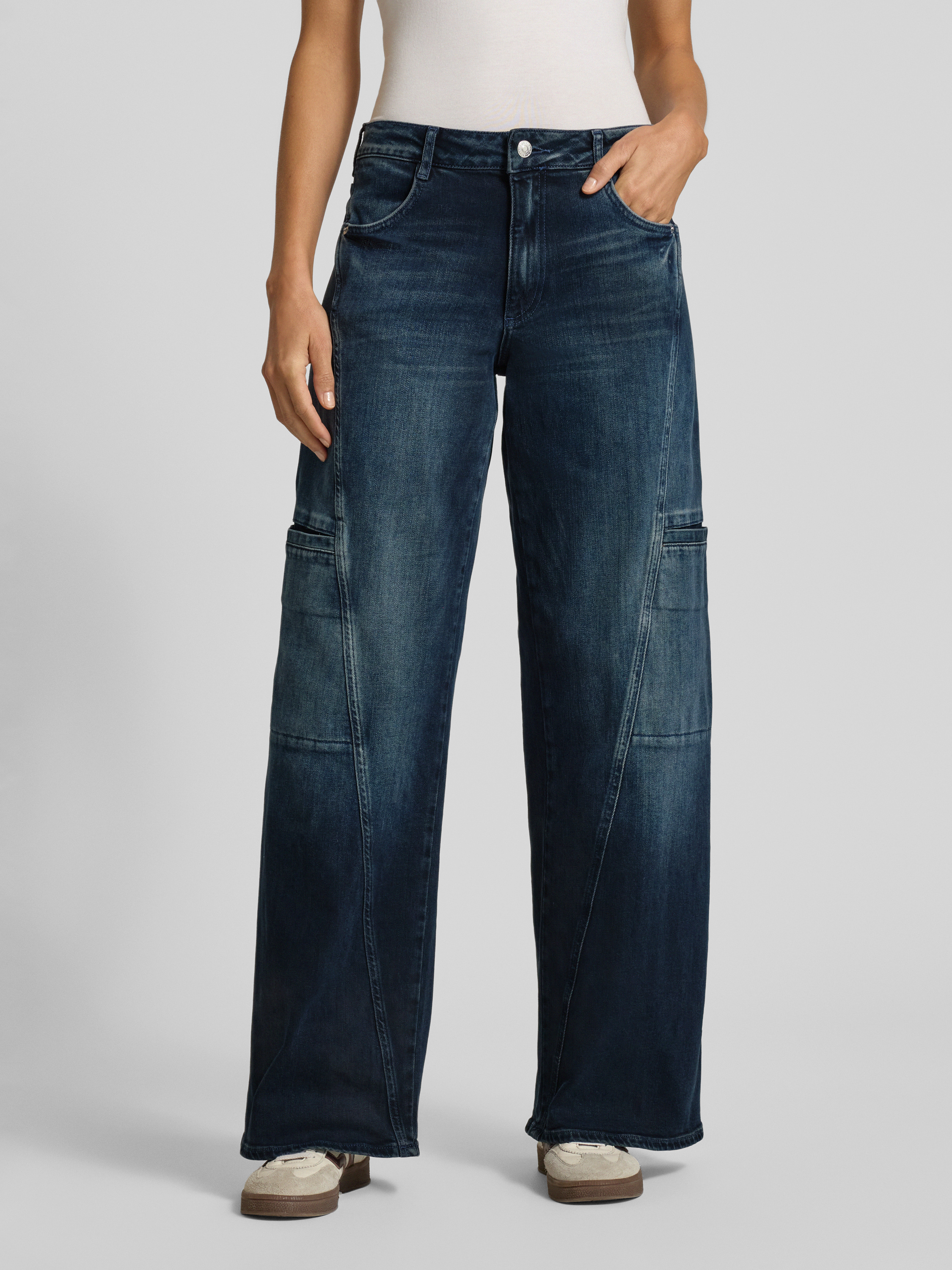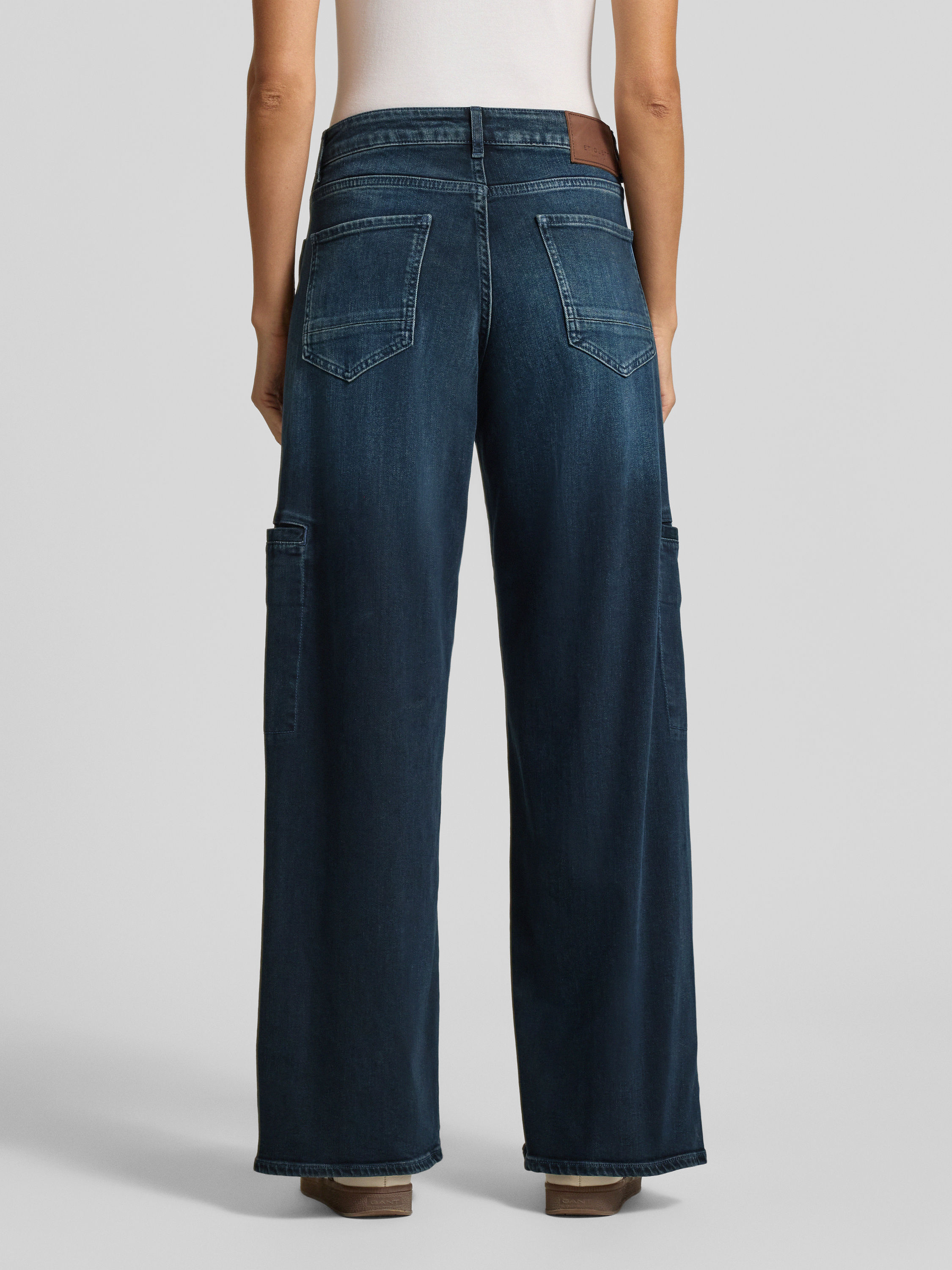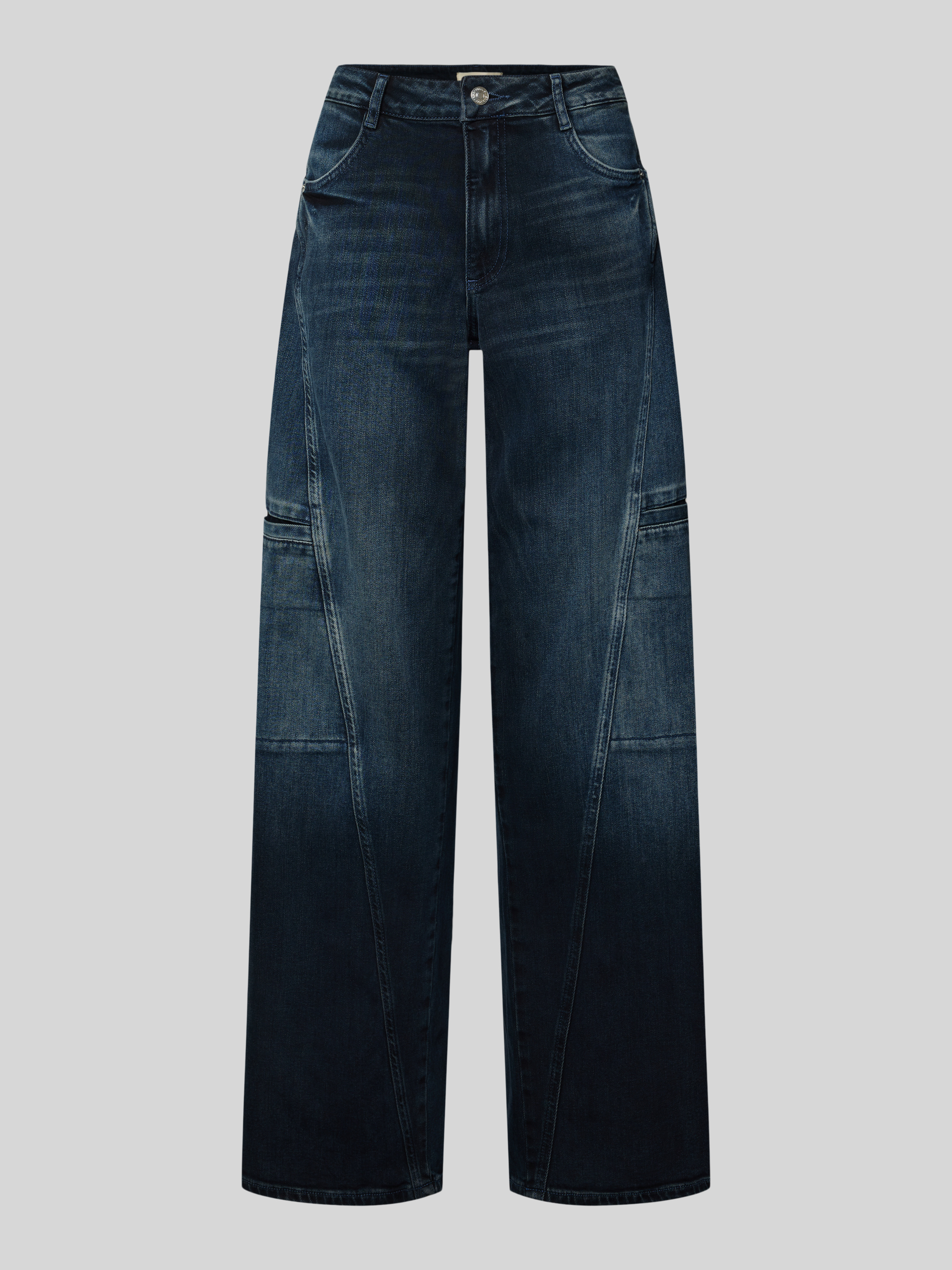 Wide leg jeans met strookzakken, model 'Lola' in donkerblauw