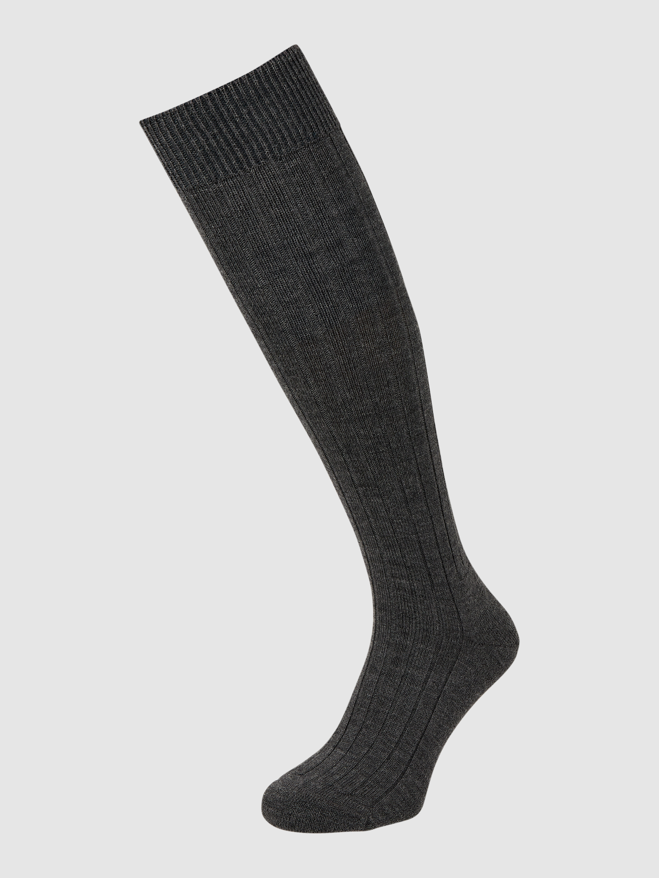 Kniekousen van merinowolmix, model 'Tapijt in de schoen' in donkergrijs