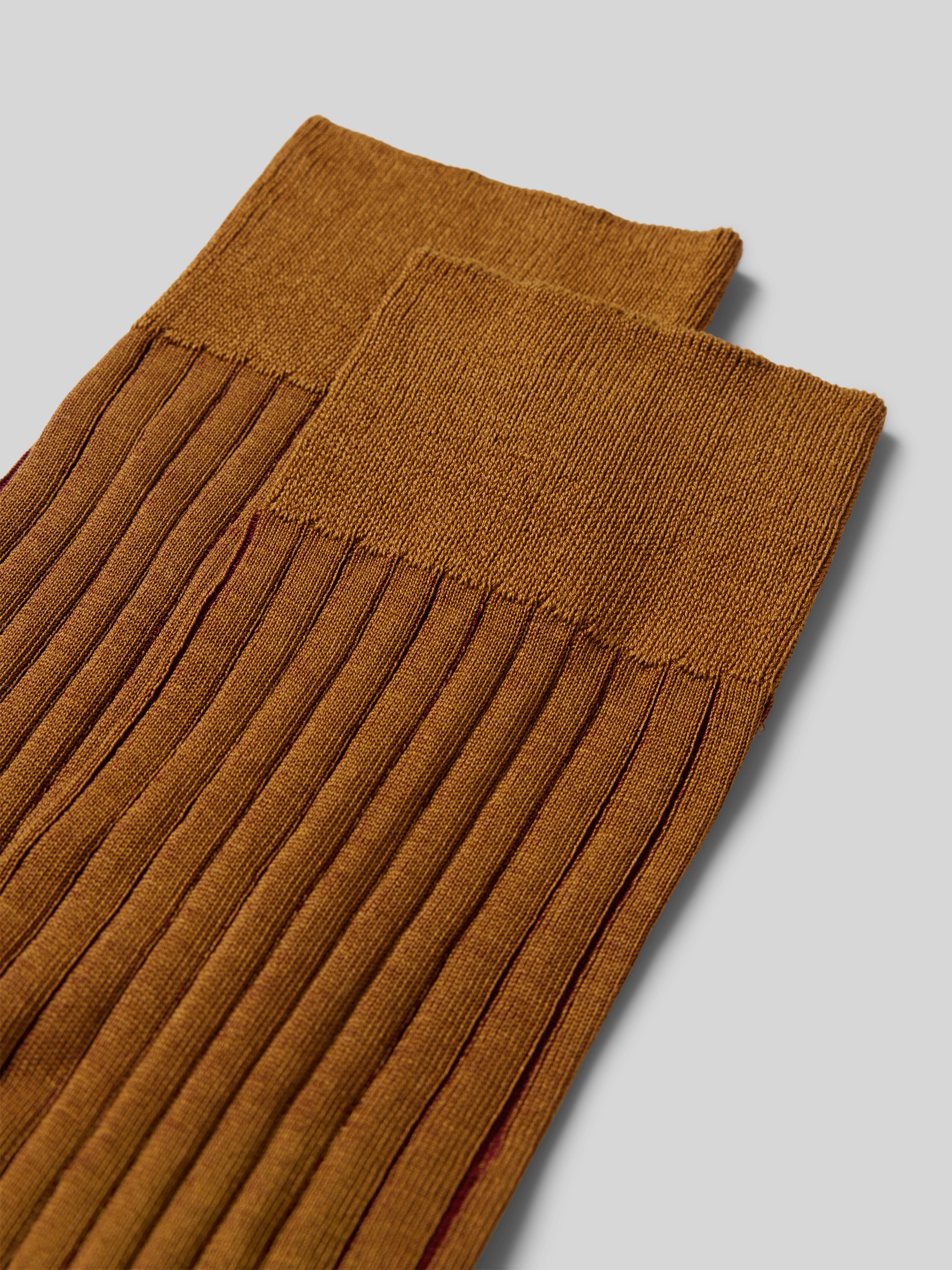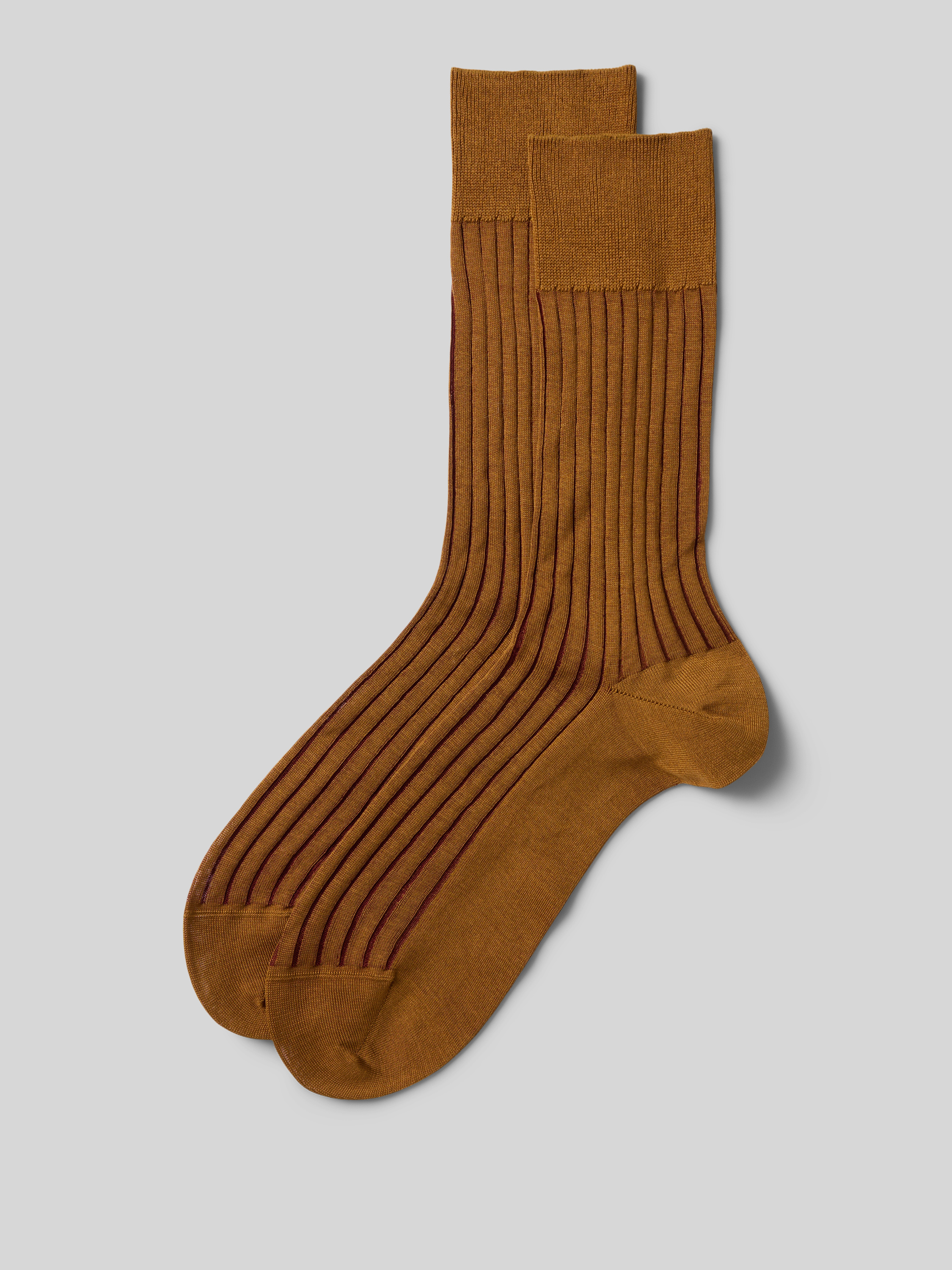 Sokken met labelprint, model 'SHADOW' in mosterdgeel