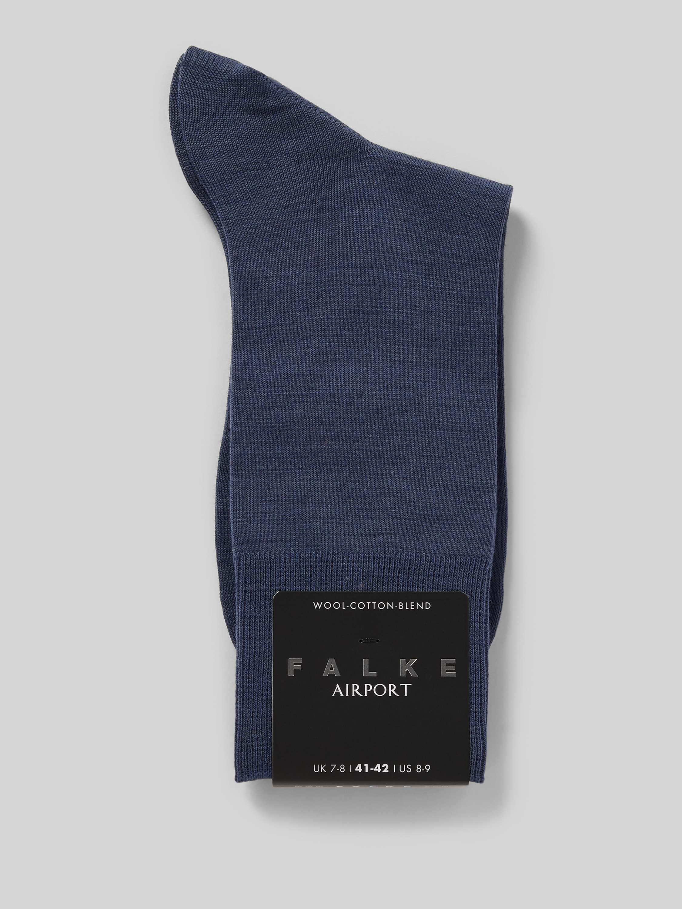 Sokken van scheerwolmix met logoprint, model 'Airport' in rookblauw