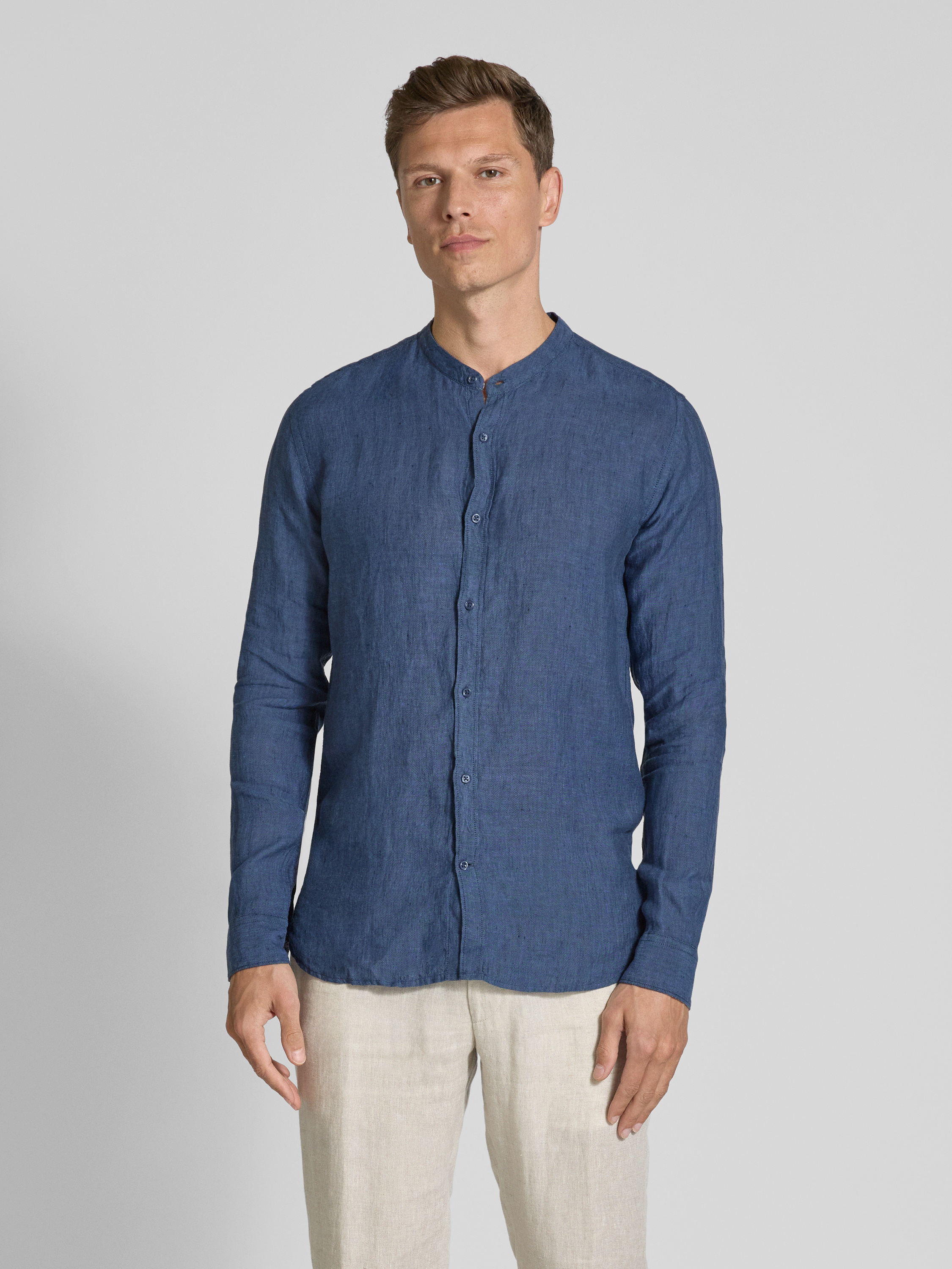 FIL NOIRRegular fit zakelijk overhemd met opstaande kraag, model 'ANCONA' in marineblauw