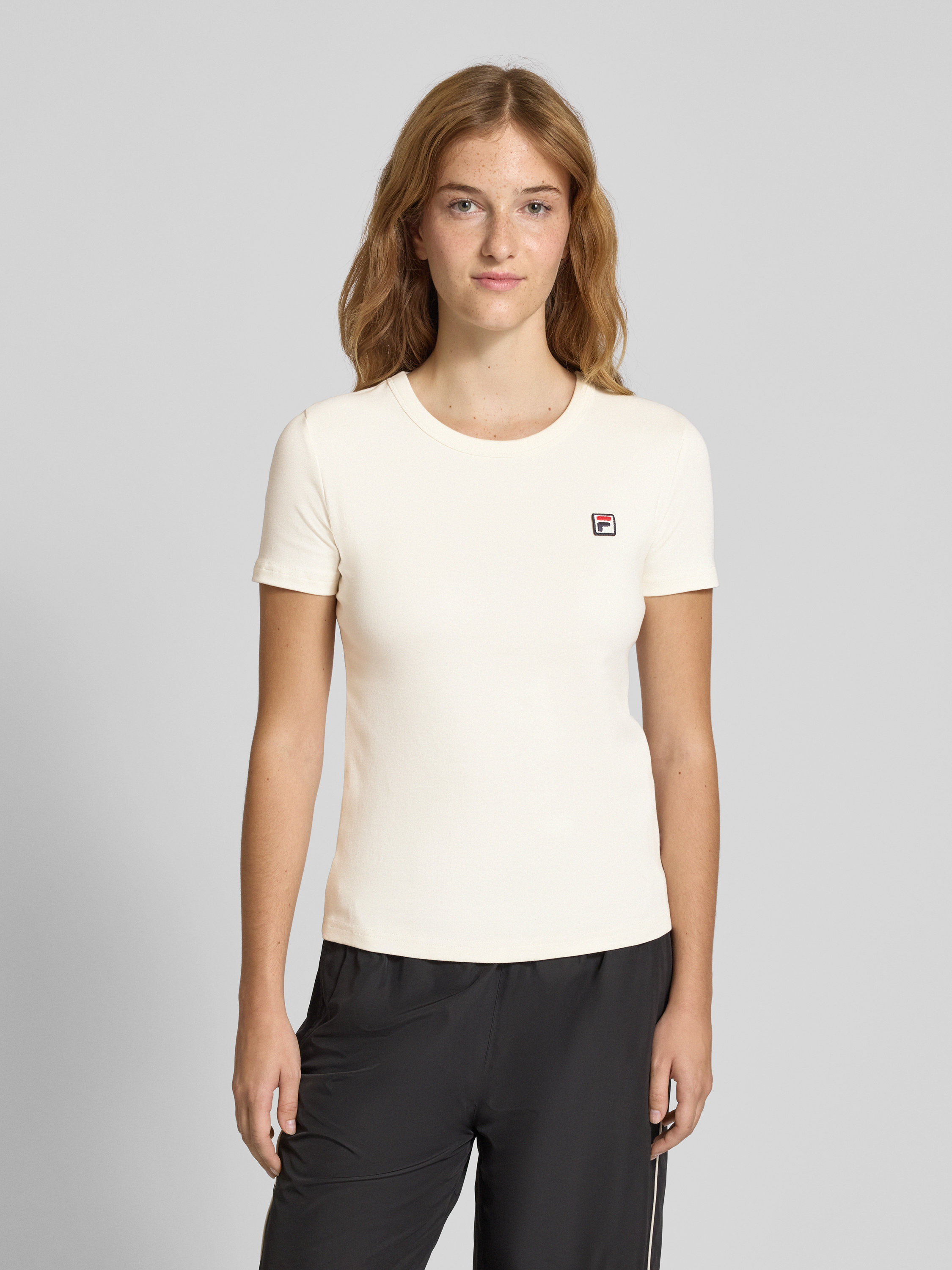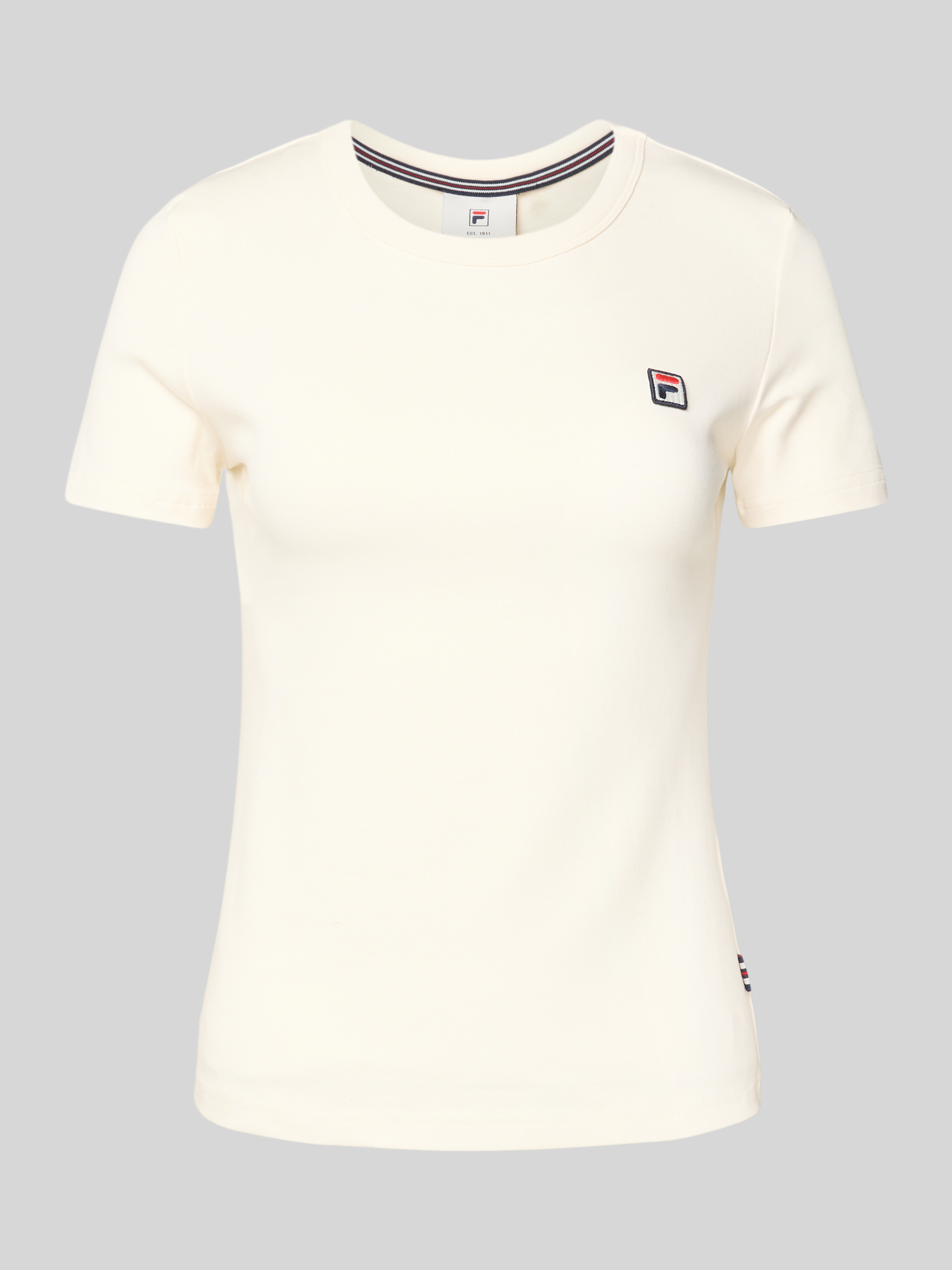 T-shirt met labelstitching, model 'BIELLA' in zand