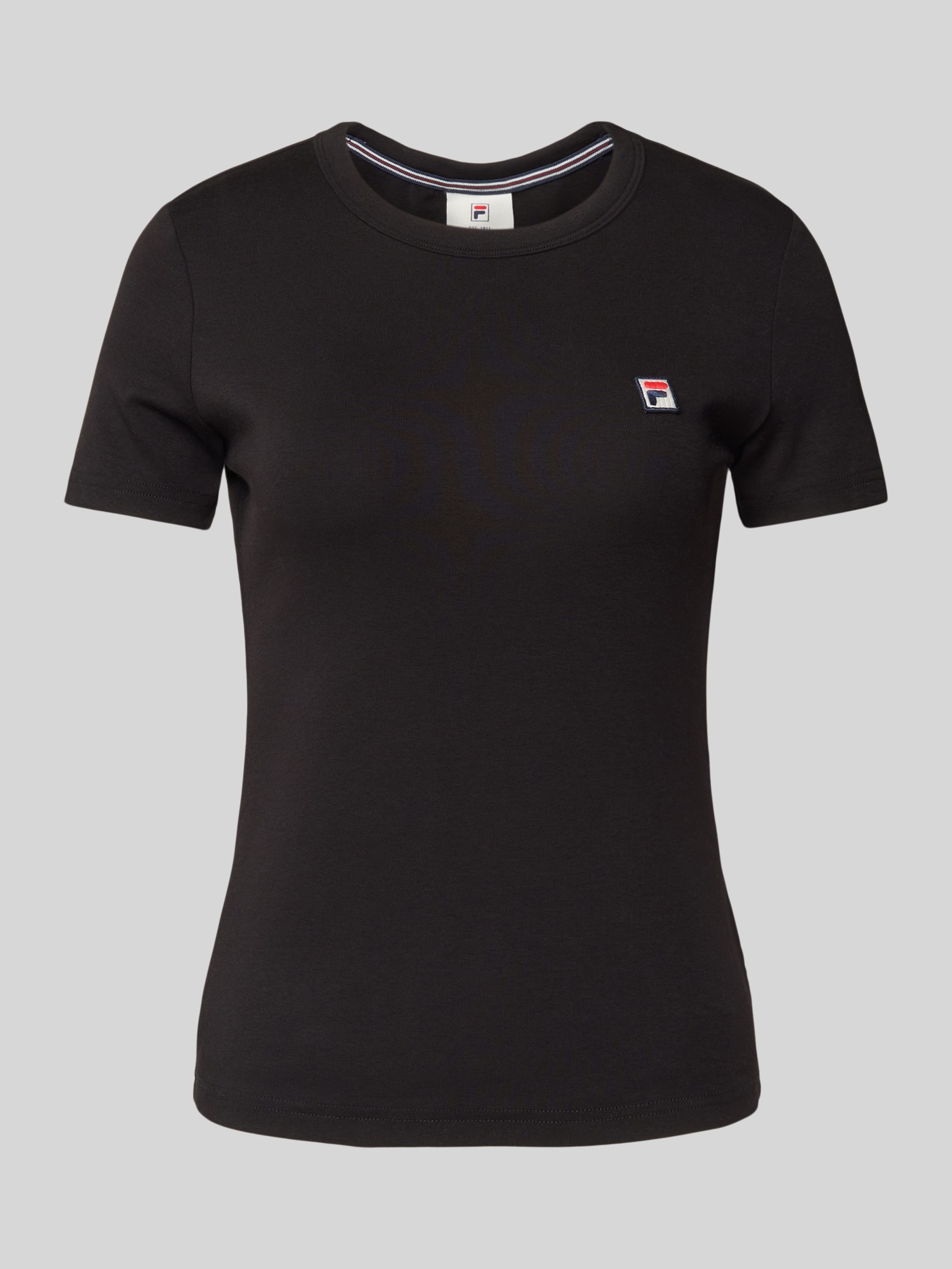 T-shirt met labelstitching, model 'BIELLA' in zwart