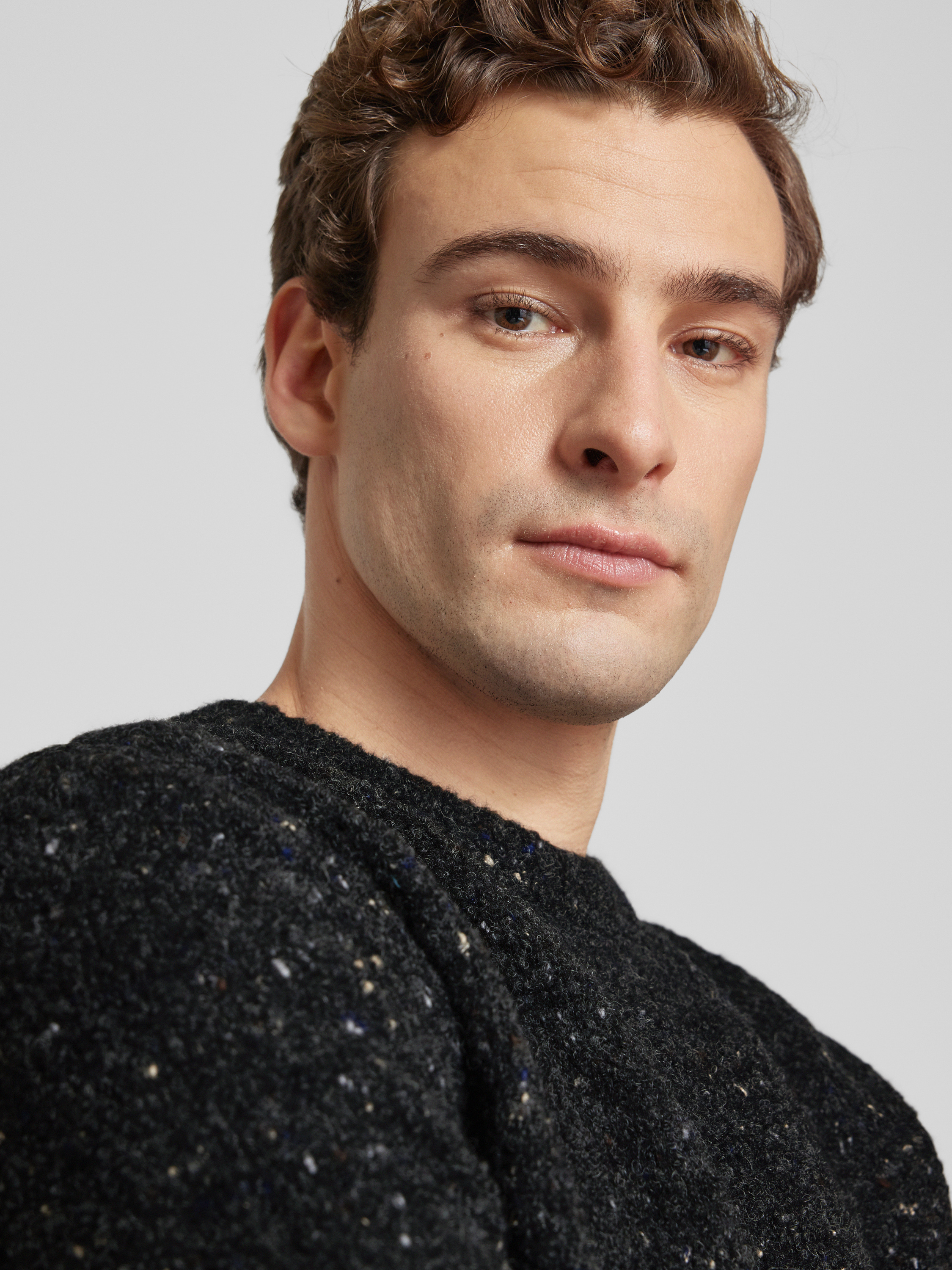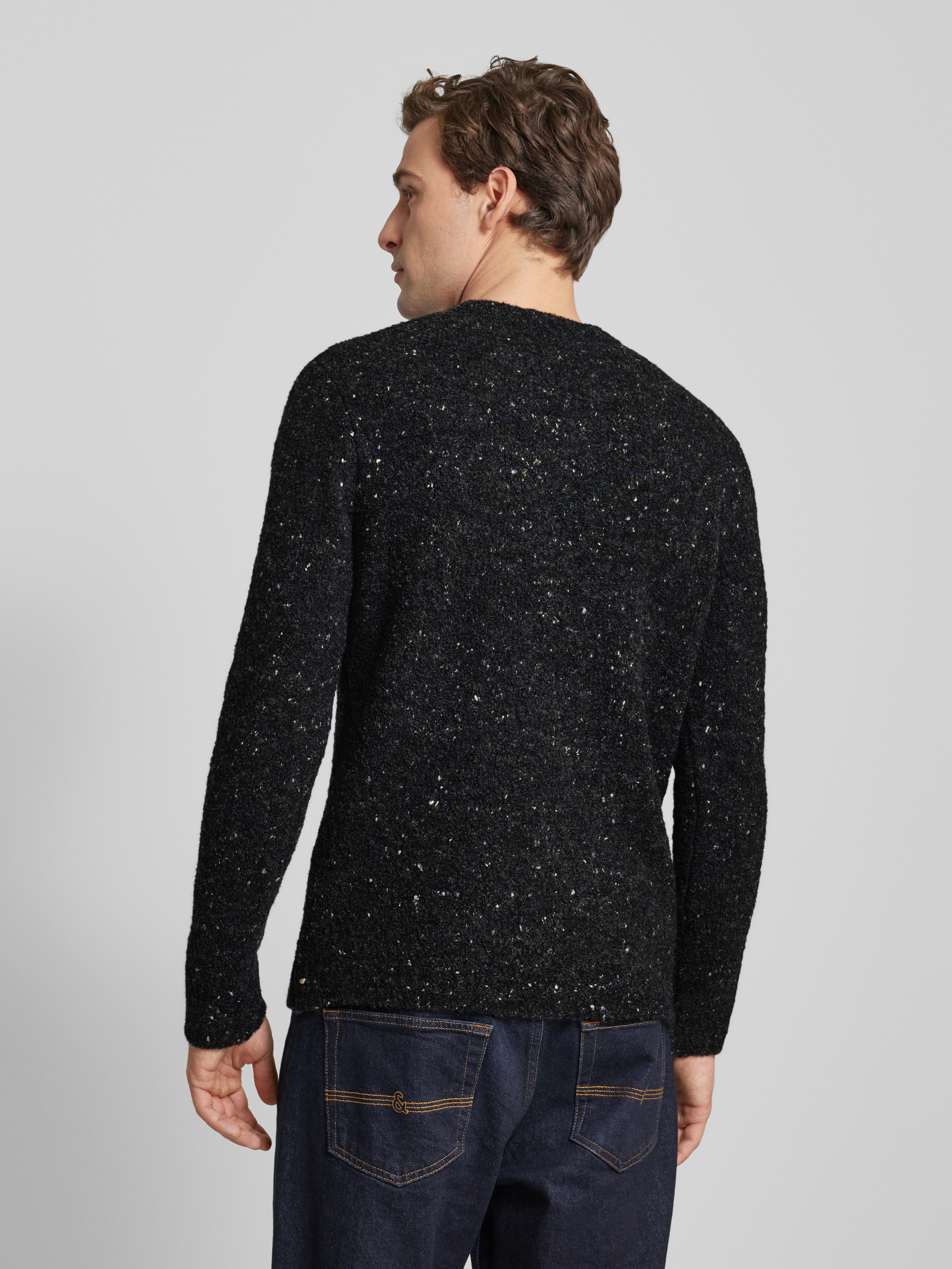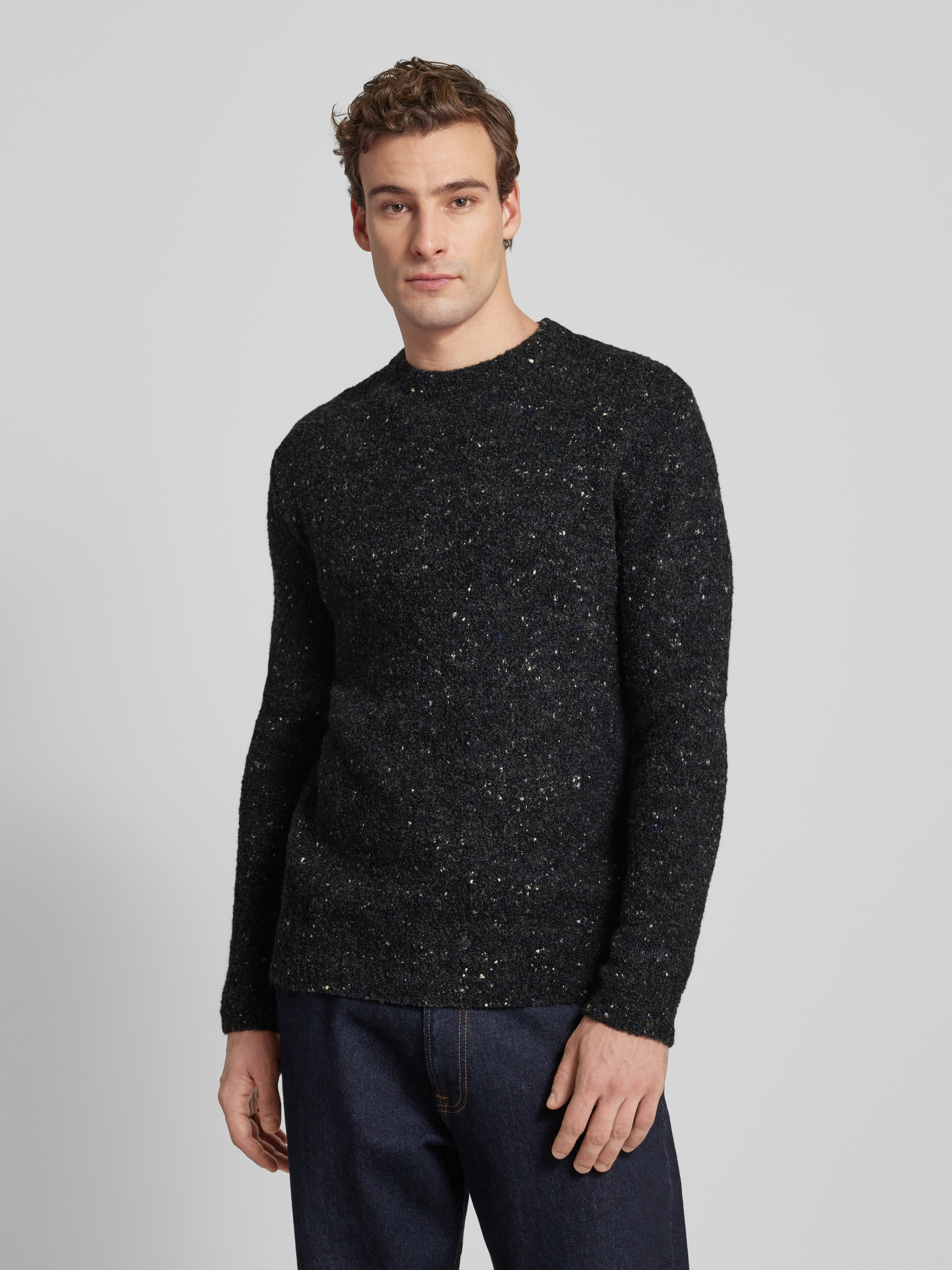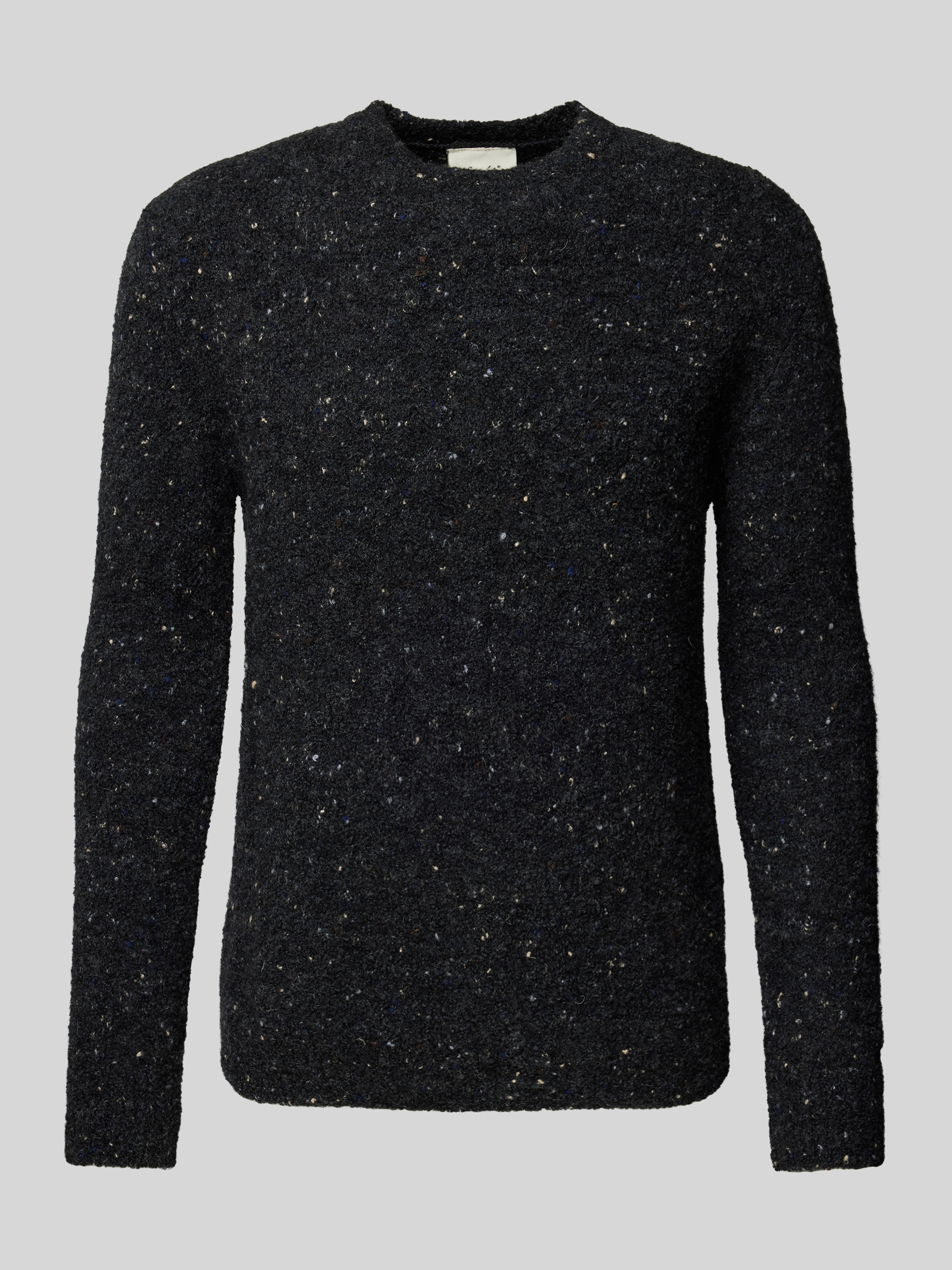 ForétGebreide pullover met ronde hals, model 'MOSS' in marineblauw gemêleerd