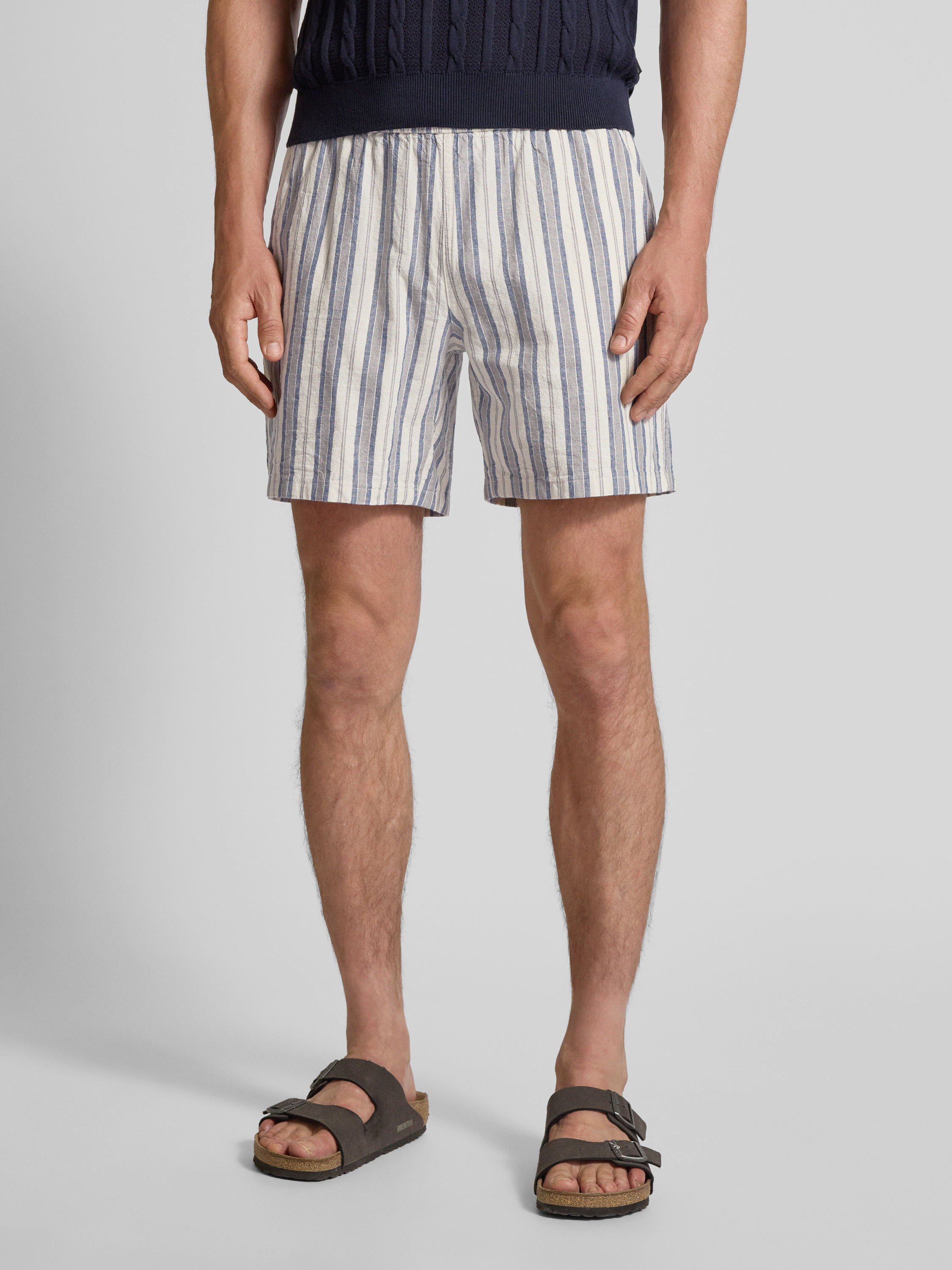 Regular fit bermuda met linnen, model 'Serene' in lichtblauw