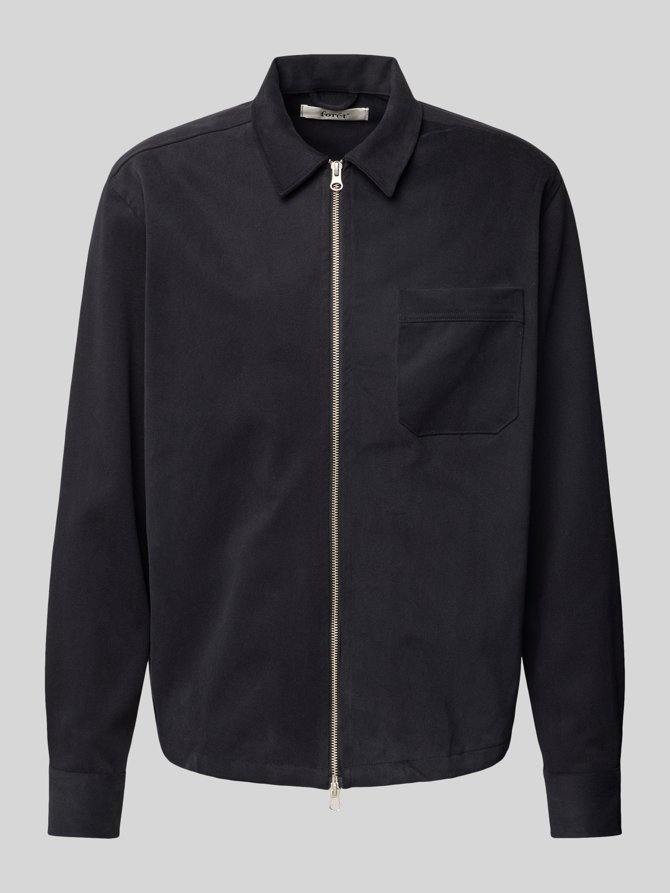 Regular fit overhemdjack met kentkraag en tweewegsritssluiting in zwart